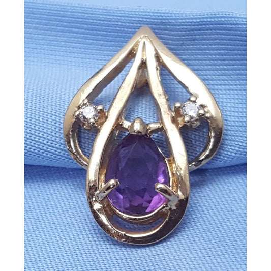 14K Solid Yellow Gold Amethyst & Diamond Drop Charm Pendant
