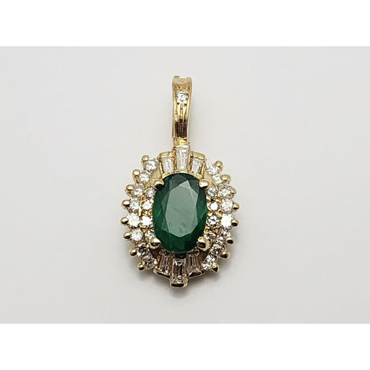 14K Yellow Gold Emerald & Diamond Drop Charm Pendant