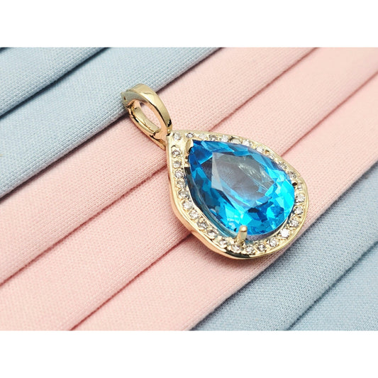 14K Yellow Gold Blue Teardrop Topaz & Diamond Drop Charm Pendant