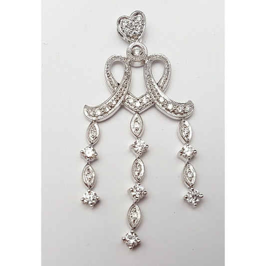 18K Solid White Gold Drop Dangle Round Cut Diamond Charm Pendant