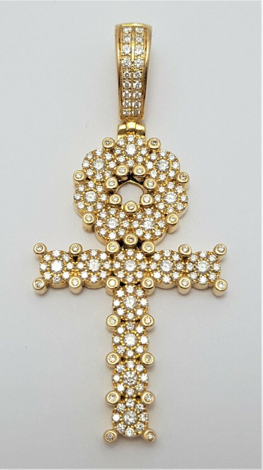 14K Solid Yellow Gold Ankh Cubic Zirconia Charm Pendant