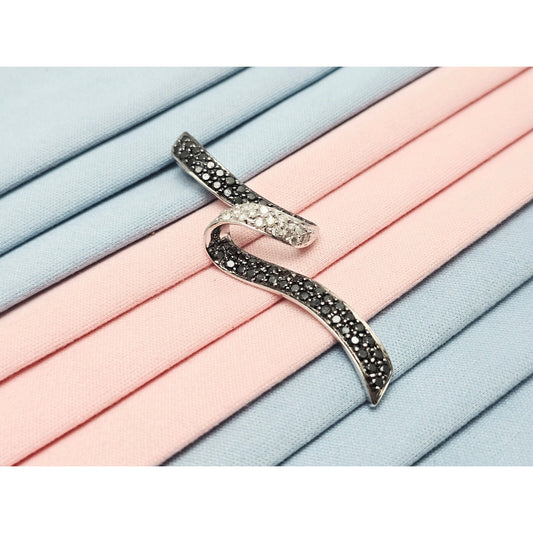 14K White Gold Twirl Swirl Black & White Diamond Charm Pendant