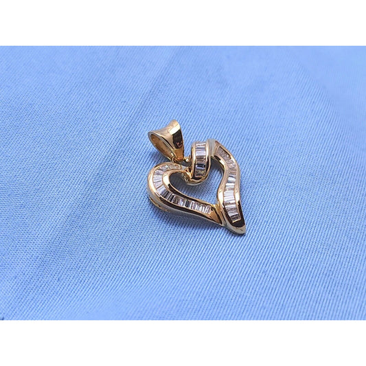 14K Yellow Gold Baguette Diamond Open Heart Charm Pendant