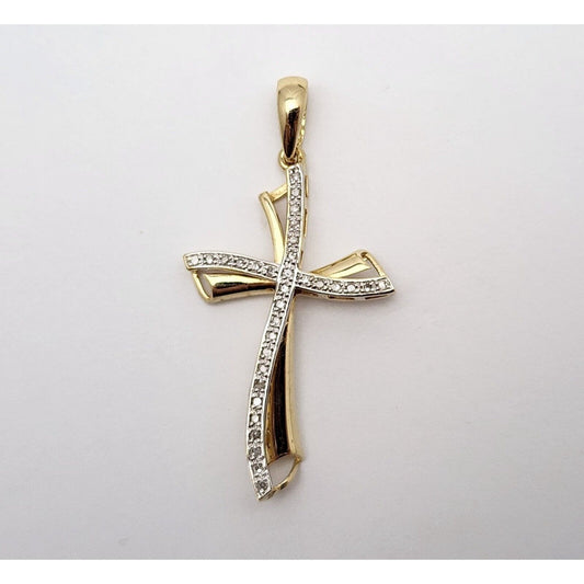 14K Yellow Gold Diamond Cut Cross Pendant Charm