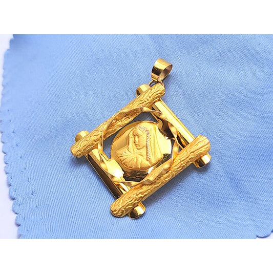 14K Yellow Gold Religious Saint Mary Charm Pendant