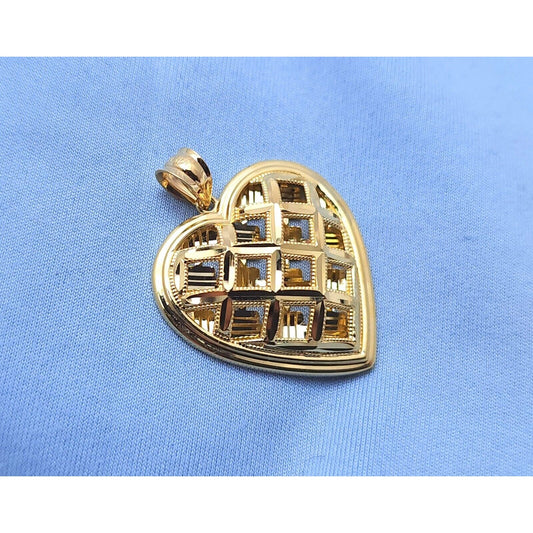 14K Yellow Gold Textured Diamond Cut Heart Charm Pendant