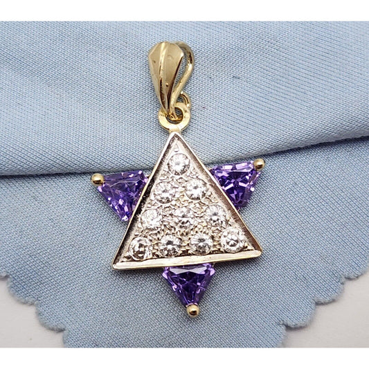 14K Two Tone Gold Star of David CZ & Amethyst Charm Pendant