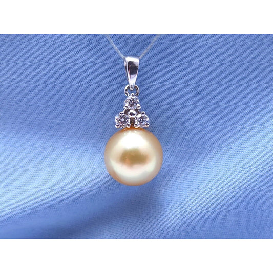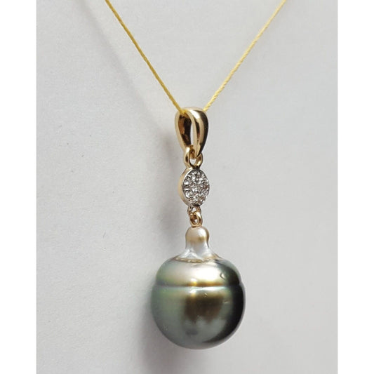 14K Solid Yellow Gold Drop Dangle Tahitian Pearl & Diamond Charm Pendant