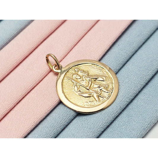 18K Yellow Gold Round Saint Christopher Charm Pendant