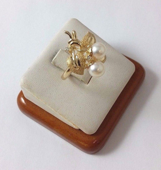 14K Solid Yellow Gold Designer Diamond & Pearl Ring