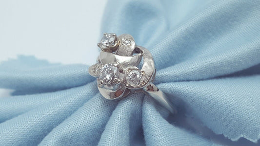 10K White Gold Ladies Designer Ring w/ Cluster of Diamonds