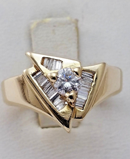 14K Solid Yellow Gold Designer Ladies Ring With Diamonds