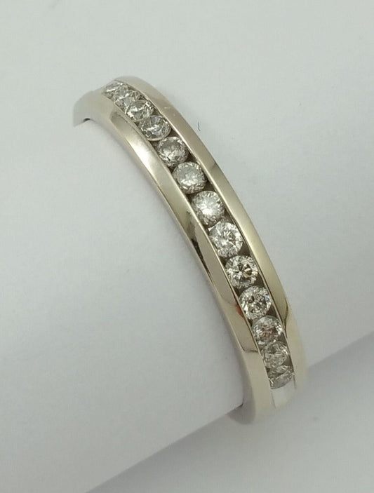 14K Solid White Gold Ladies Diamond Eternity Wedding Band Ring