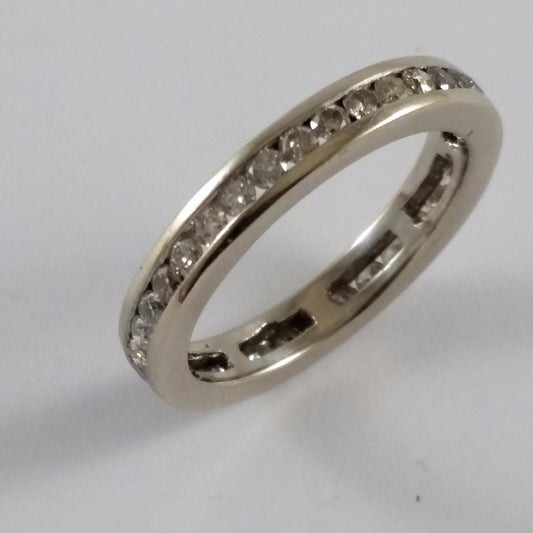 14K Solid White Gold Ladies Diamond Wedding Band Ring