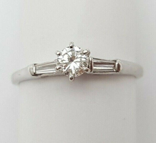 Vintage 18K Solid White Gold Ladies Designer Diamond Wedding Engagement Ring