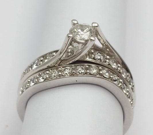 14K White Gold 1 CTW Round Cut Diamonds Bridal Engagement Ring Set