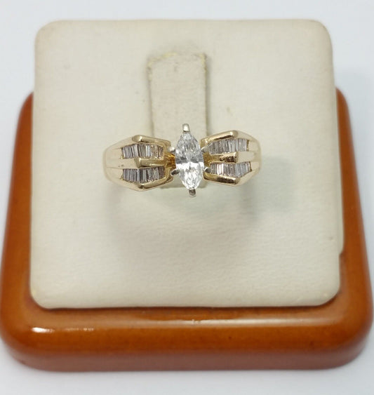 14K Solid Yellow Gold Marquise & Baguette Diamond Ring