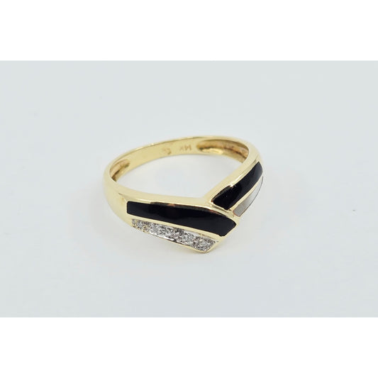 14K Yellow Gold Diamond, Black Onyx & Mother of Pearl Ring