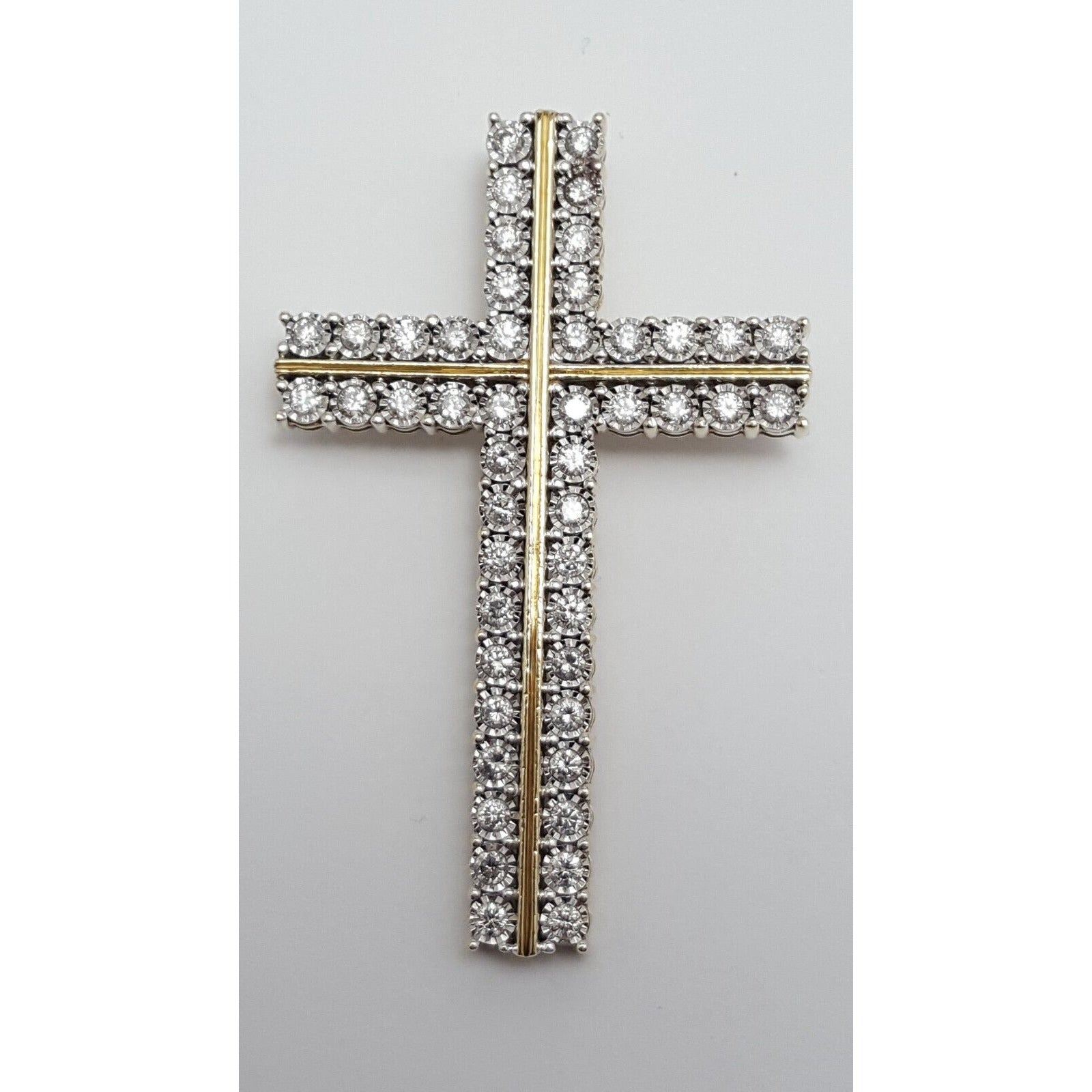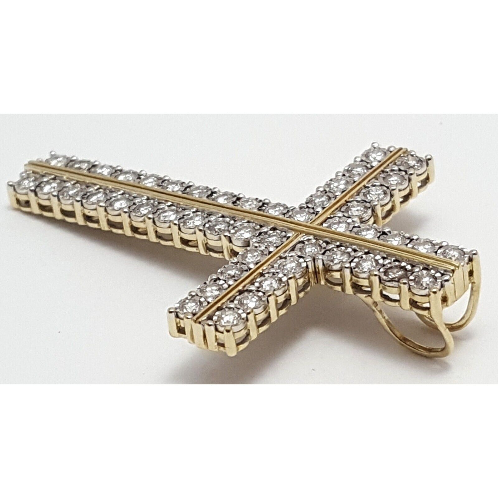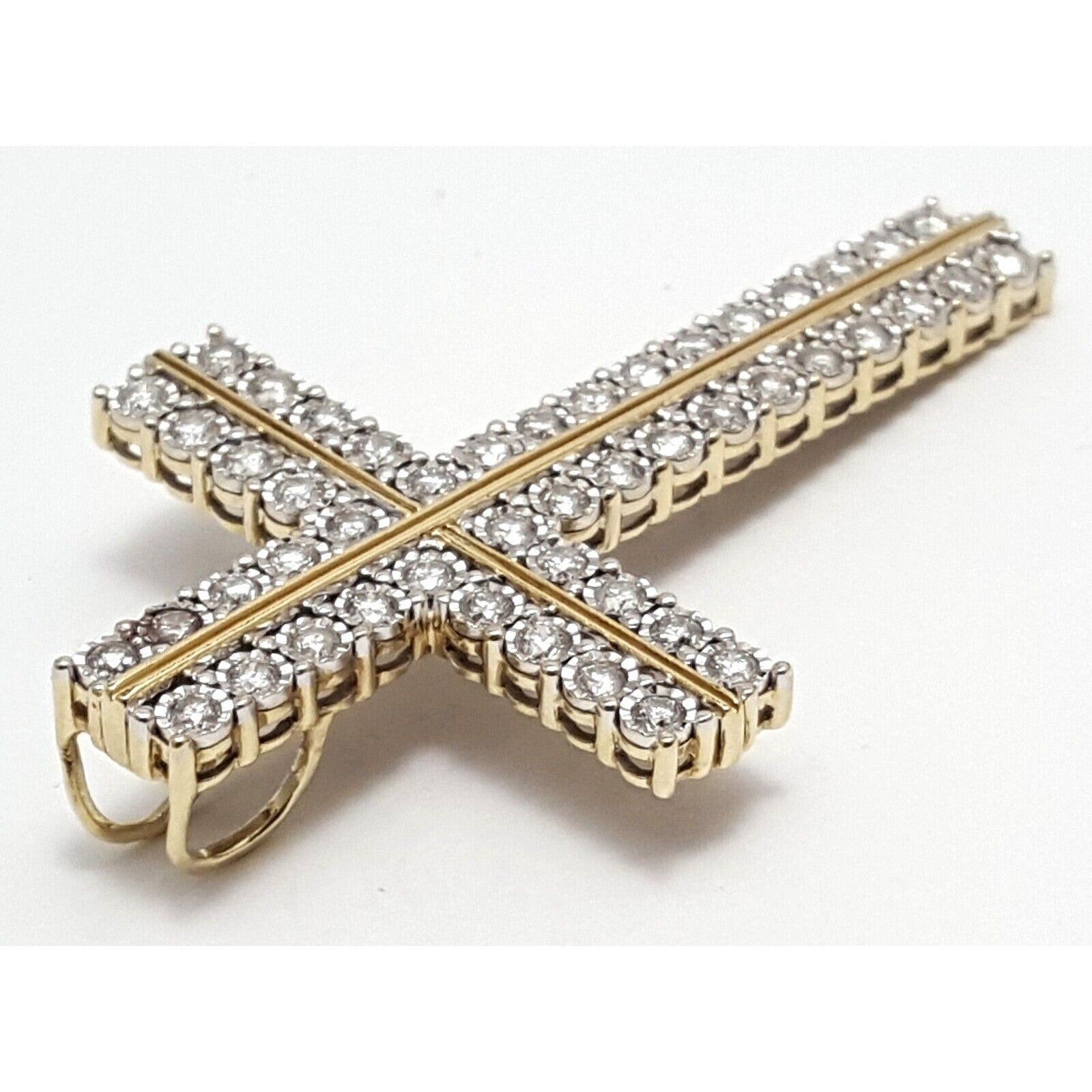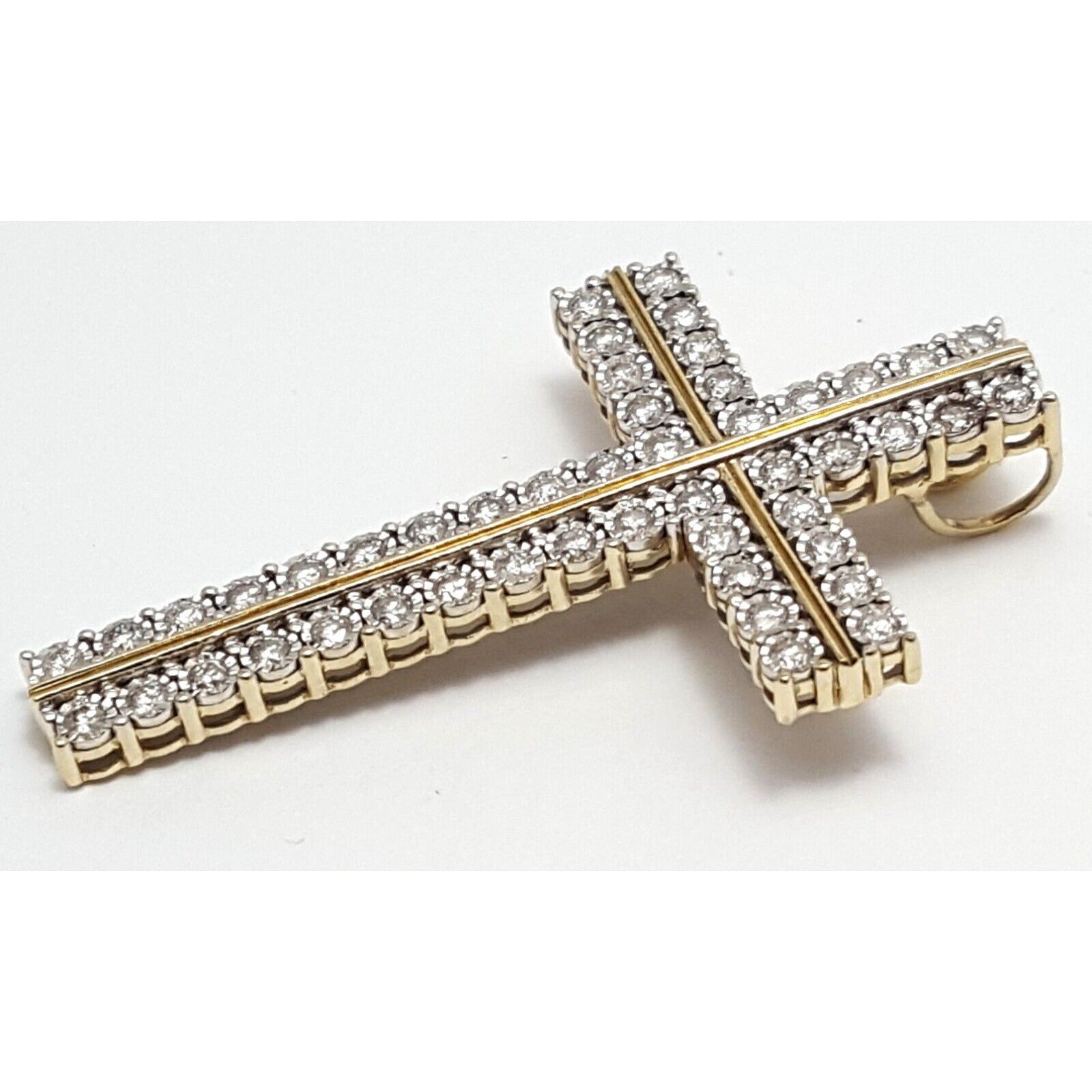 10K Solid Two Tone Gold Designer Diamond Cross Pendant Charm 1.44 ct