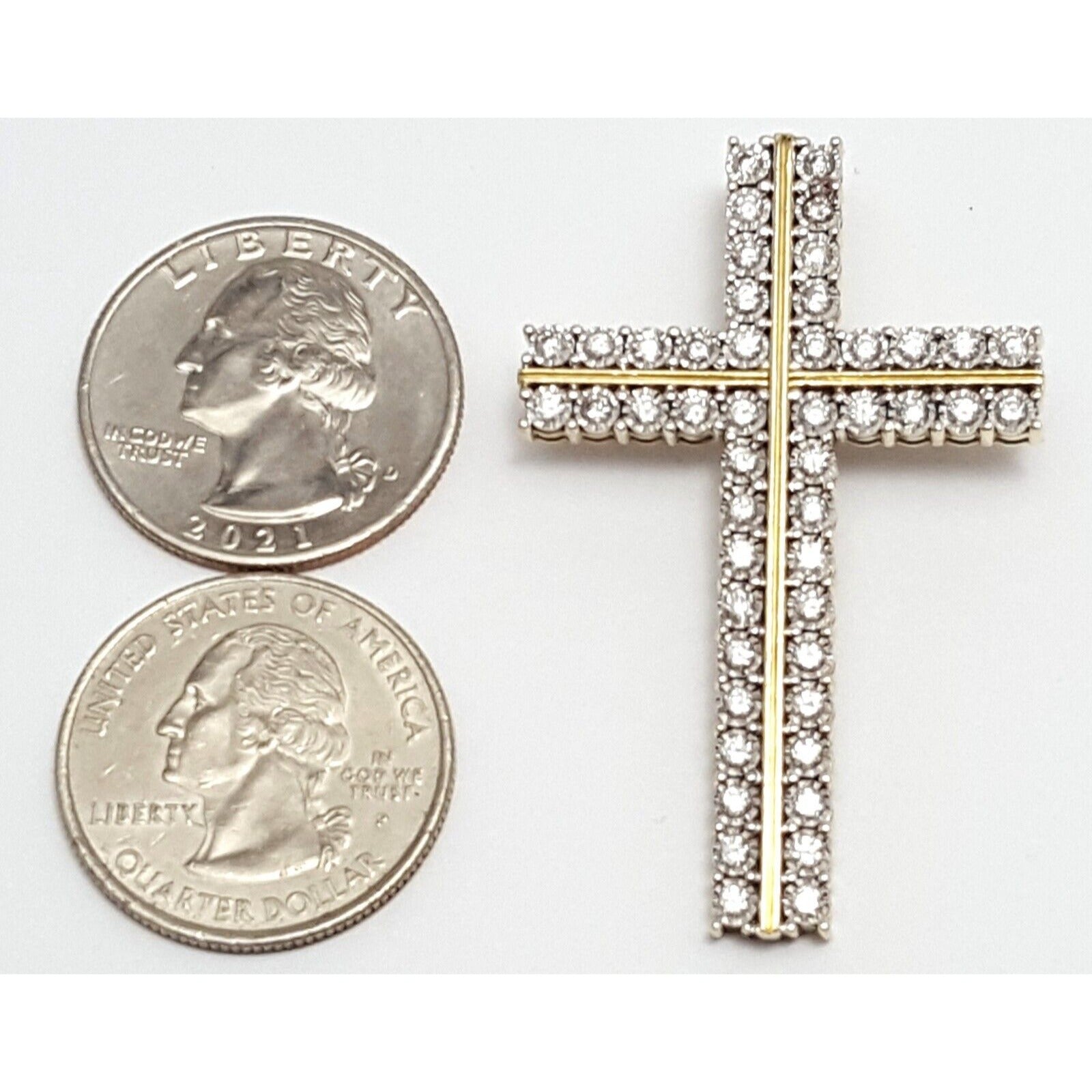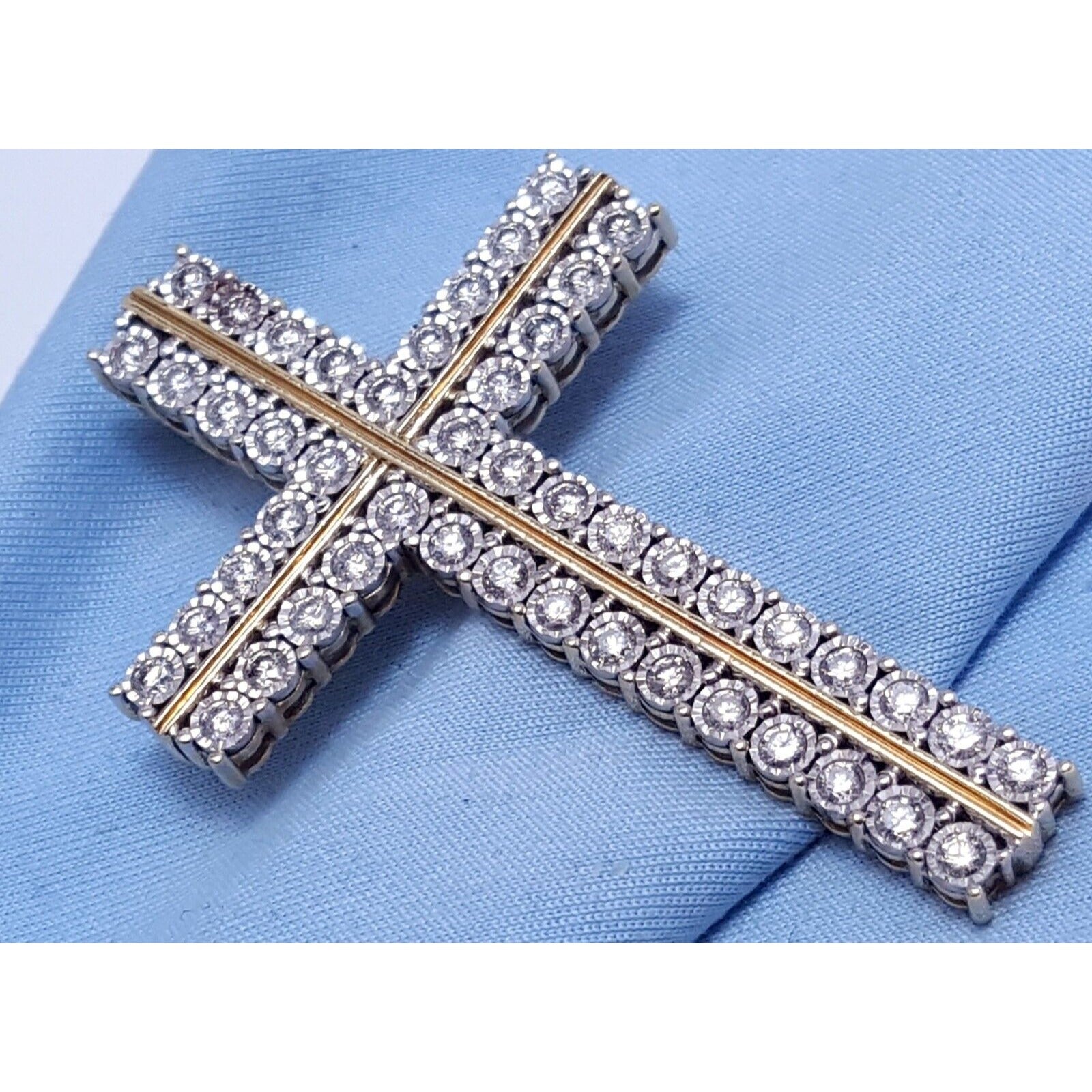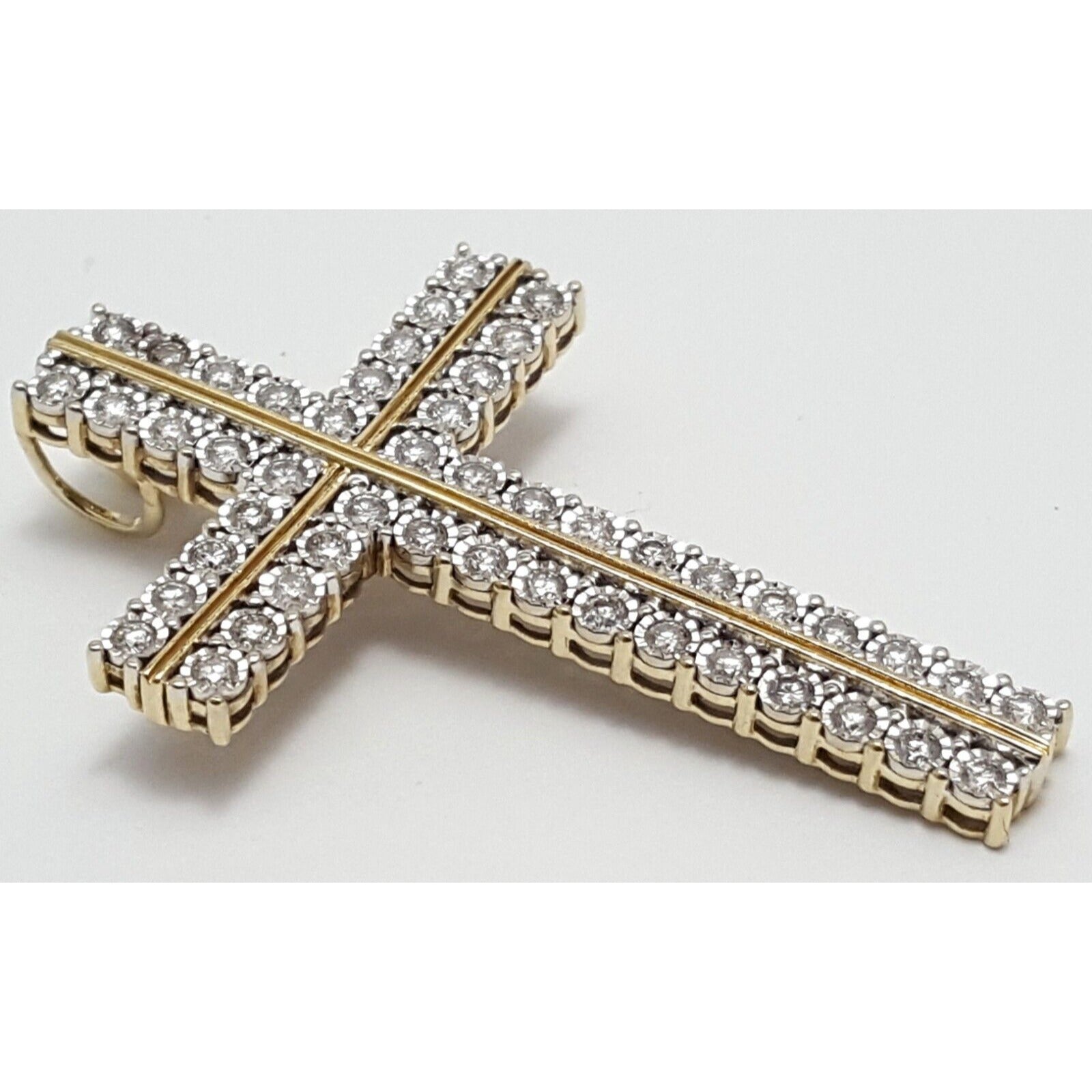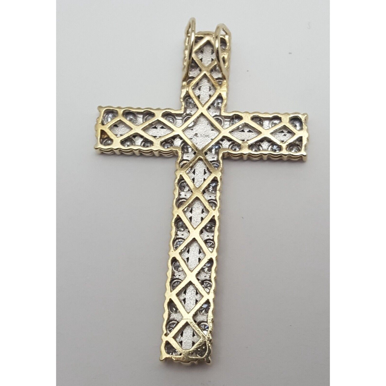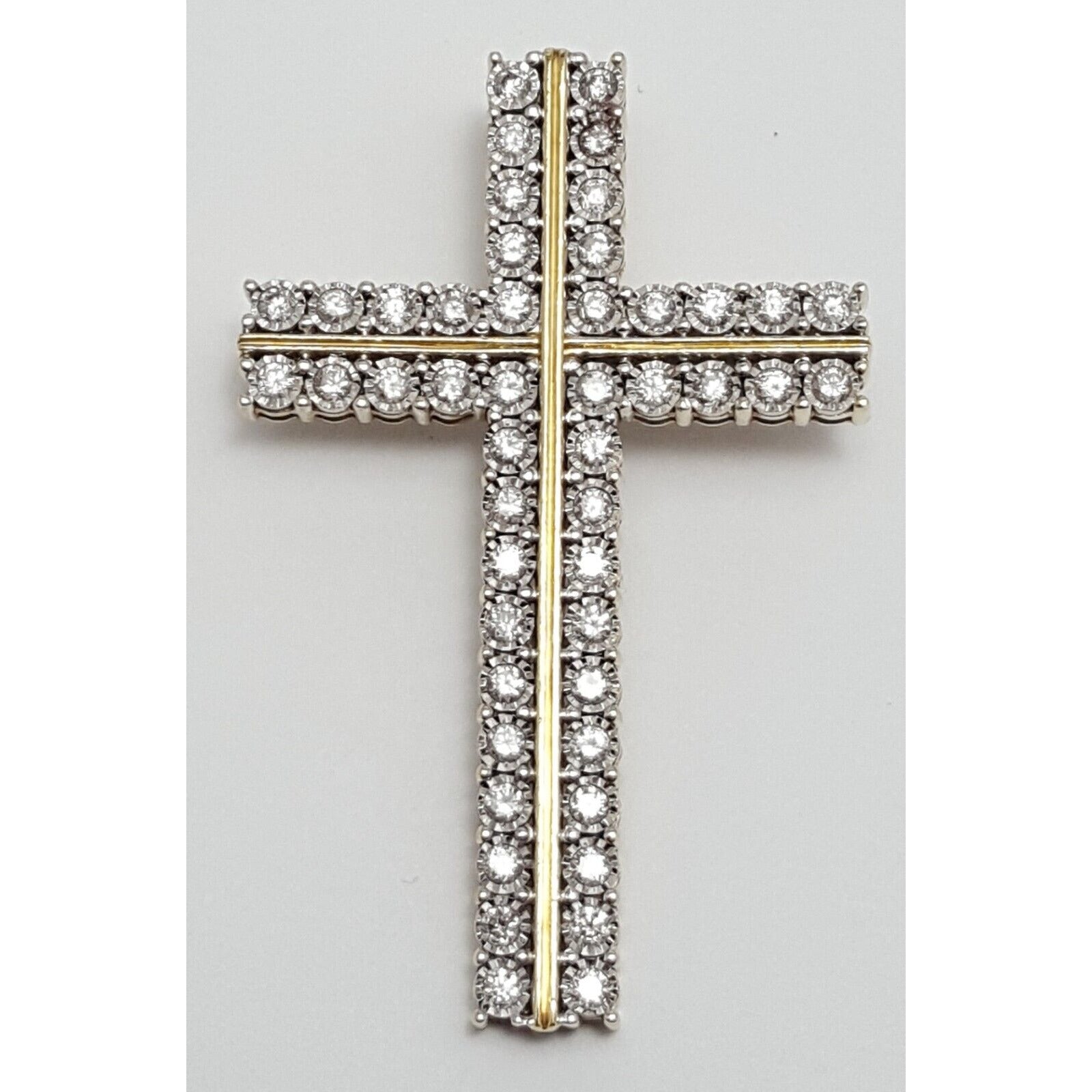 10K Solid Two Tone Gold Designer Diamond Cross Pendant Charm 1.44 ct