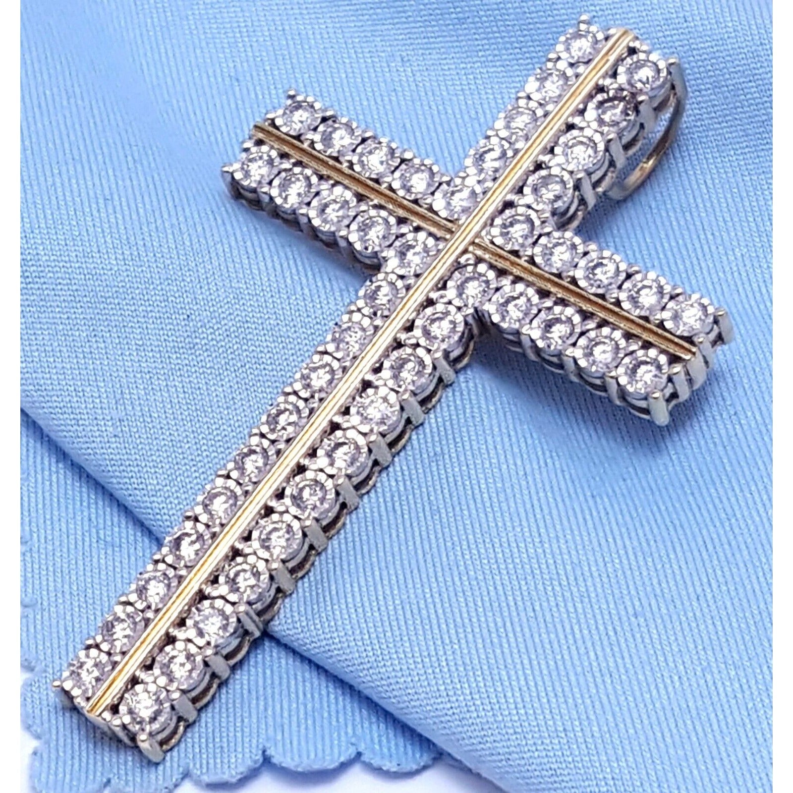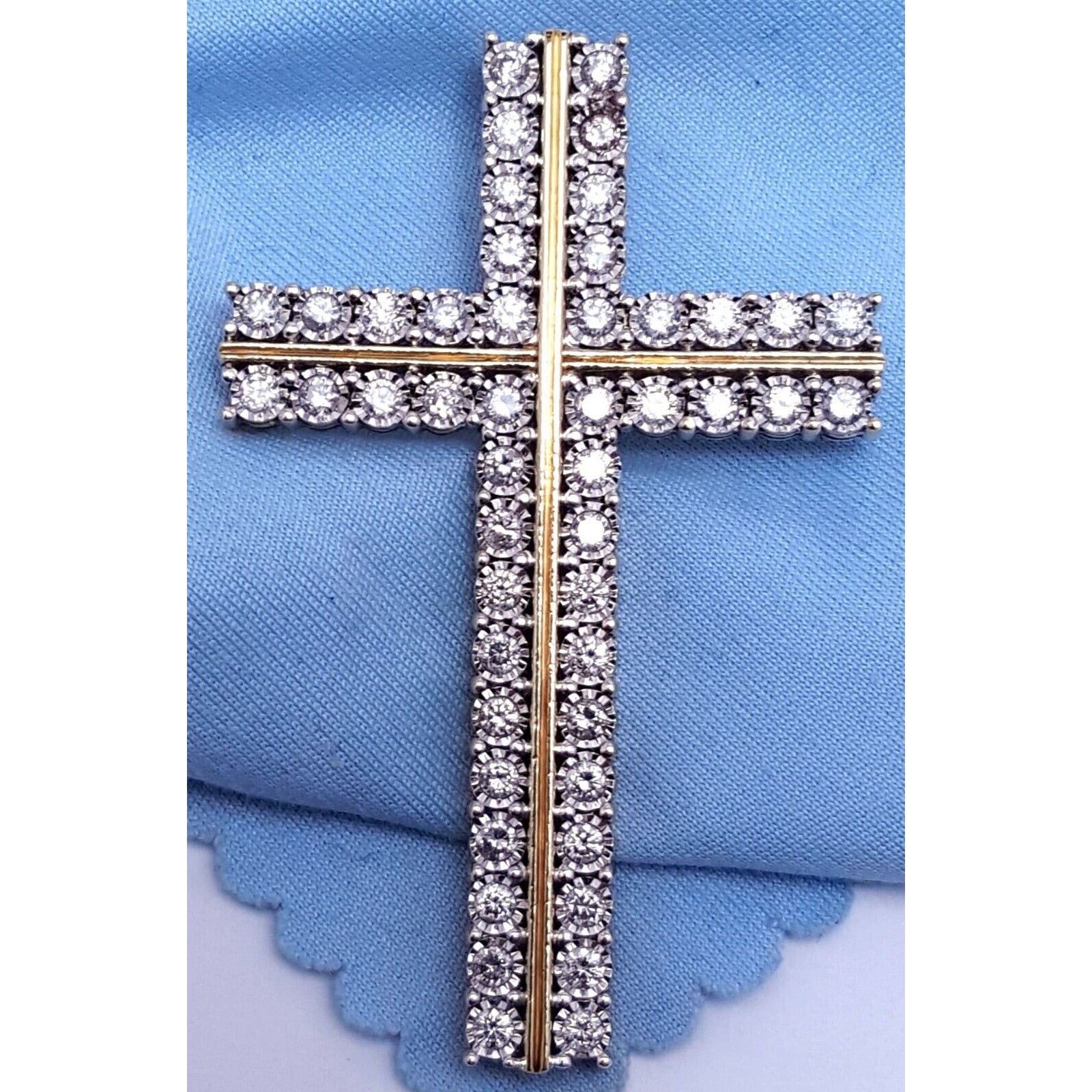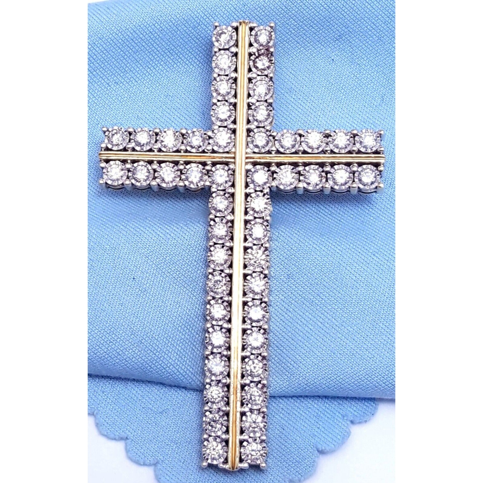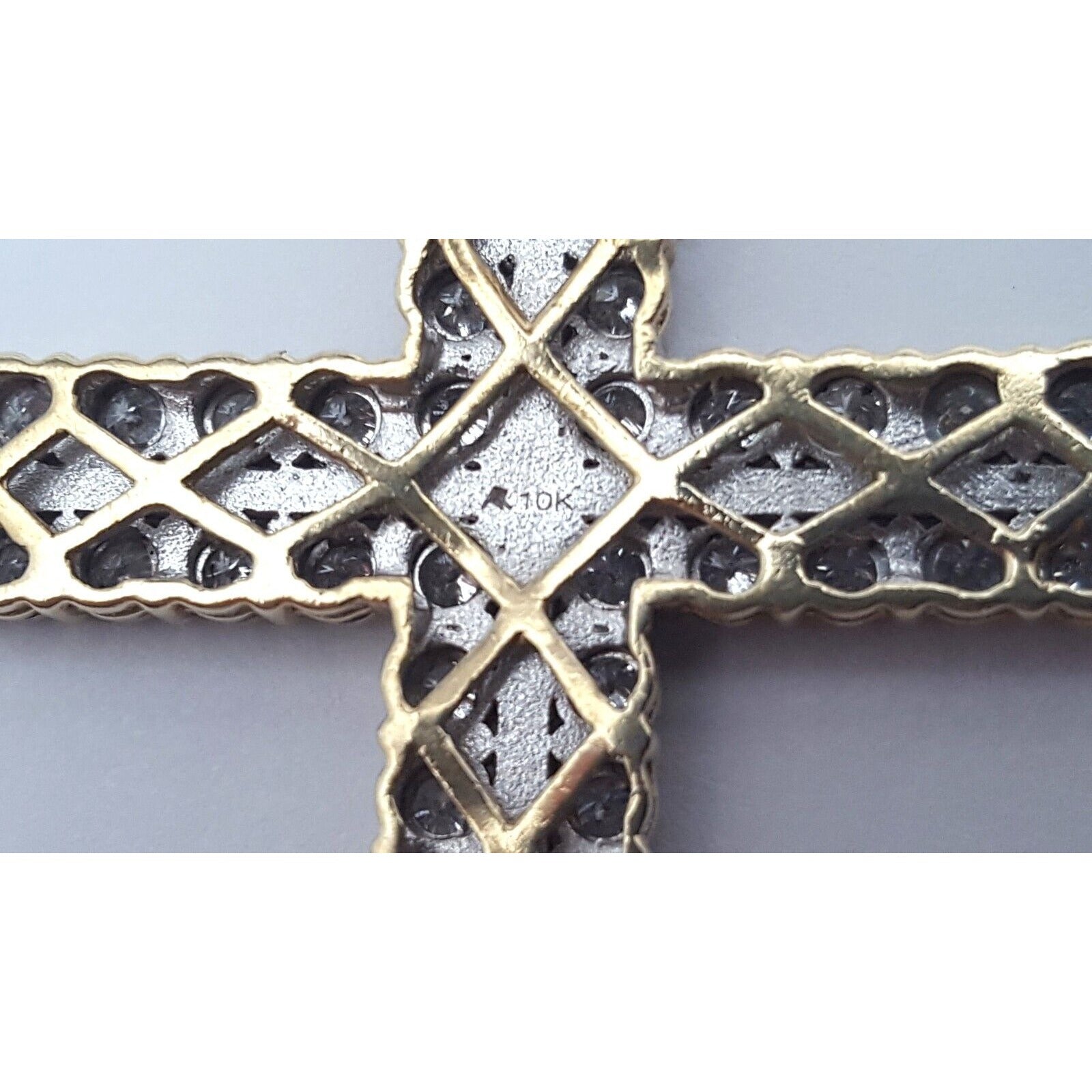 10K Solid Two Tone Gold Designer Diamond Cross Pendant Charm 1.44 ct