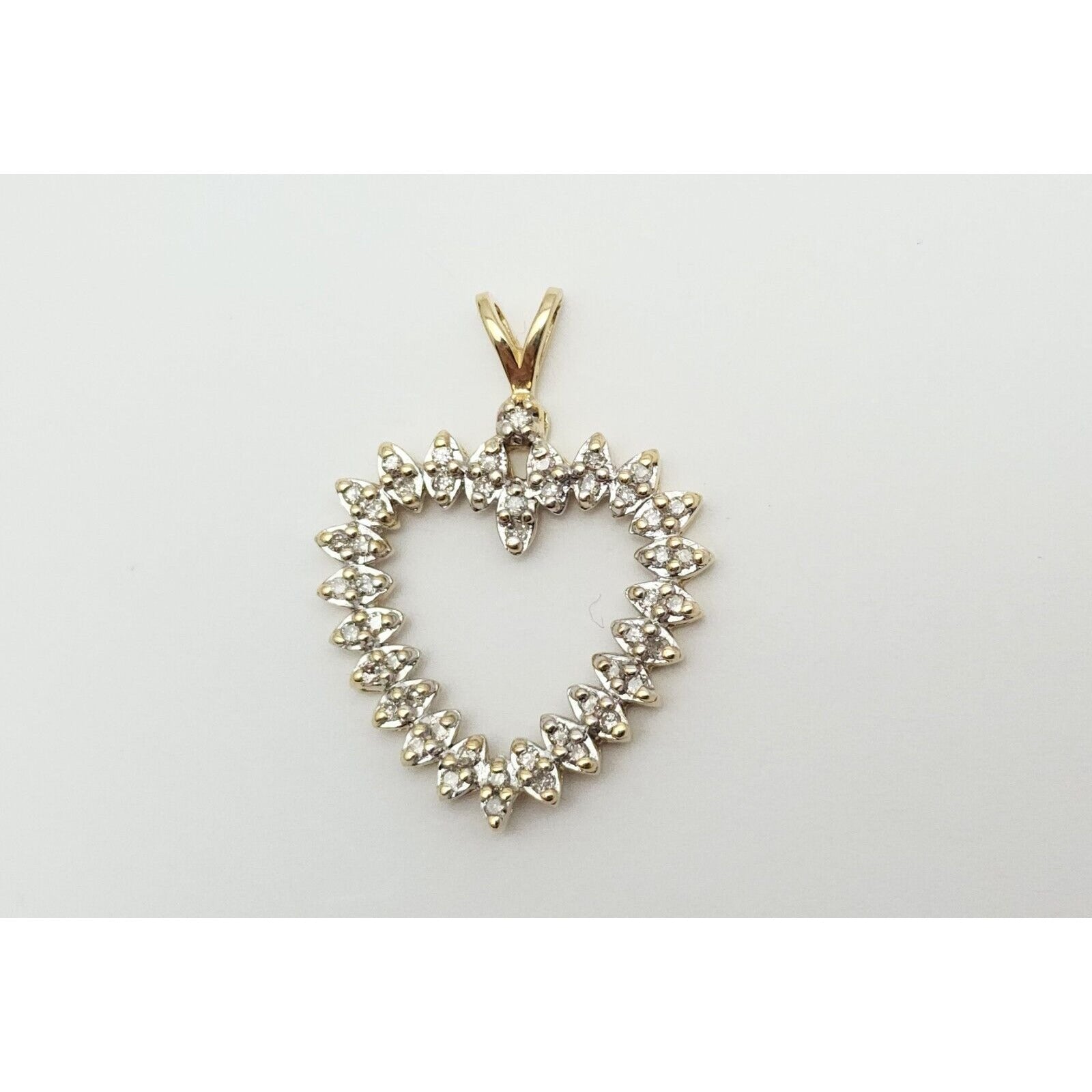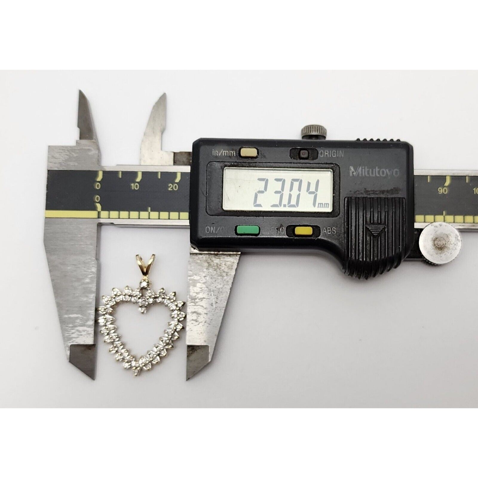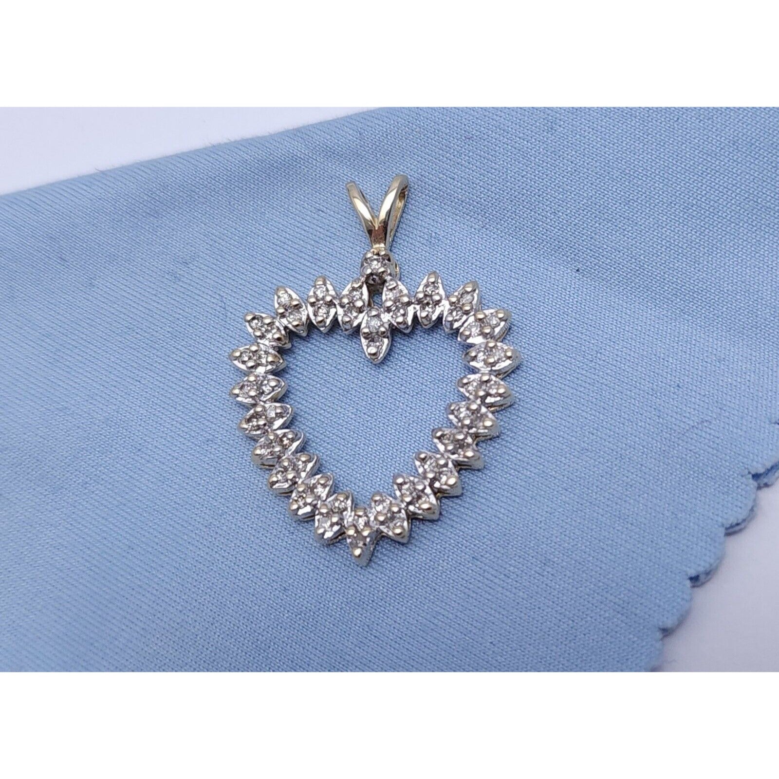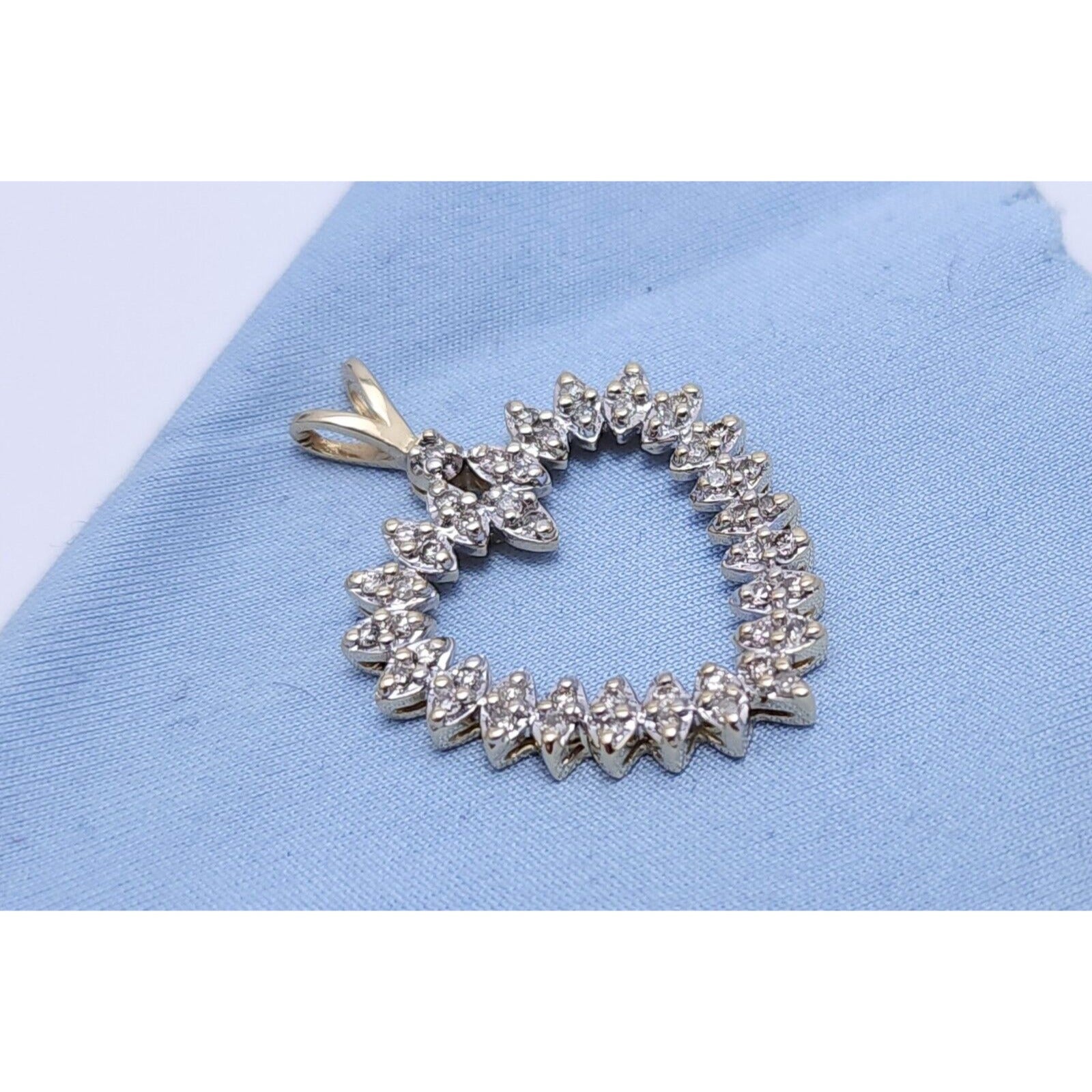 10K Solid Two Tone Gold Diamond Open Heart Charm Pendant