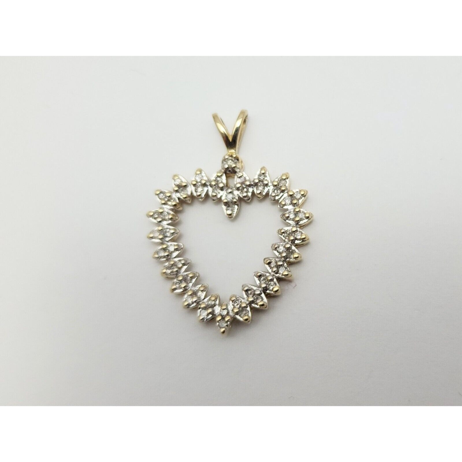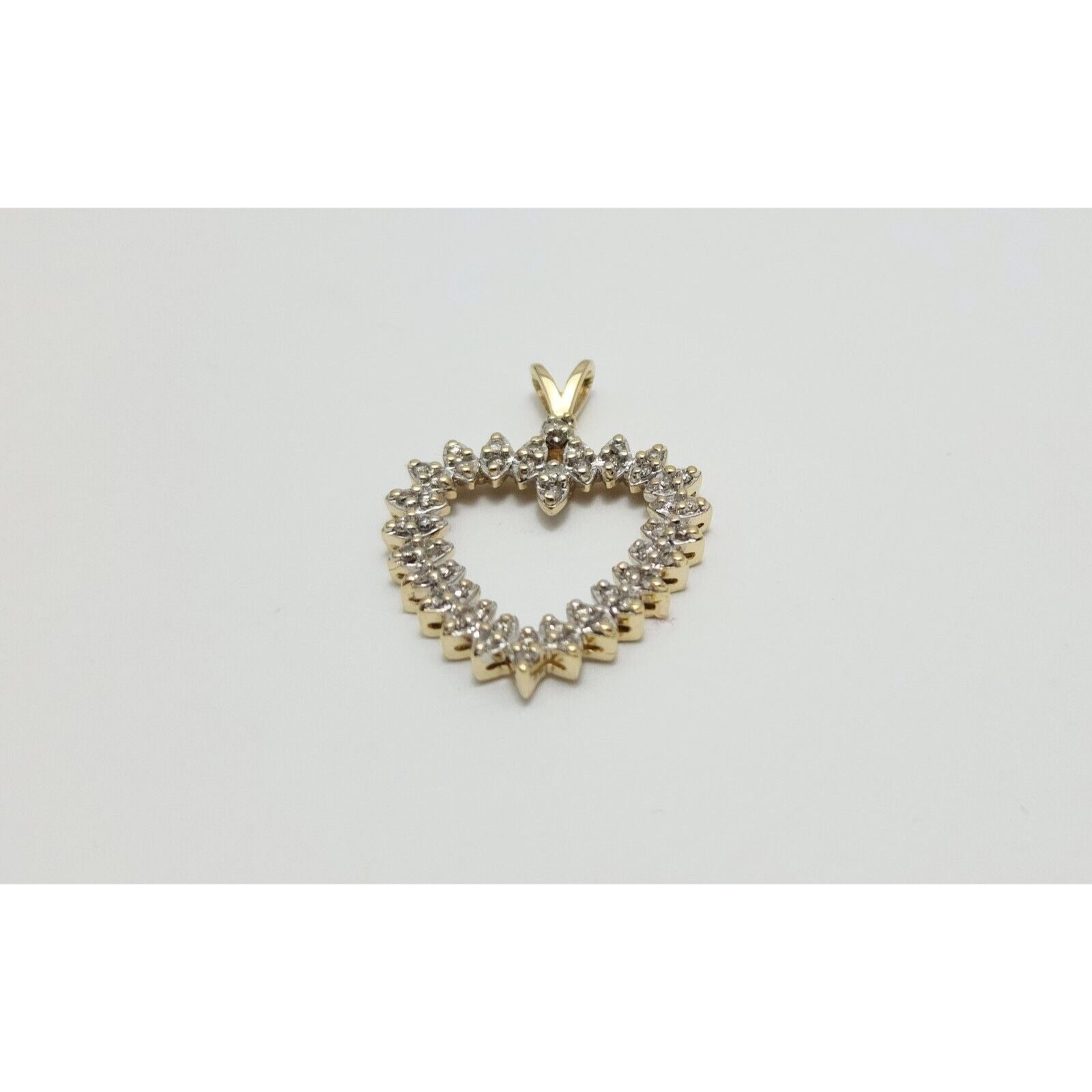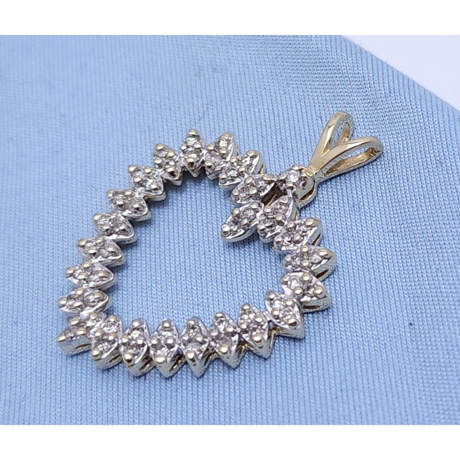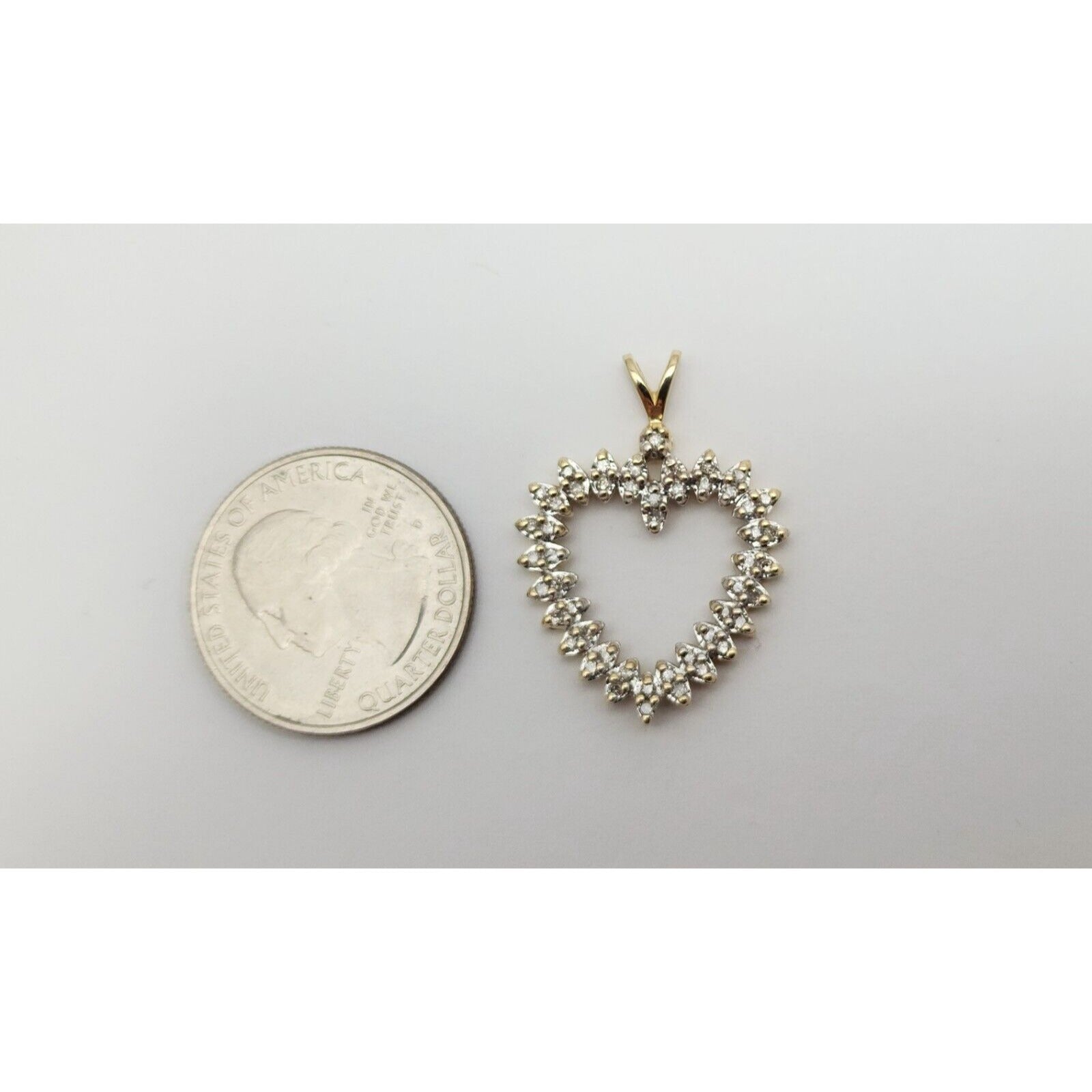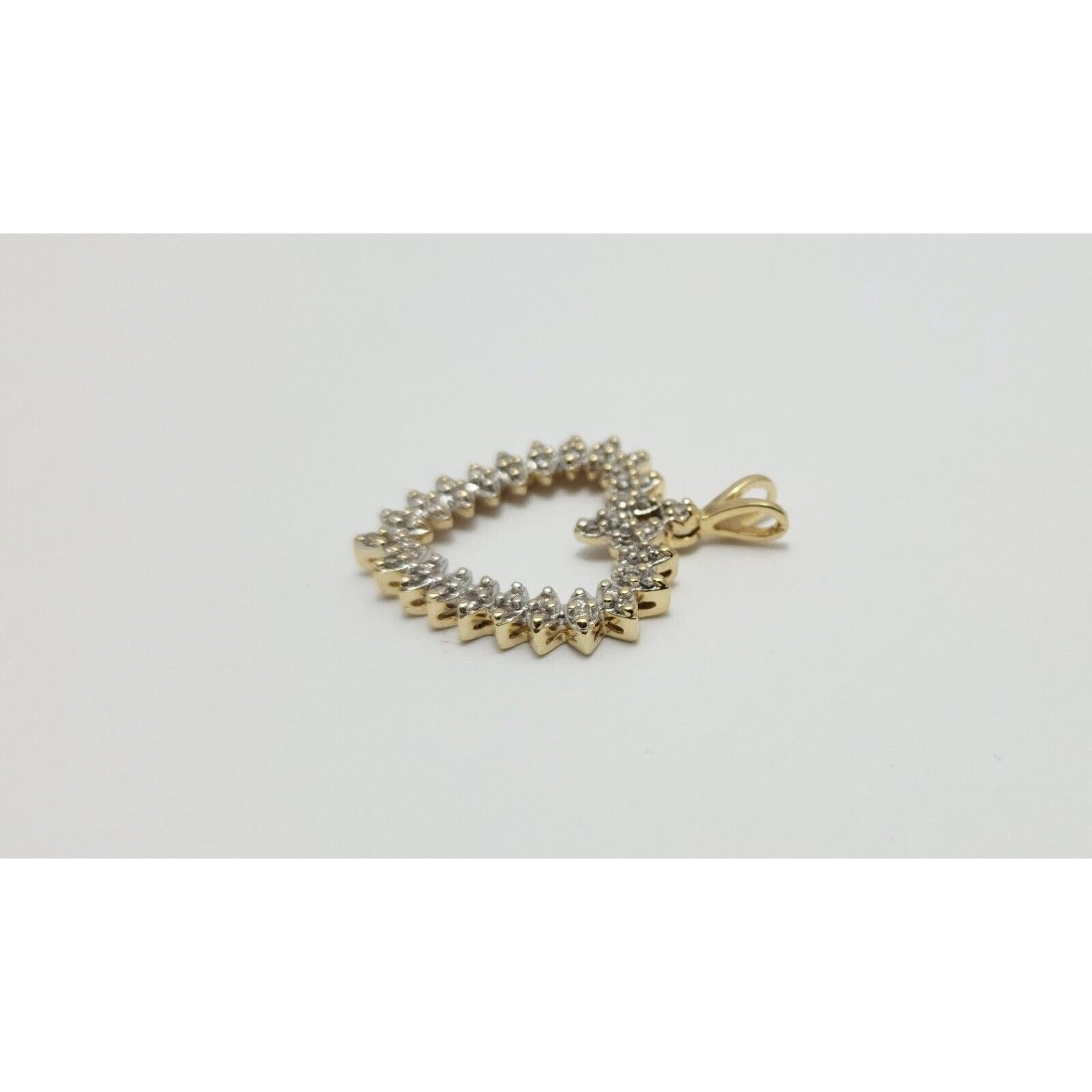 10K Solid Two Tone Gold Diamond Open Heart Charm Pendant