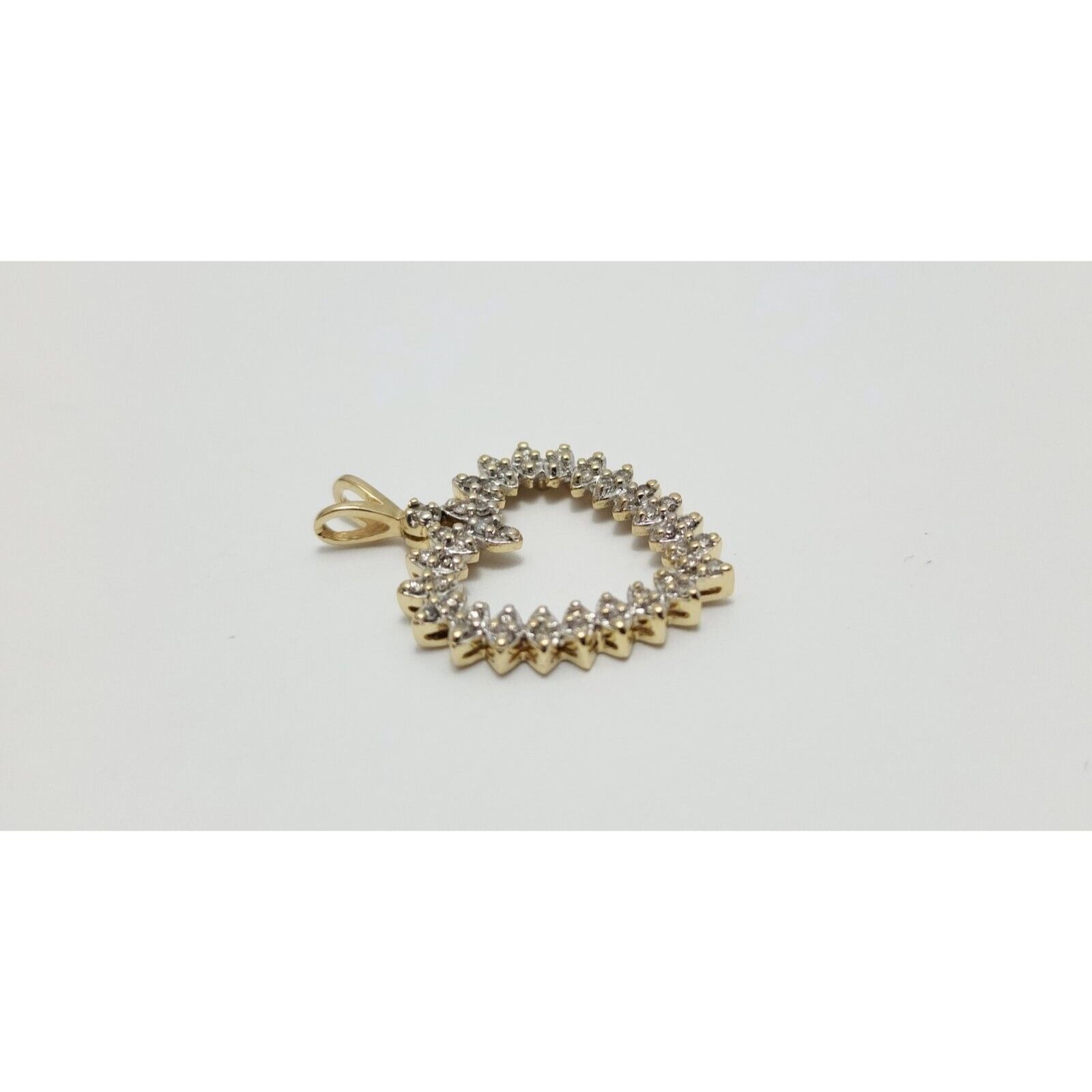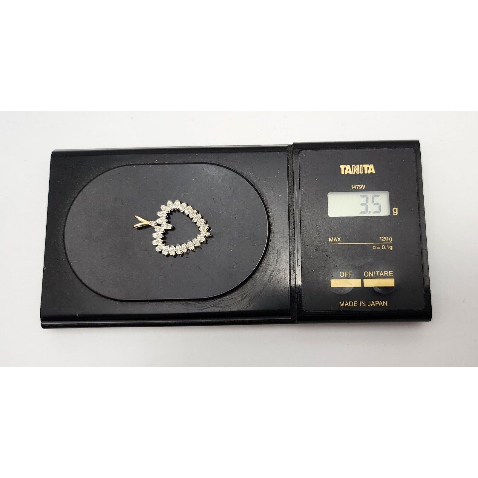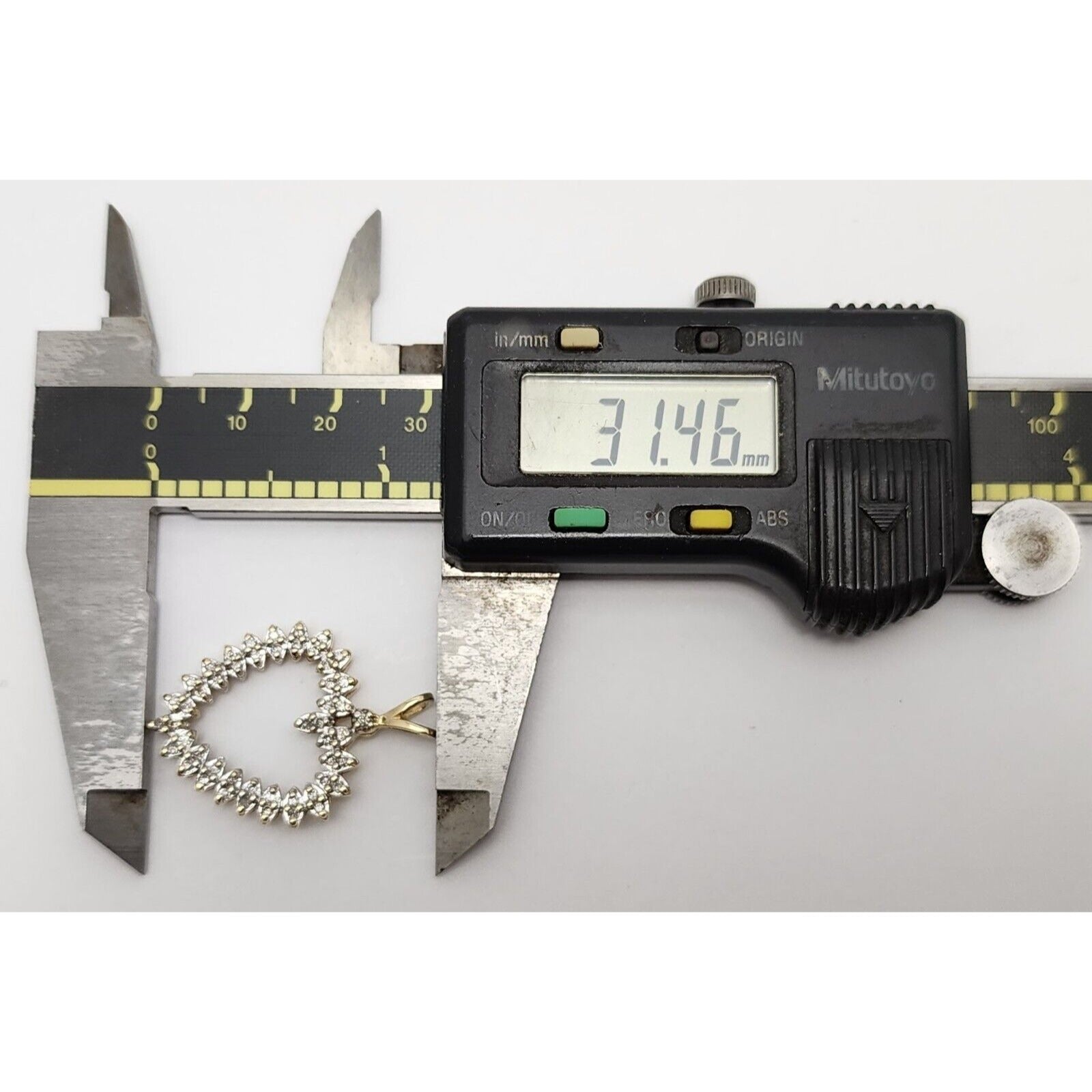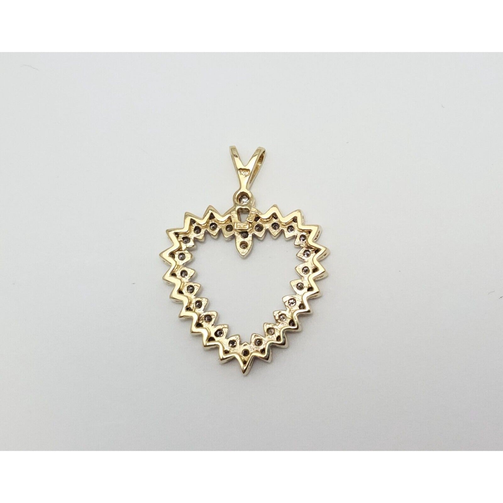 10K Solid Two Tone Gold Diamond Open Heart Charm Pendant