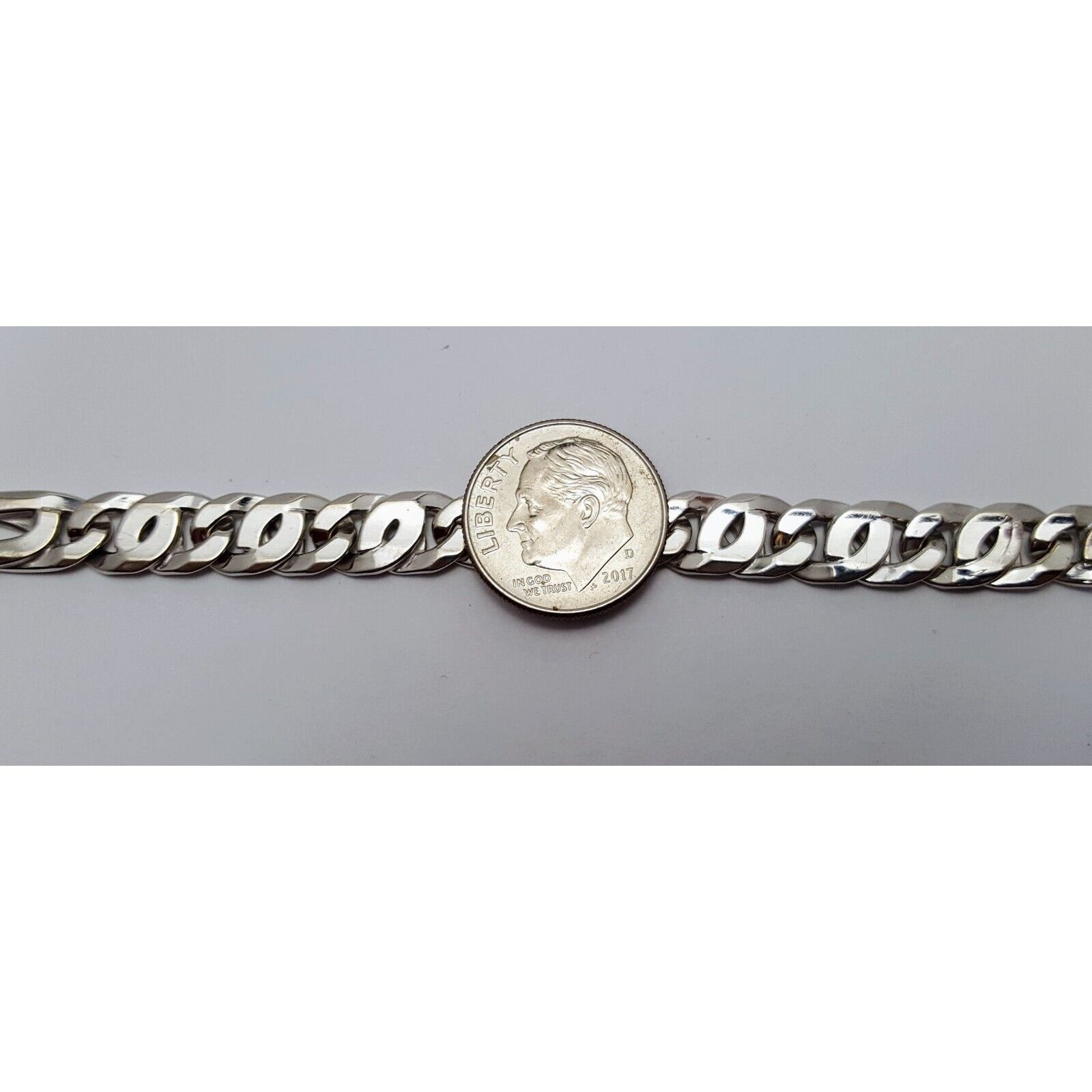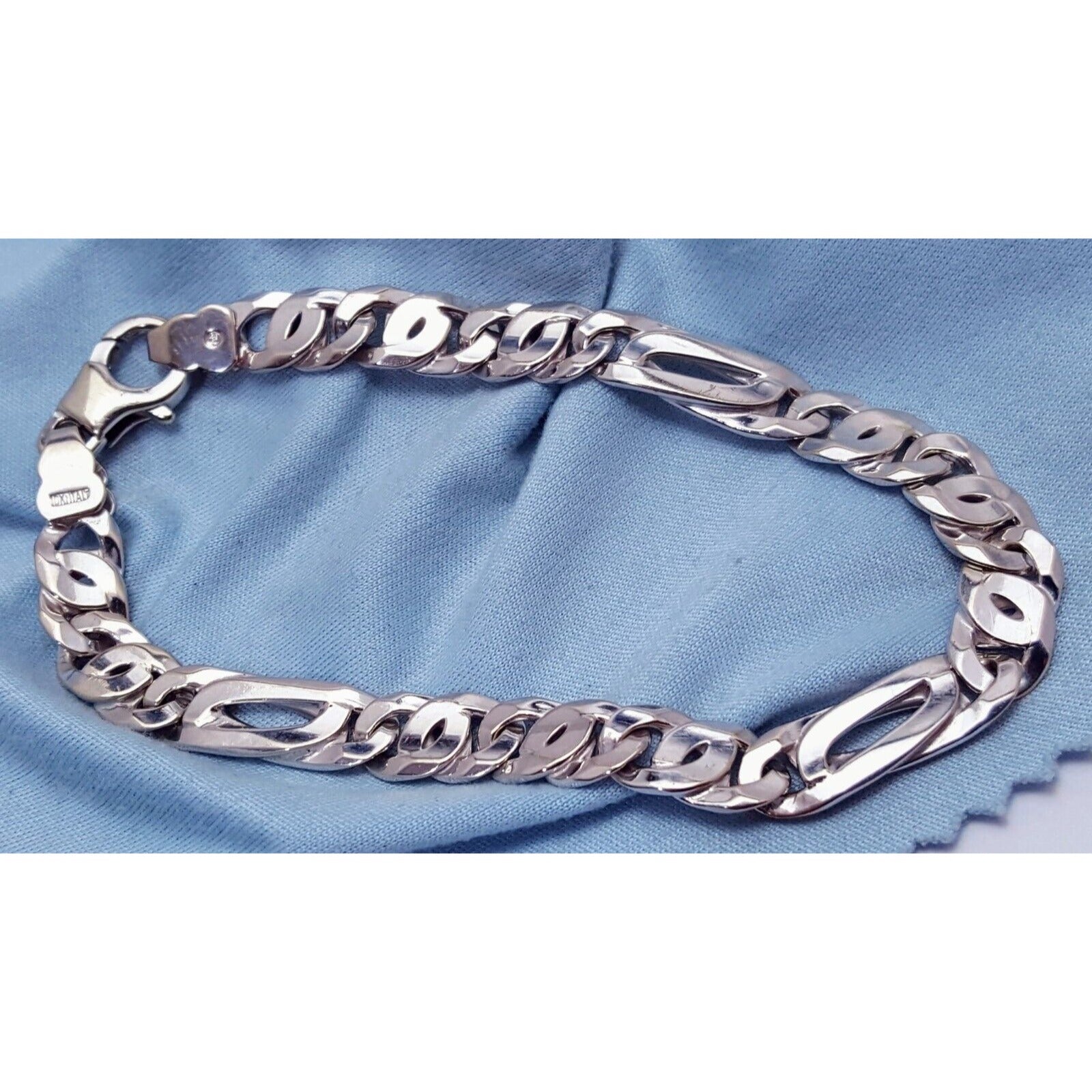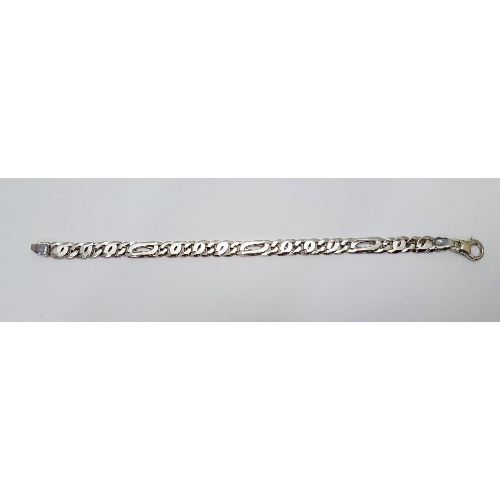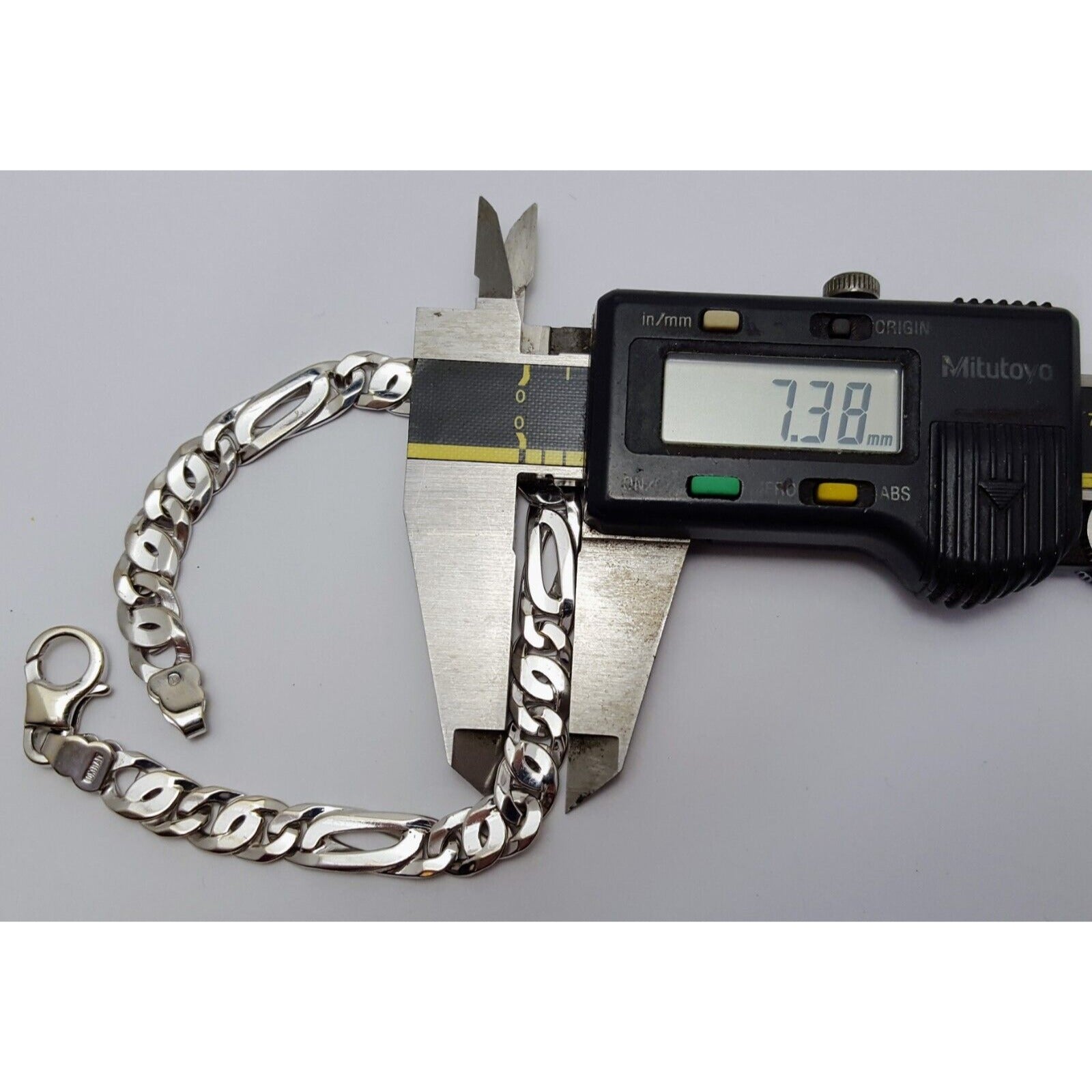 10K Solid White Gold Fancy Figaro Link Bracelet