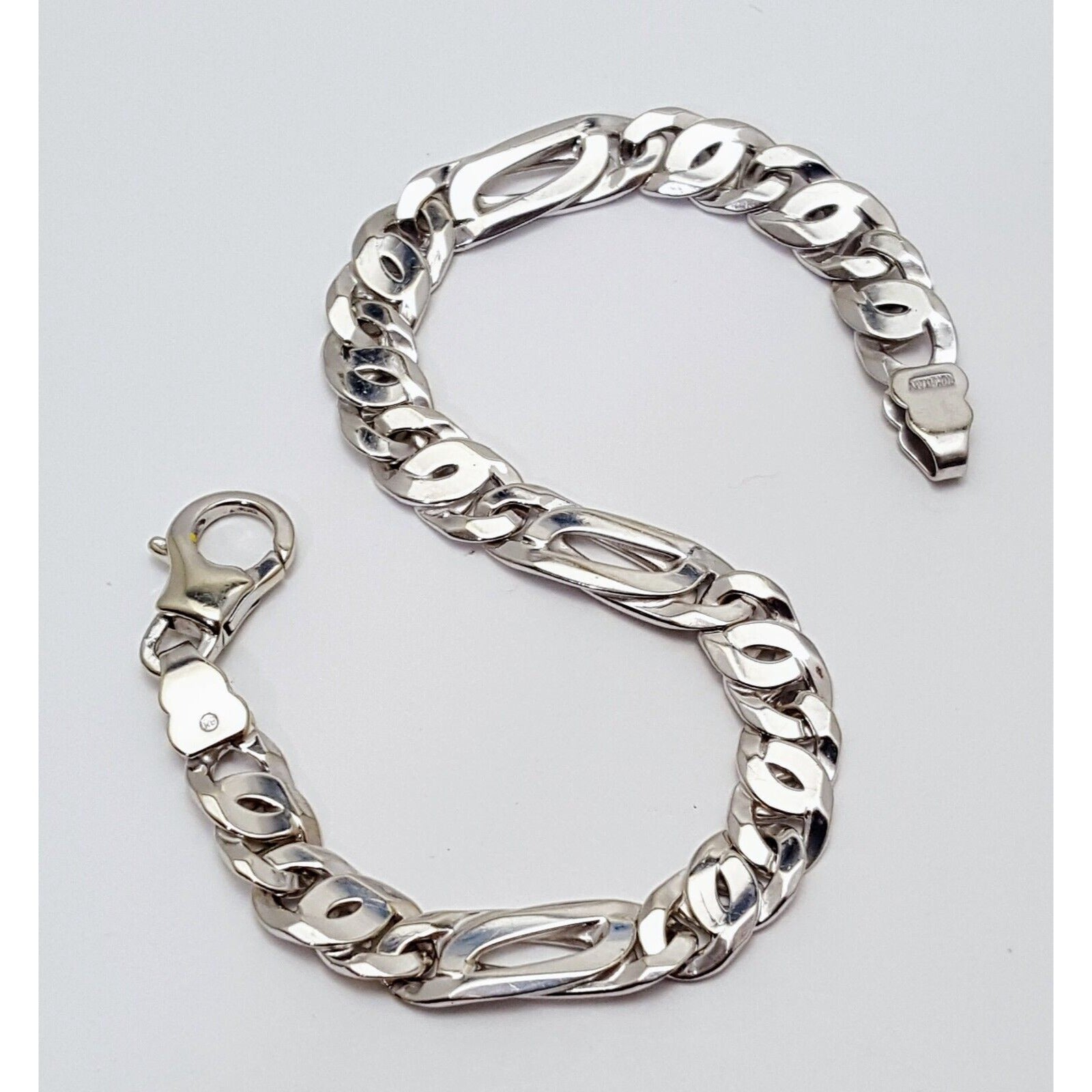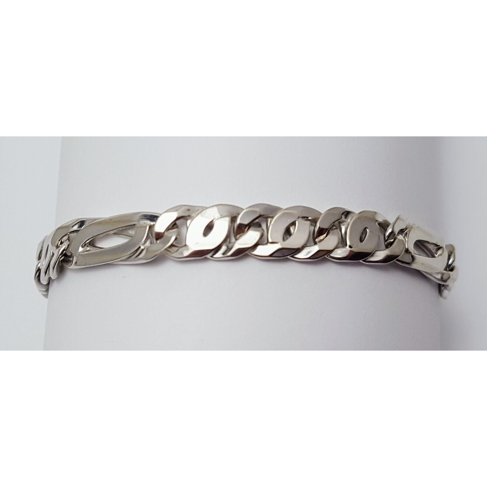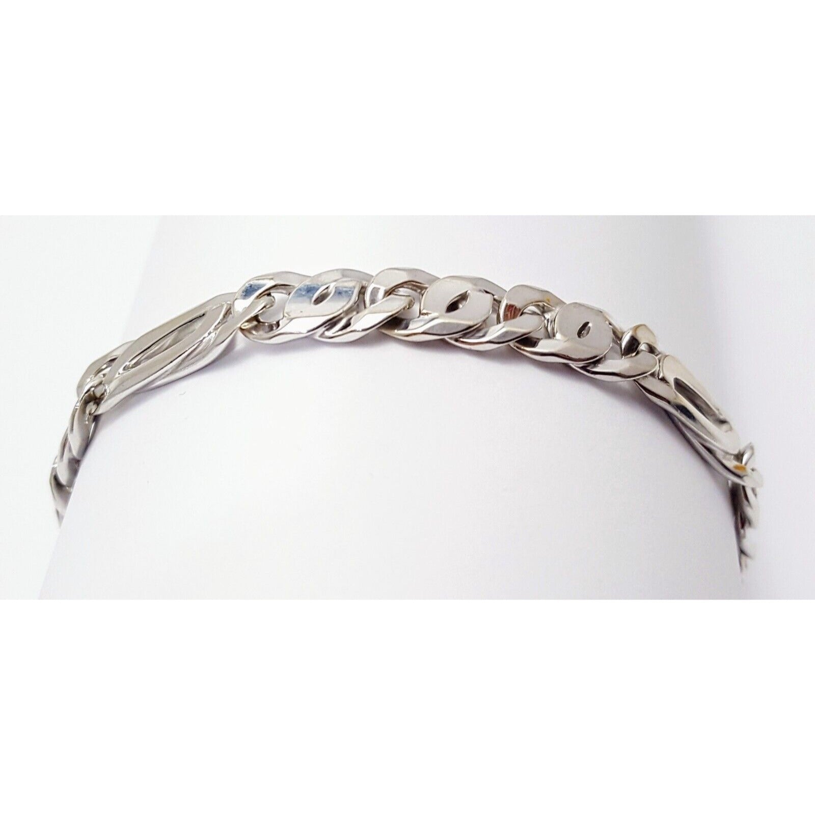 10K Solid White Gold Fancy Figaro Link Bracelet