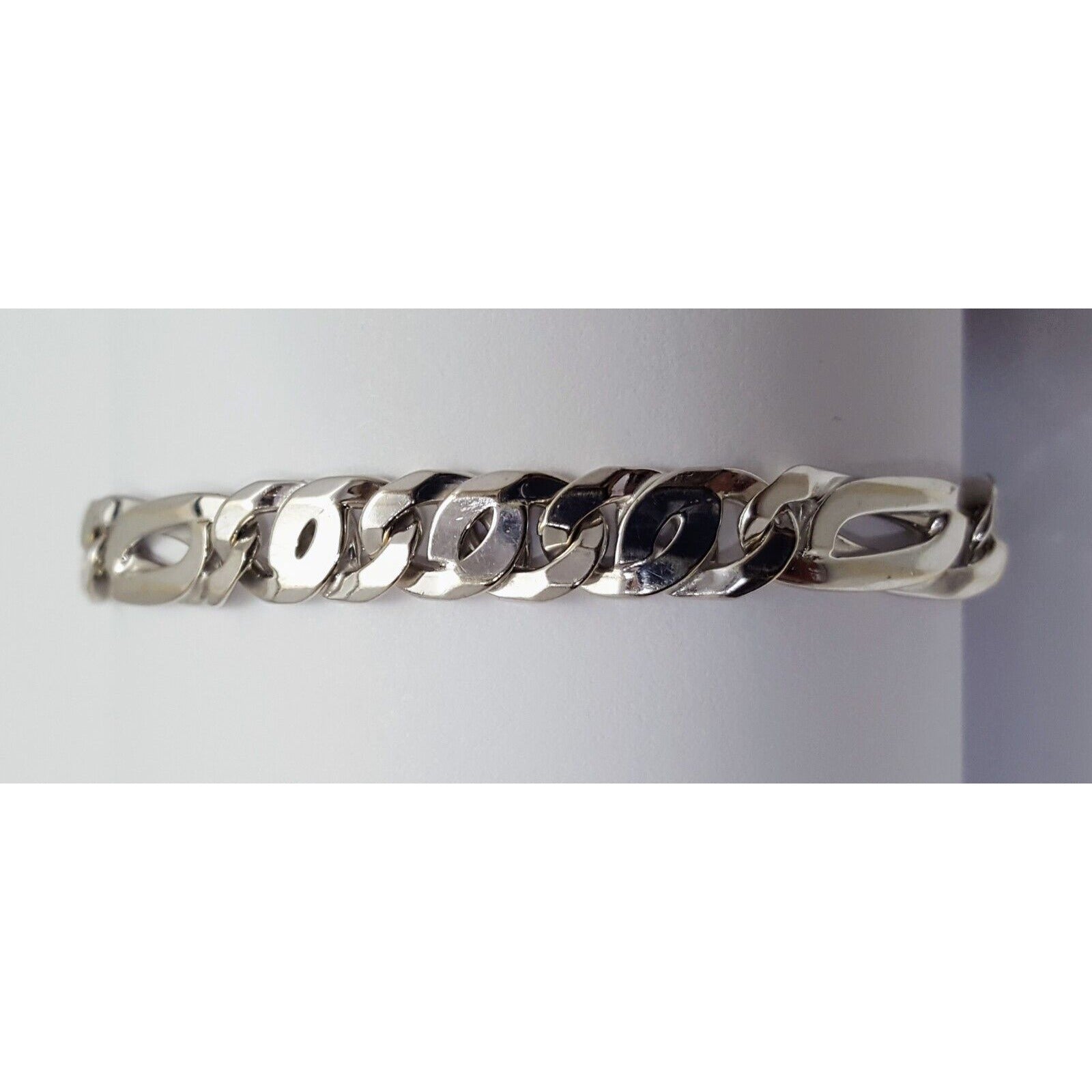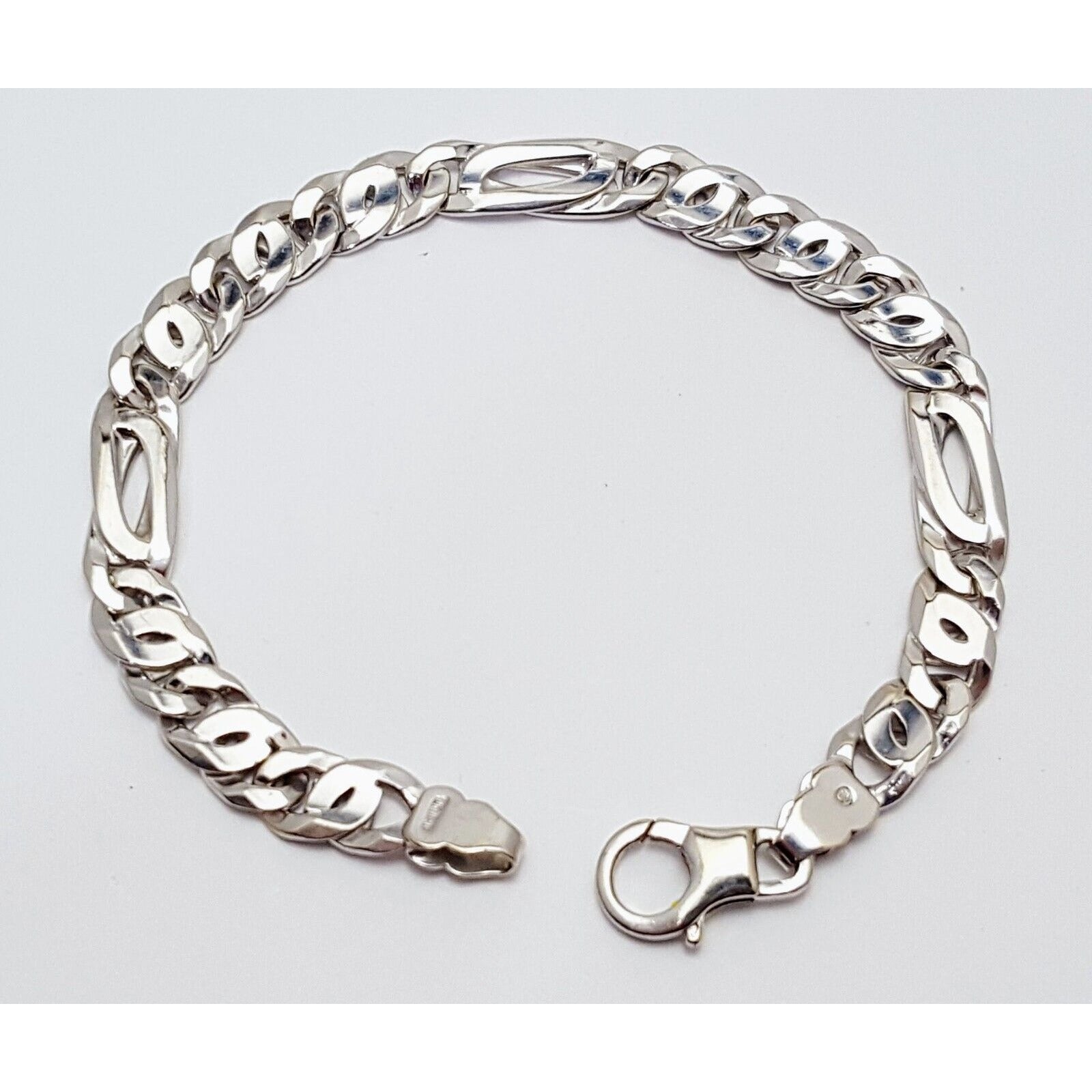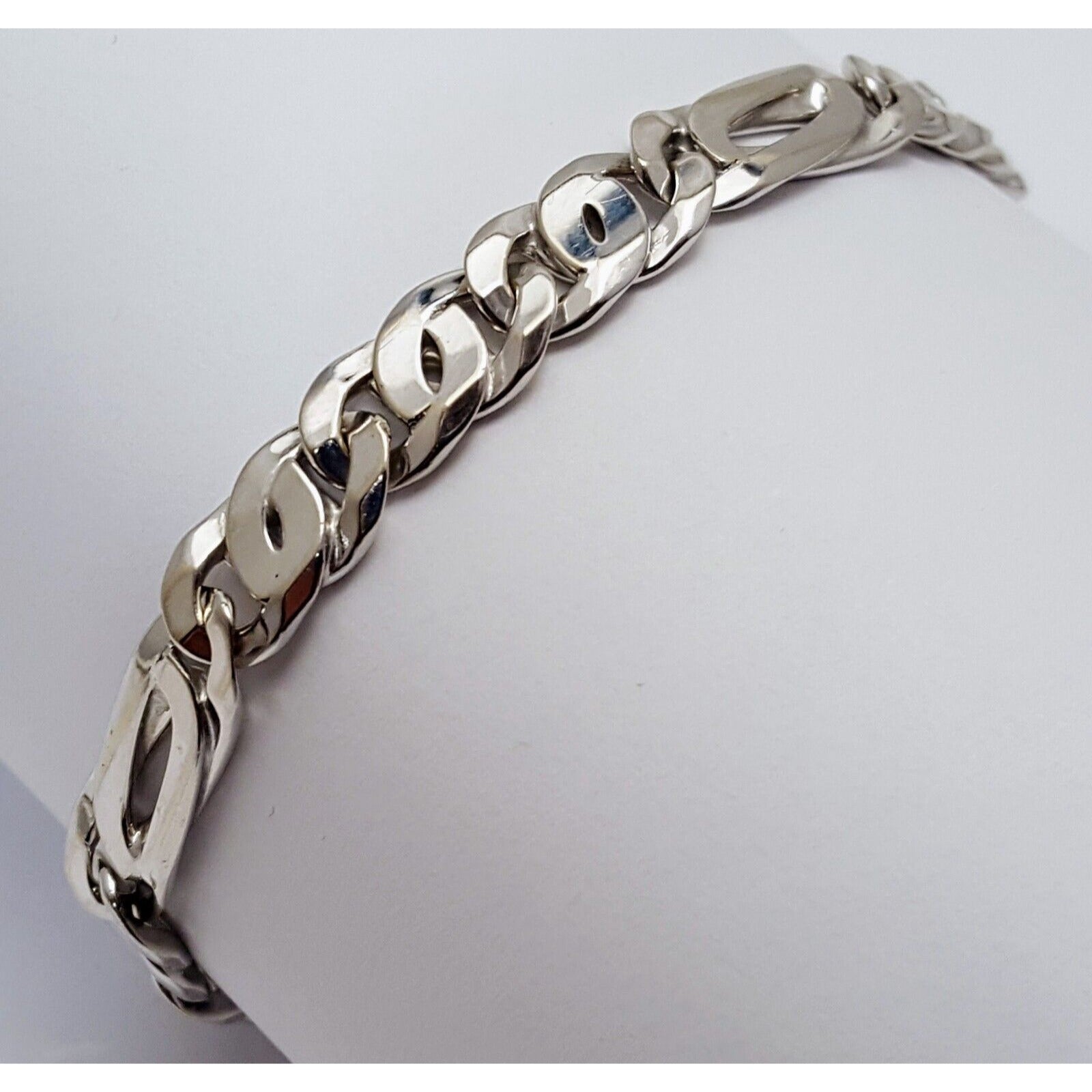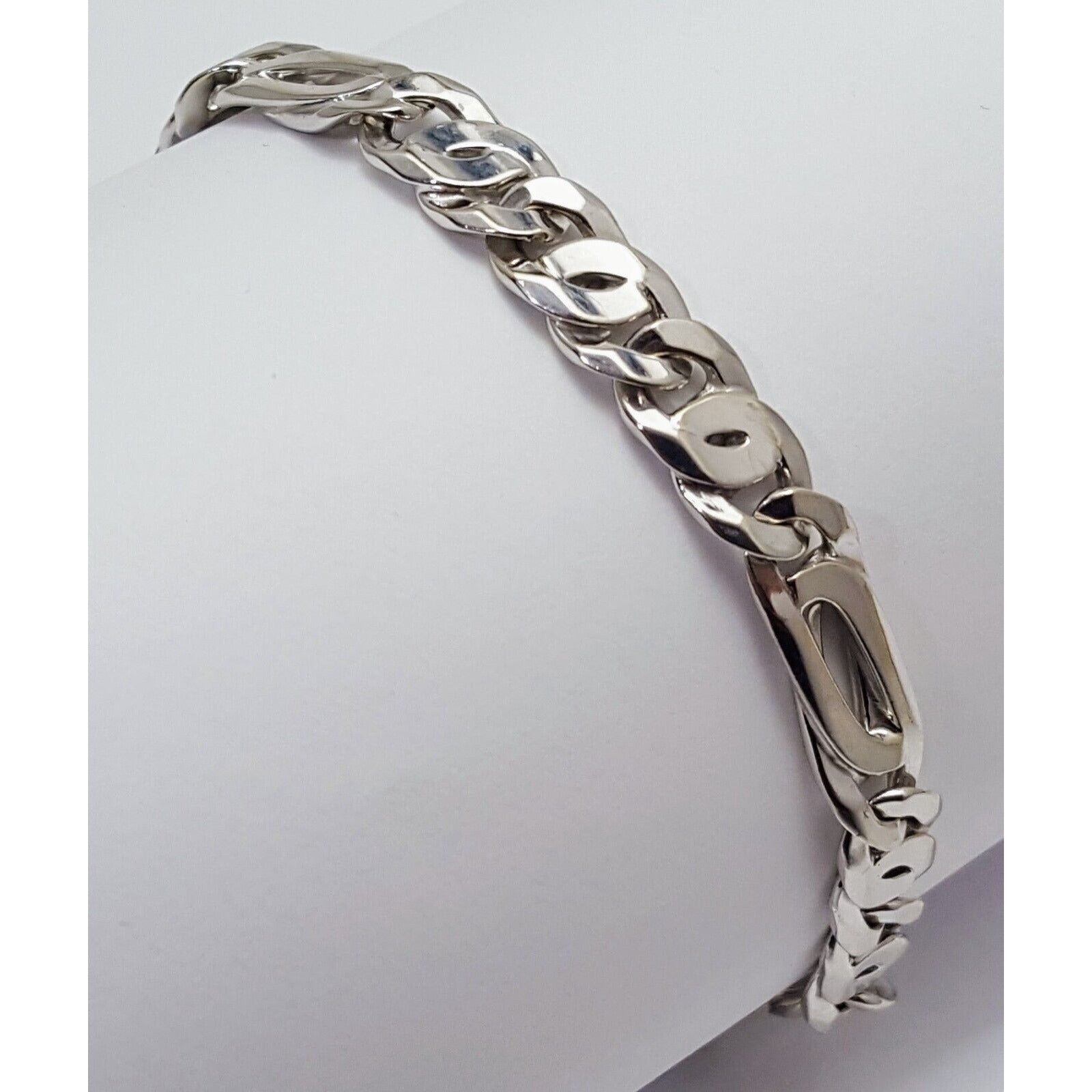 10K Solid White Gold Fancy Figaro Link Bracelet