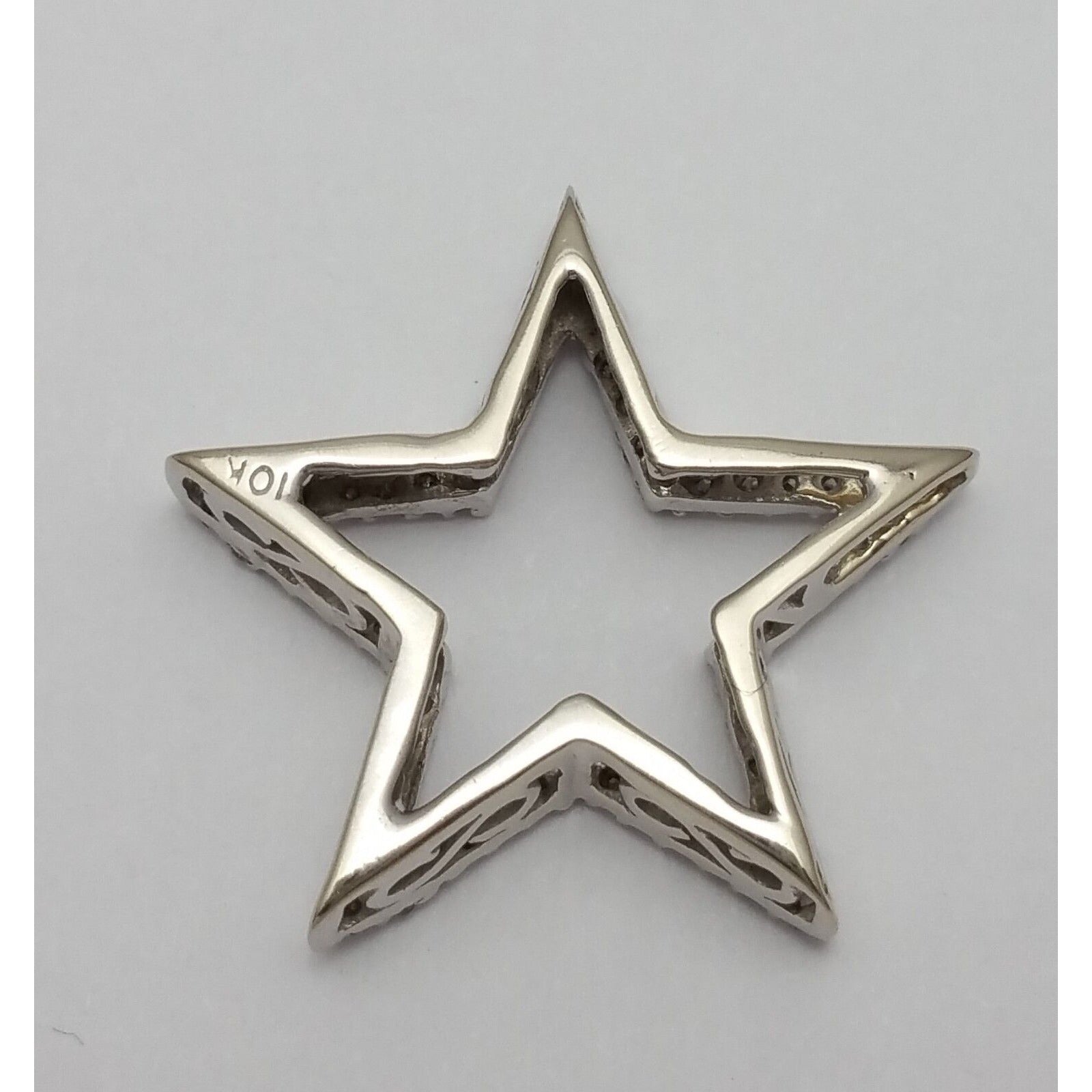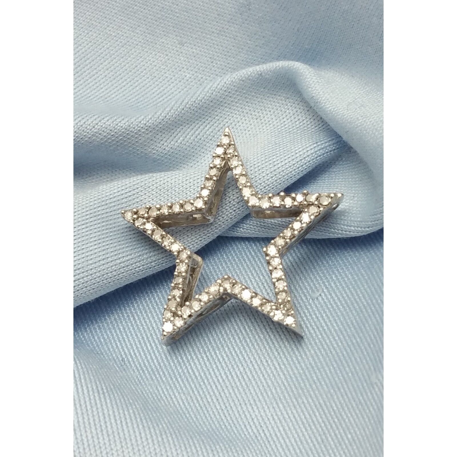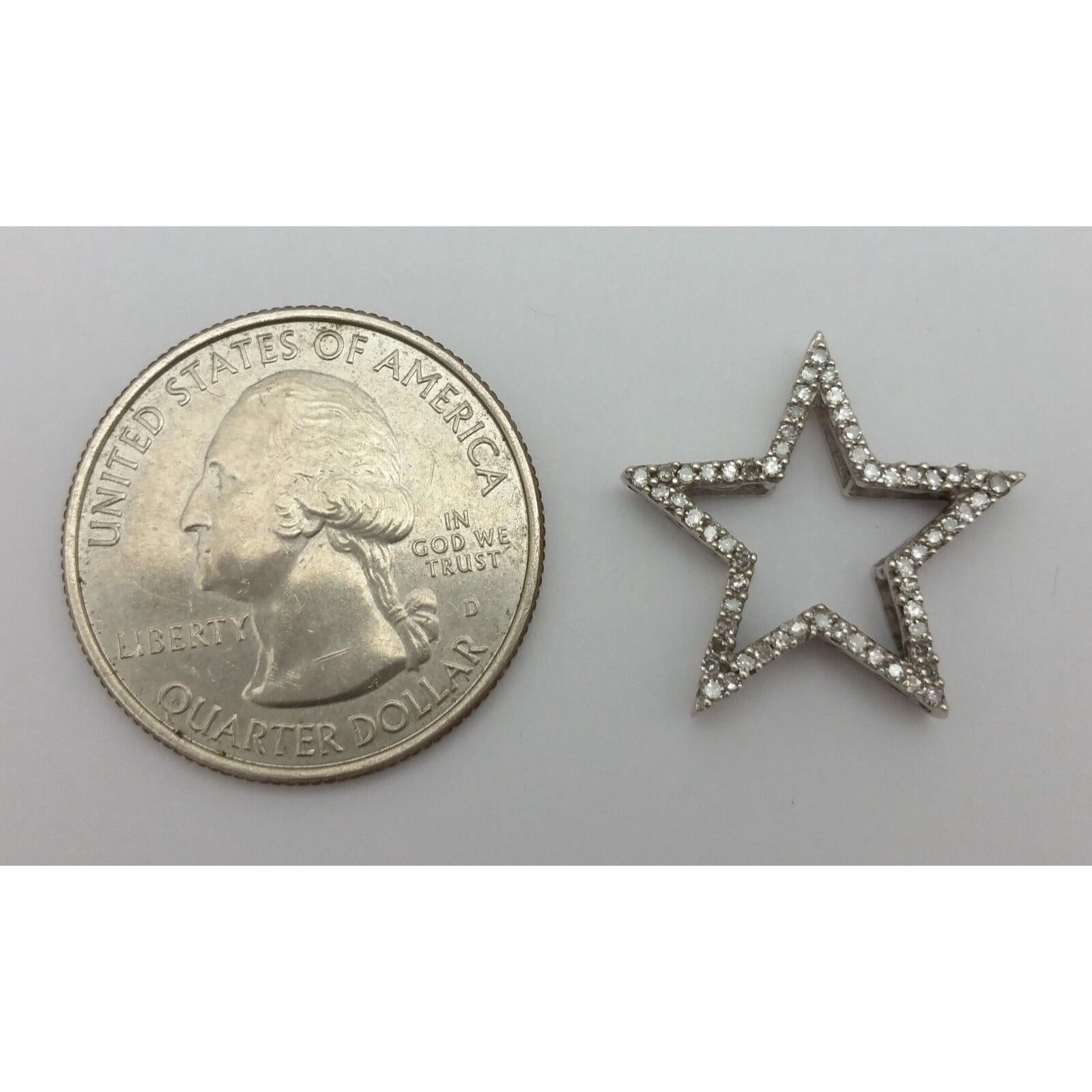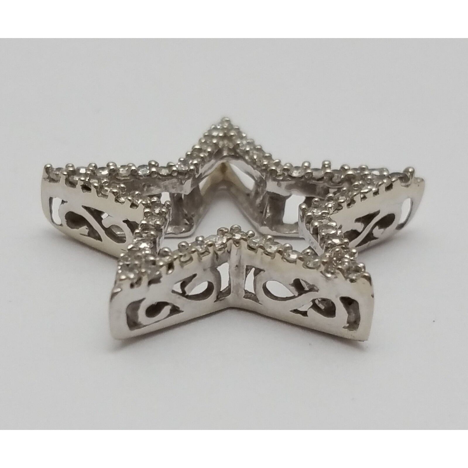 10K Solid White Gold Star Shaped Diamond Charm Pendant
