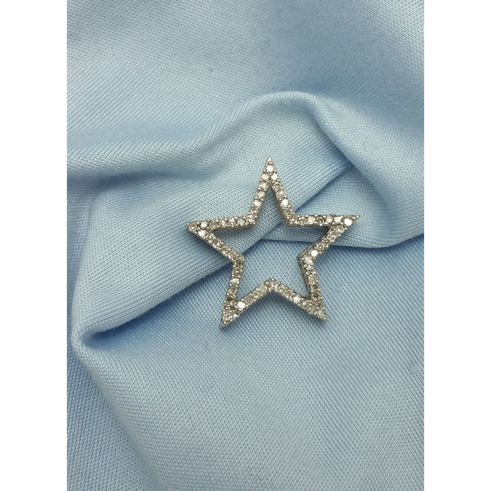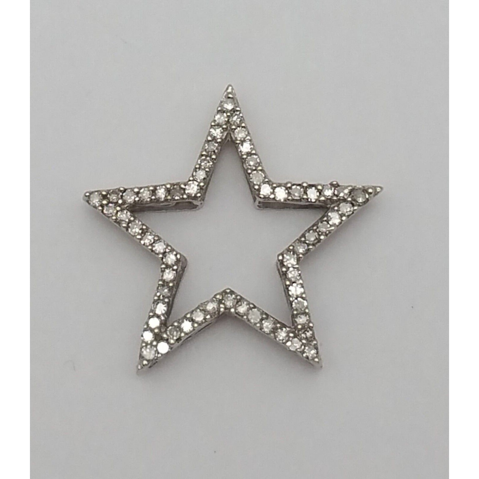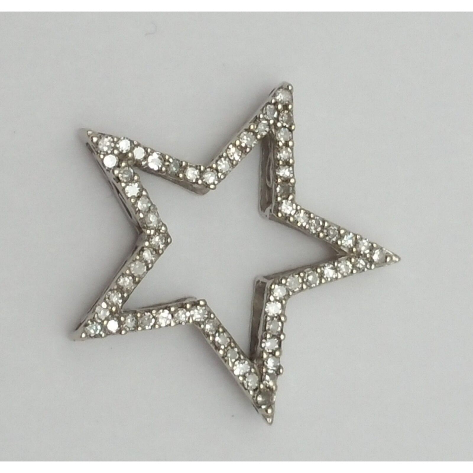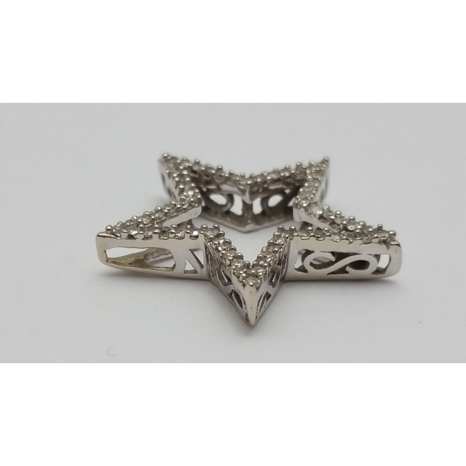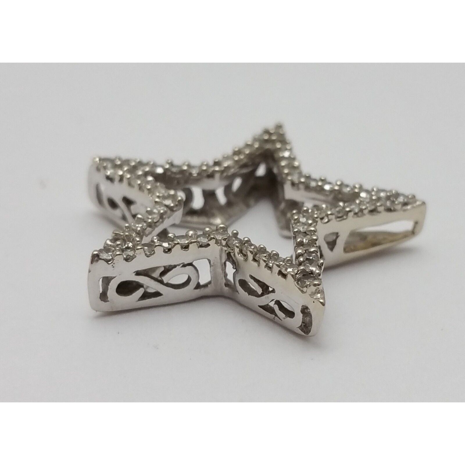 10K Solid White Gold Star Shaped Diamond Charm Pendant