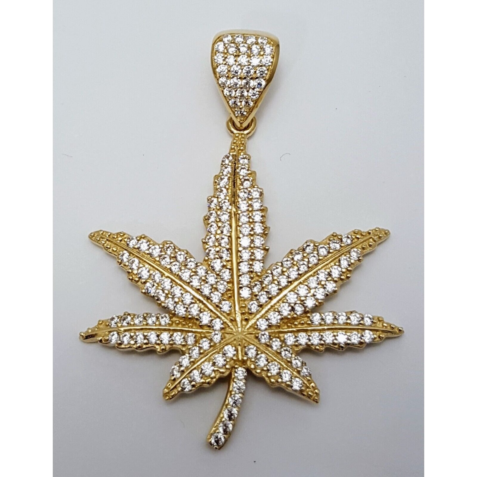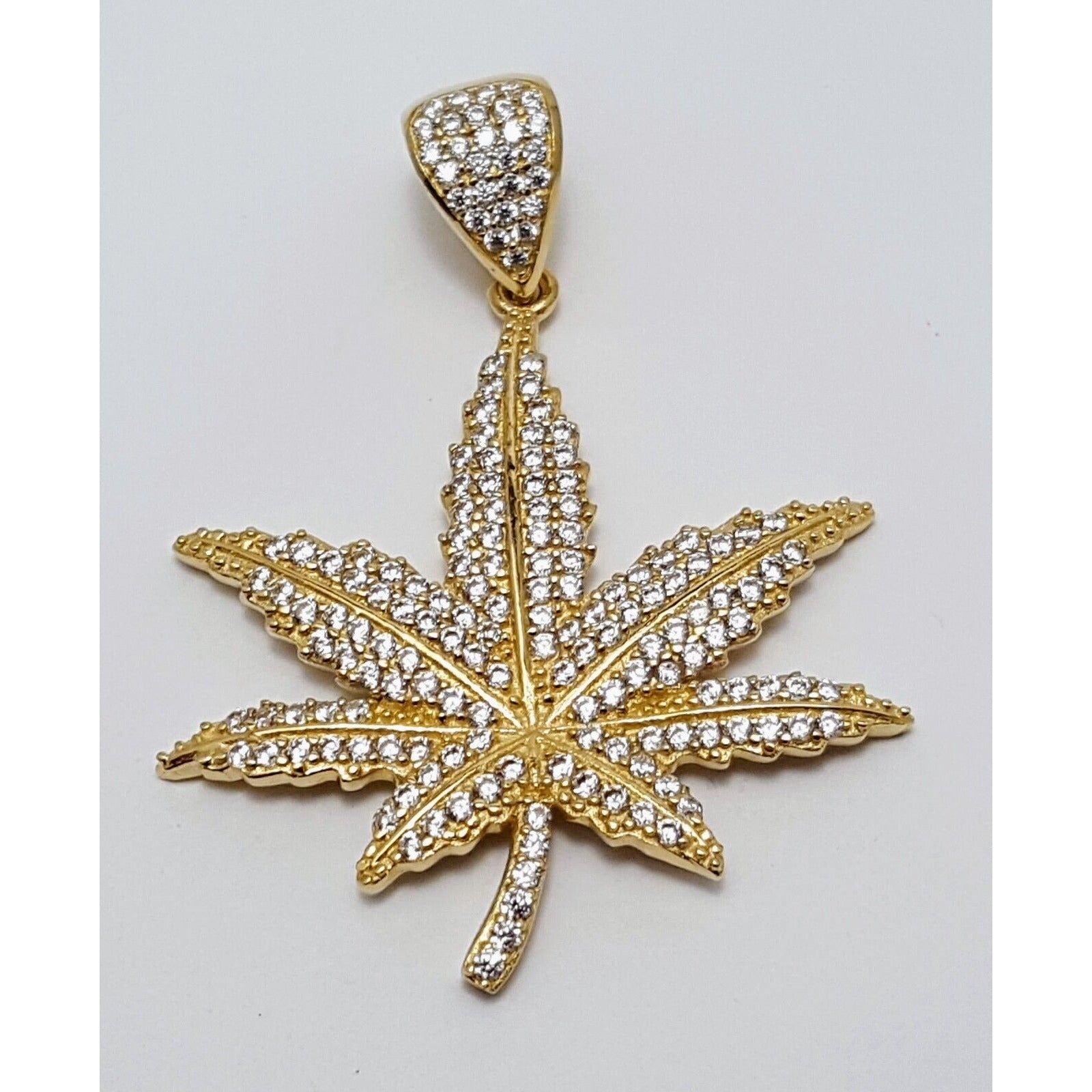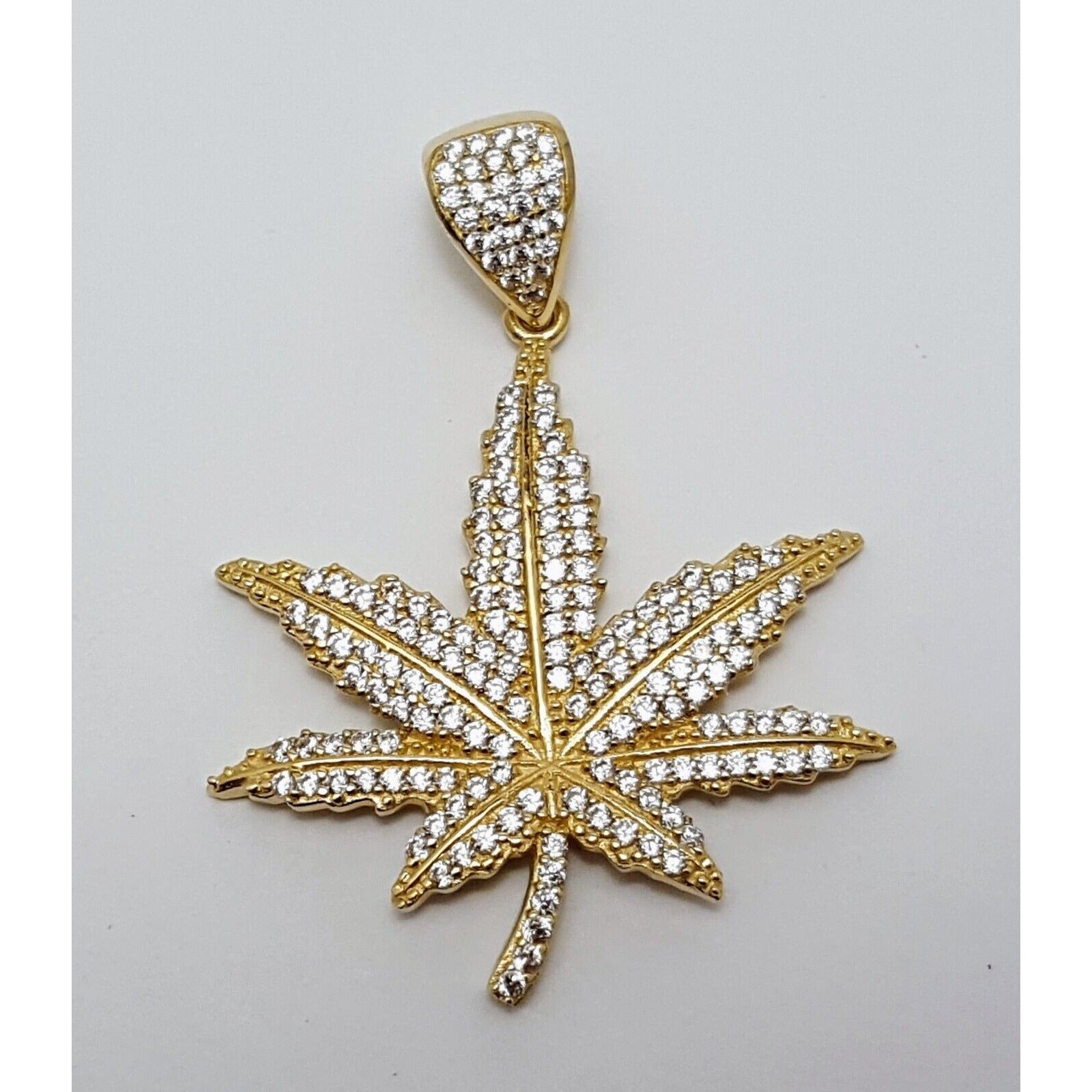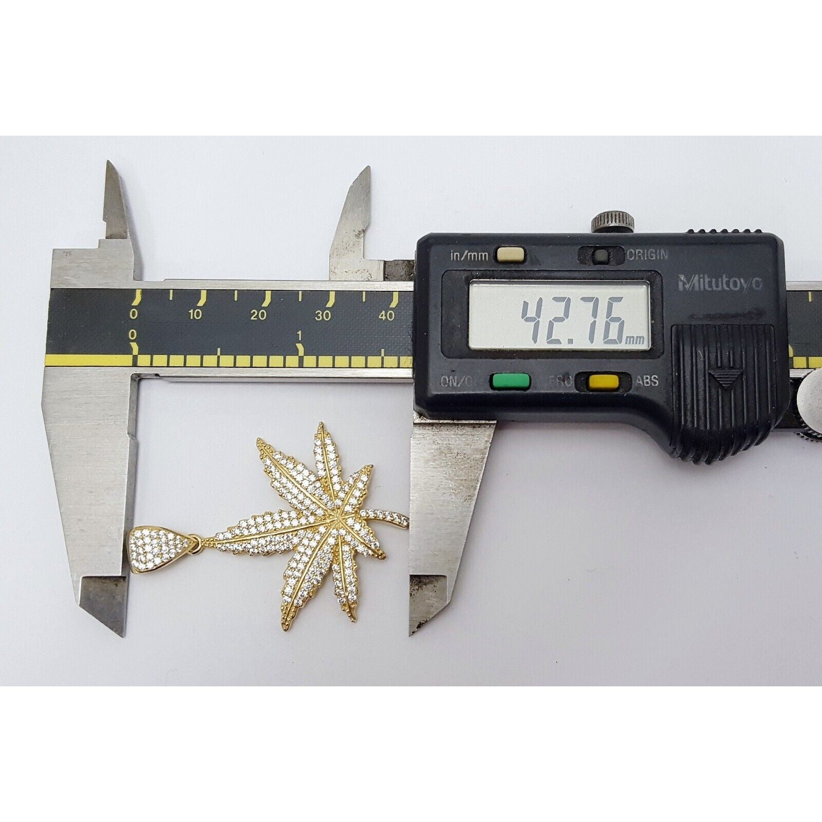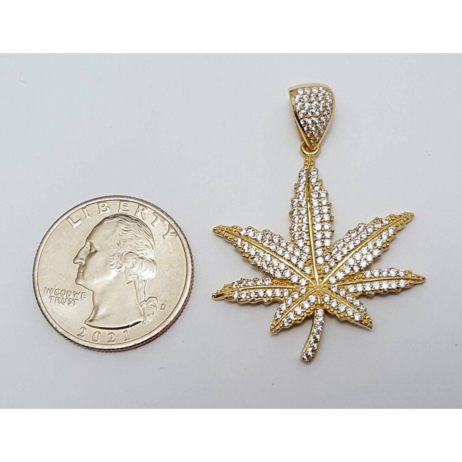 10K Solid Yellow Gold Cubic Zirconia Marijuana Leaf Weed Charm Pendant