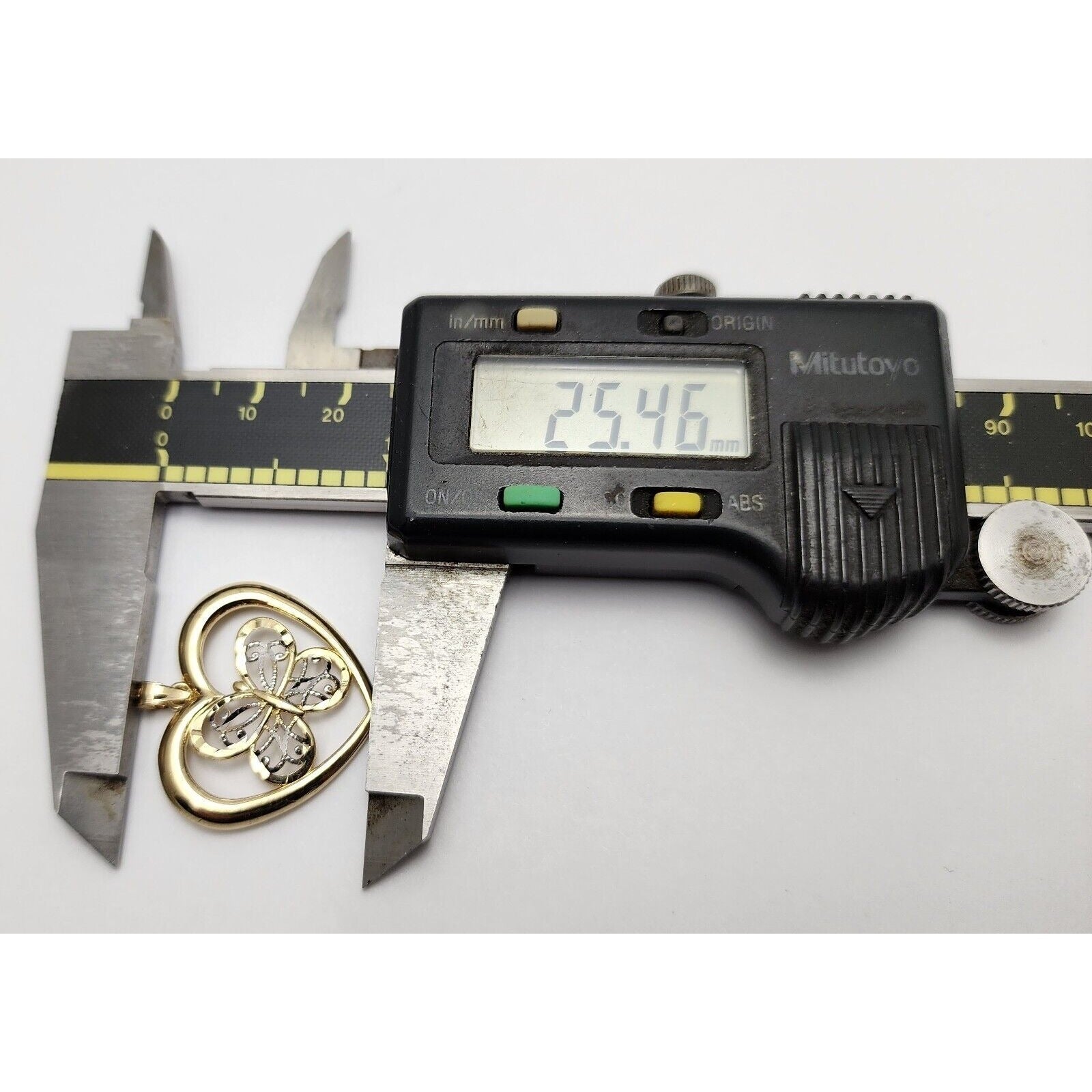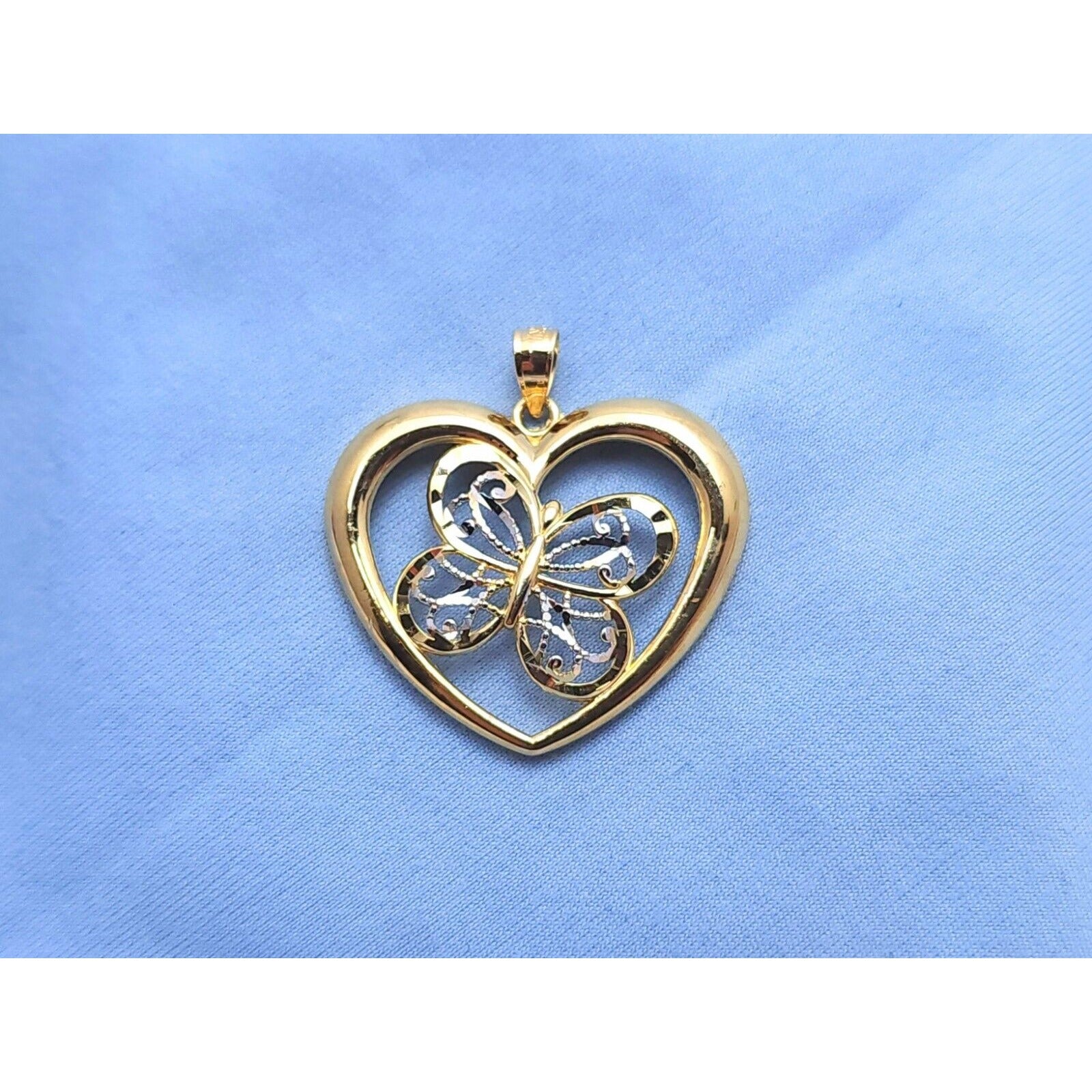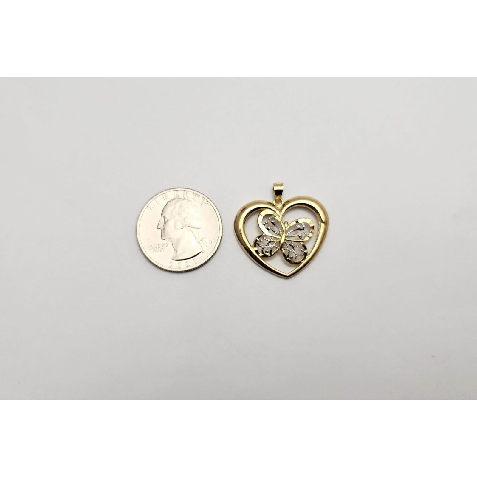 10K Two Tone Gold Diamond Cut Open Heart Butterfly Charm Pendant