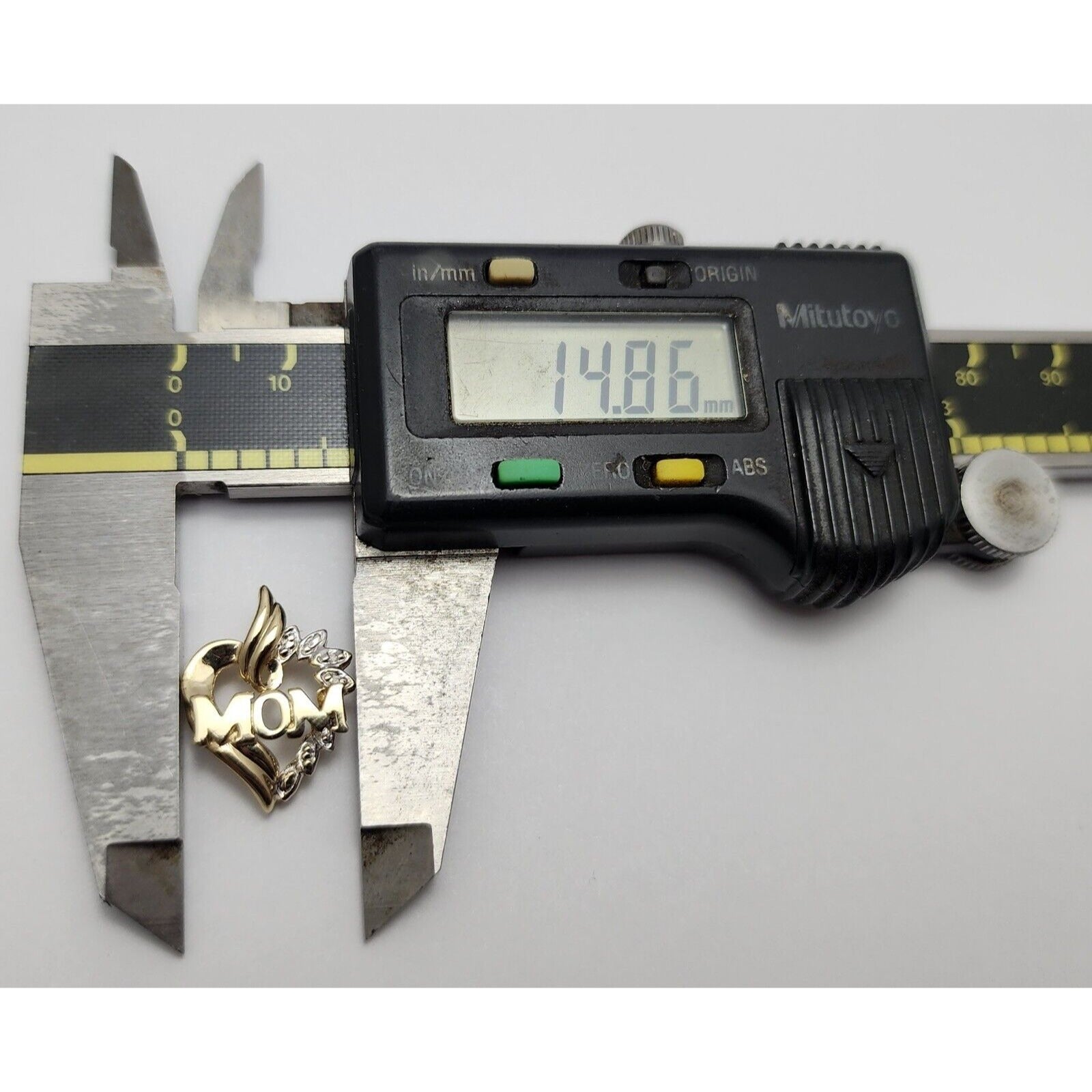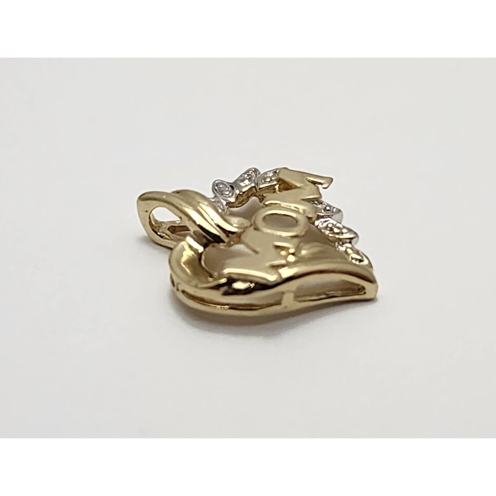 10K Two Tone Gold Diamond Heart Initial "Mom" Charm Pendant