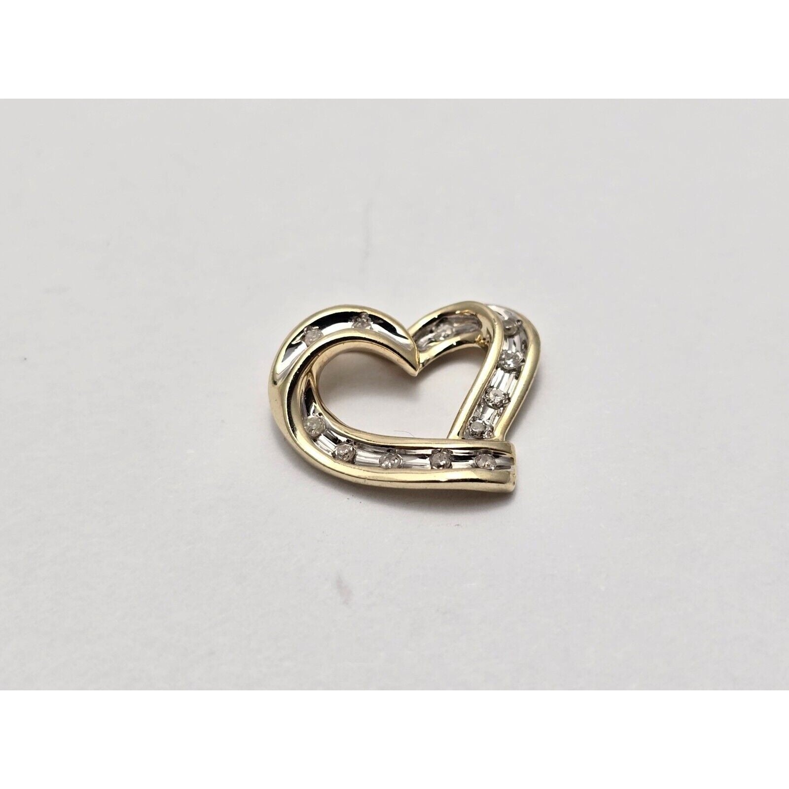 10K Two Tone Gold Diamond Open Heart Charm Pendant