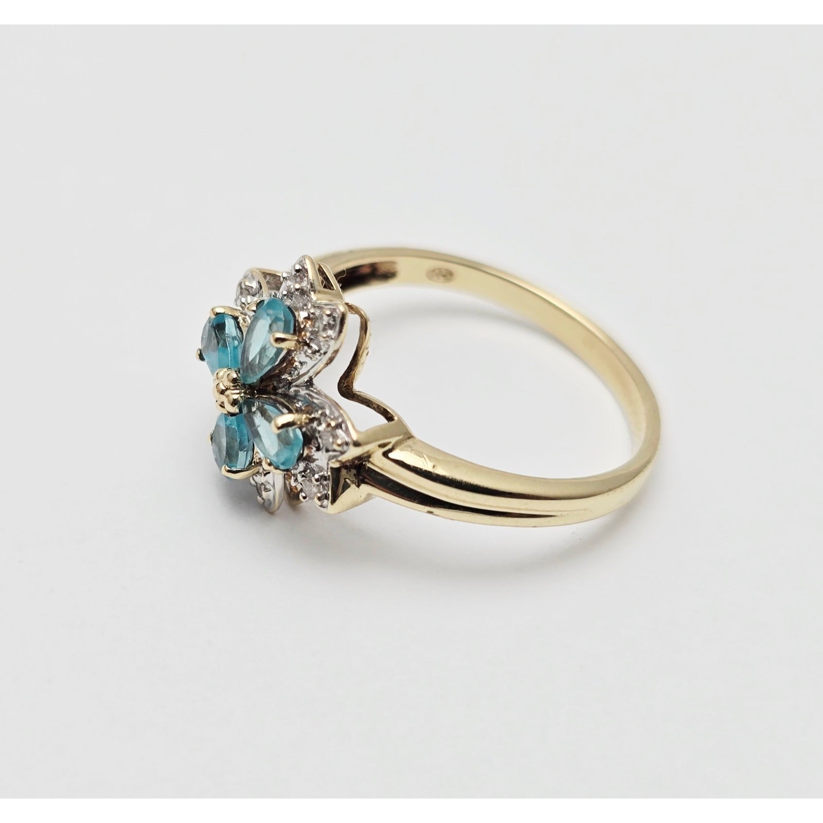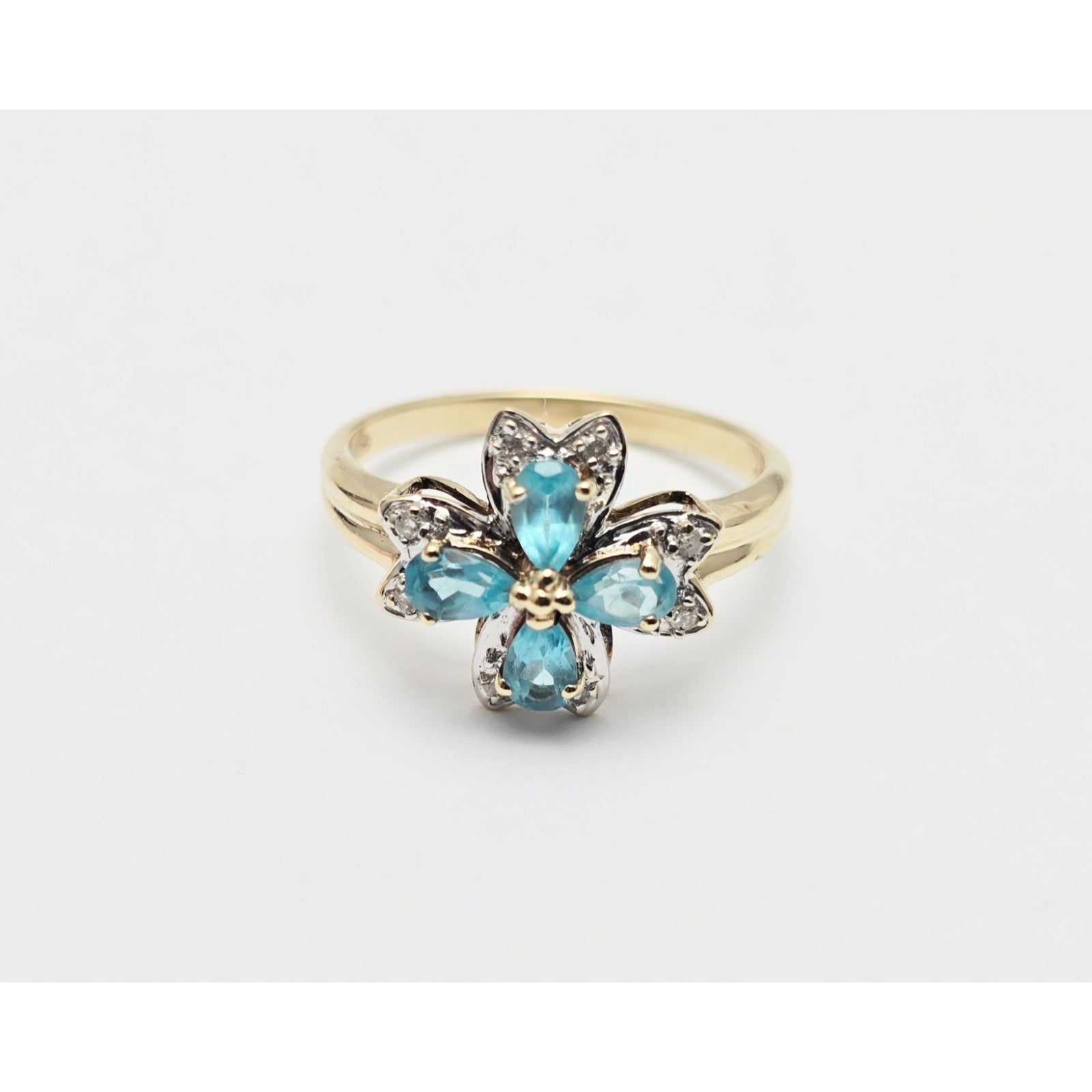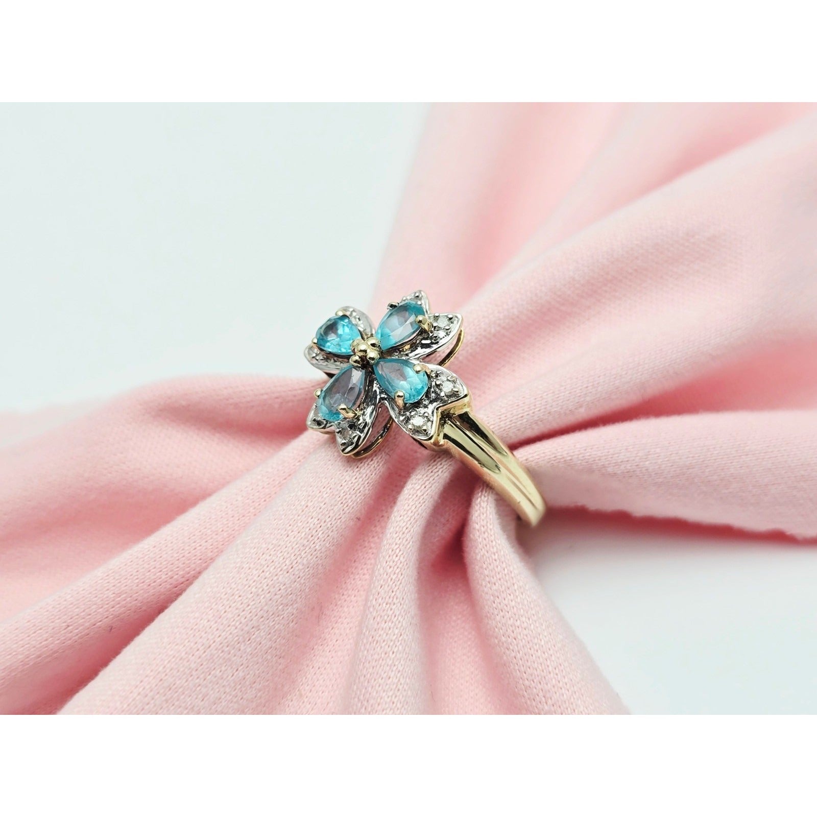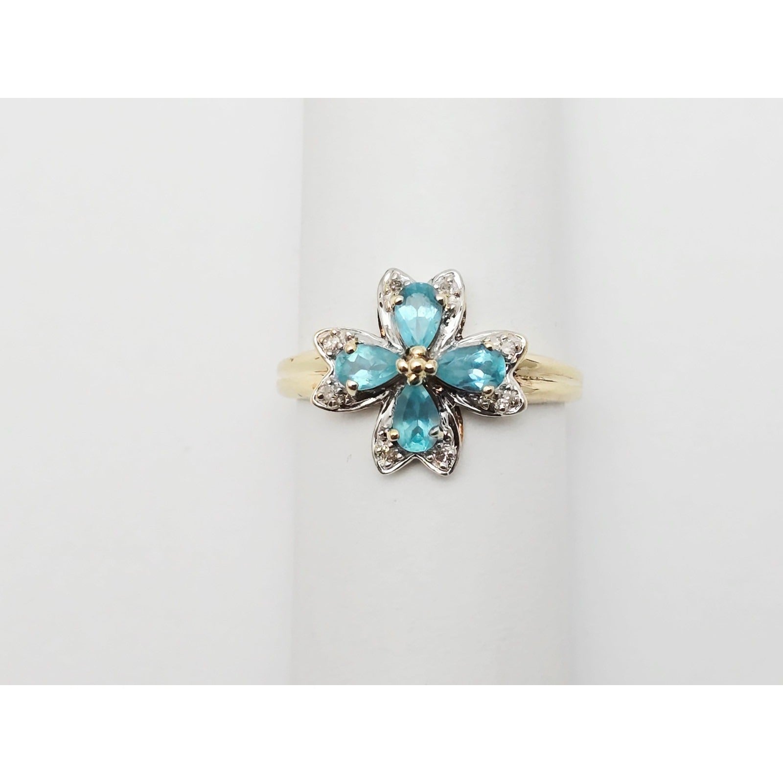 10K Two Tone Gold Green Quartz & Diamond Flower Ring