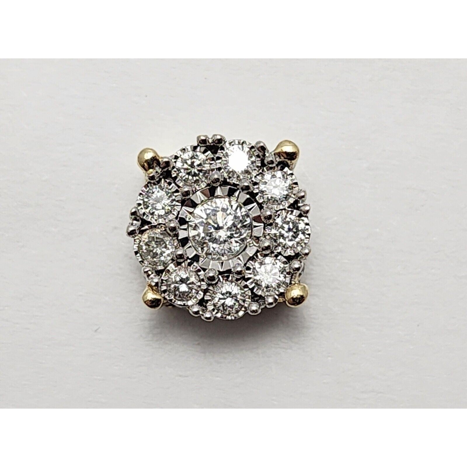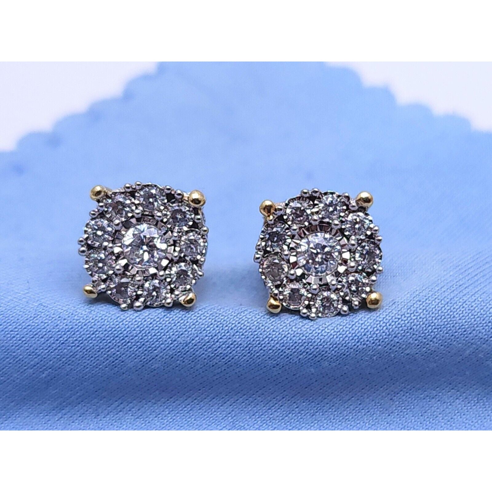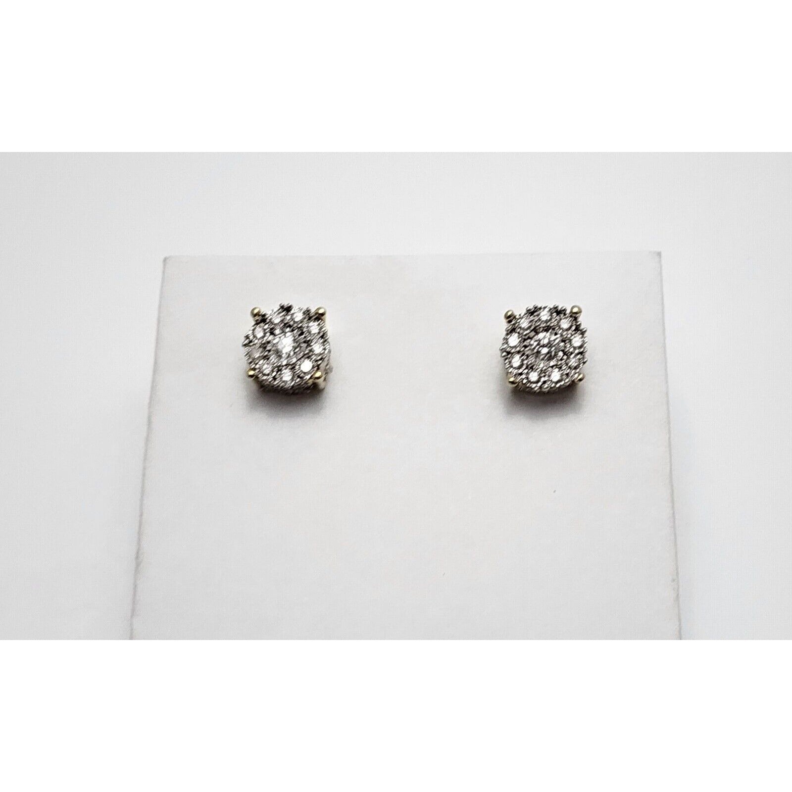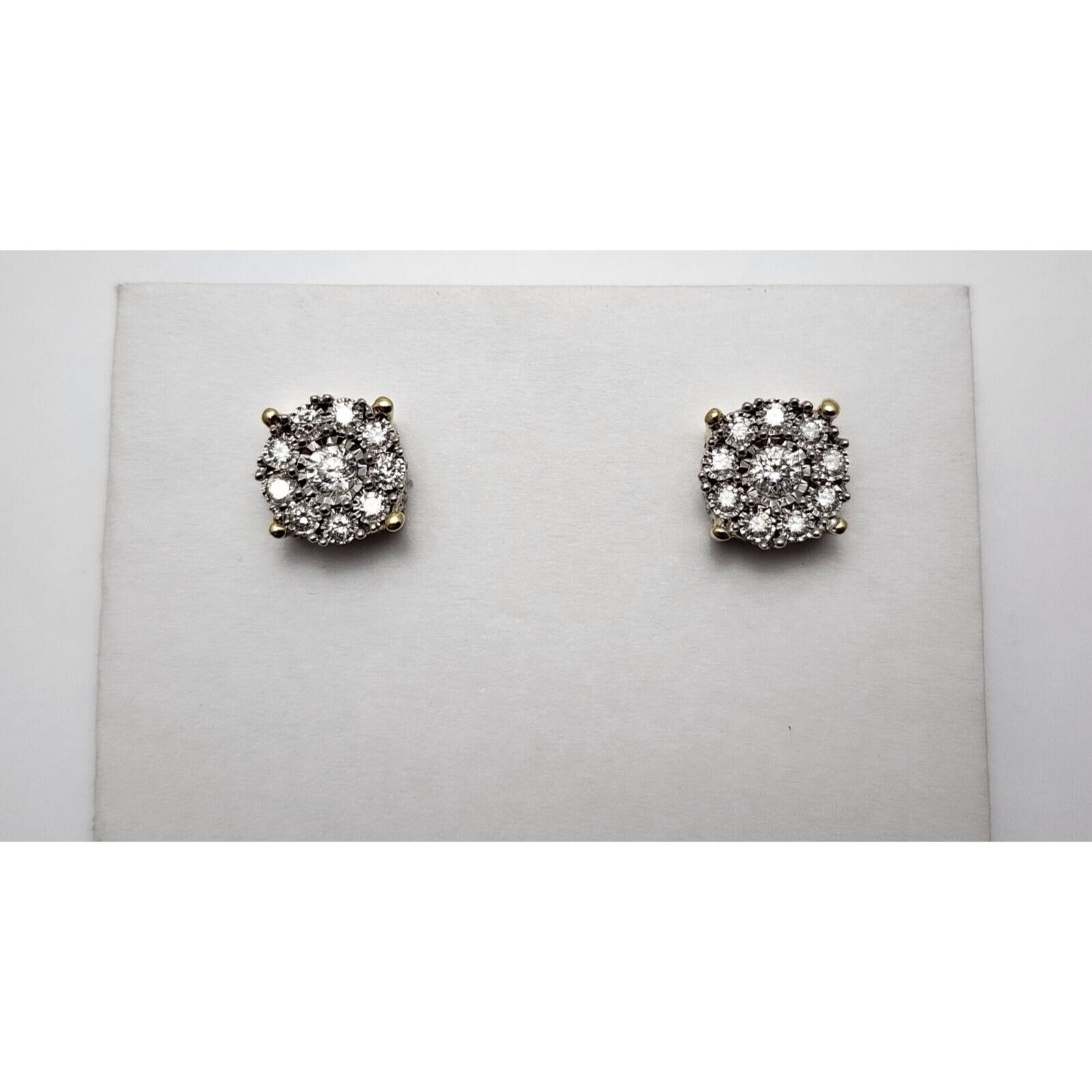 10K Two Tone Gold Round Diamond Flower Stud Earrings
