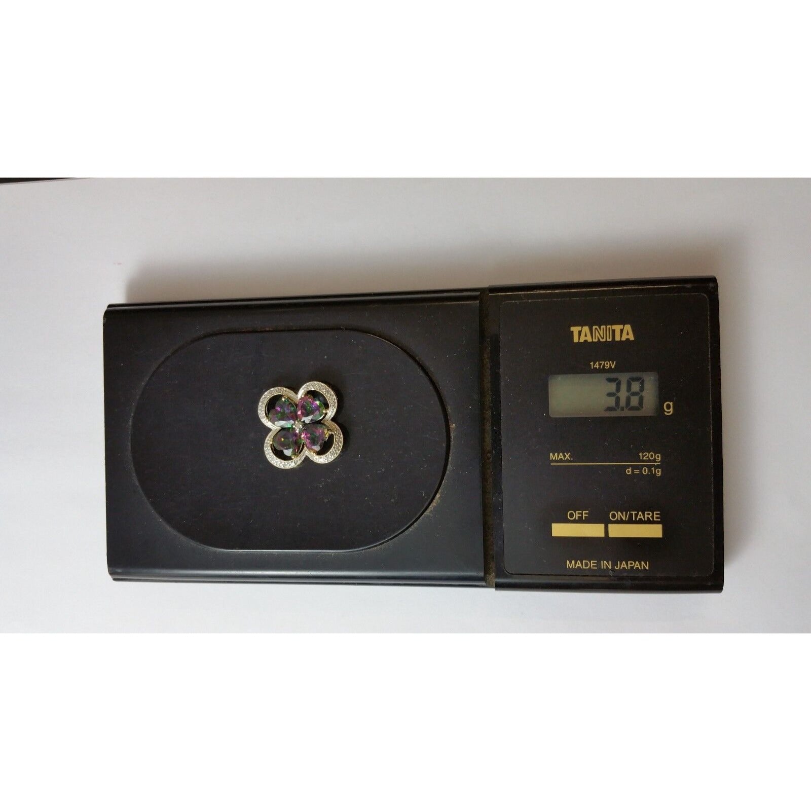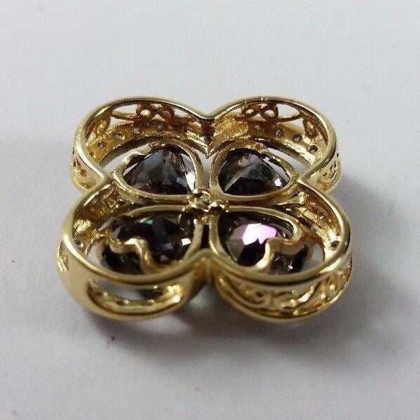 10K Two Tone Multi Tone Gold Designer Purple Crystal & Diamond Pendant Charm