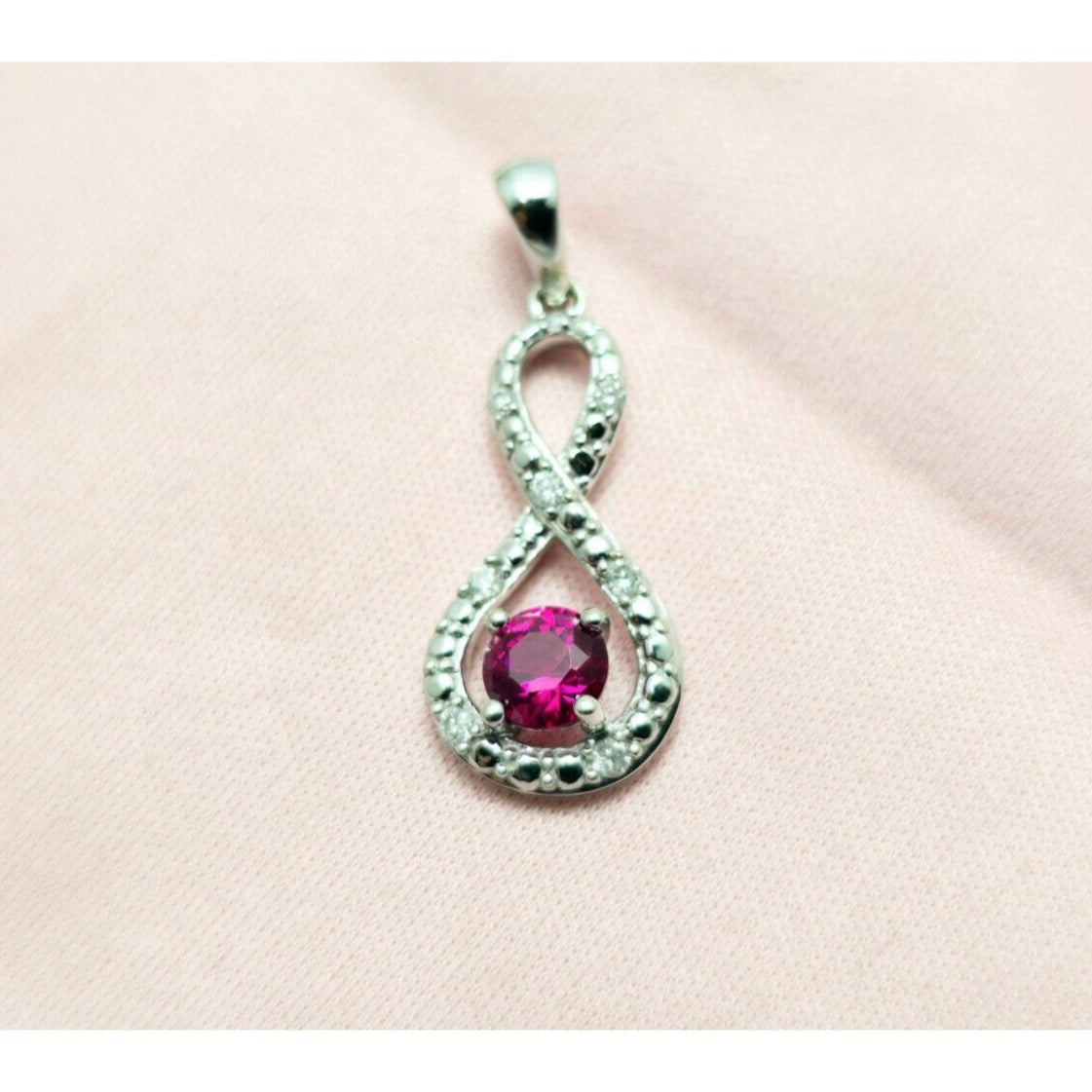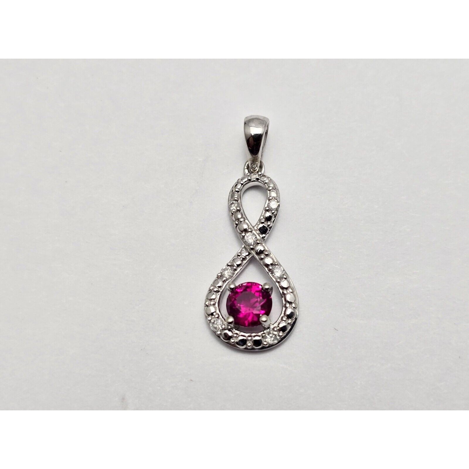 10K White Gold Diamond & Ruby Infinity Charm Pendant