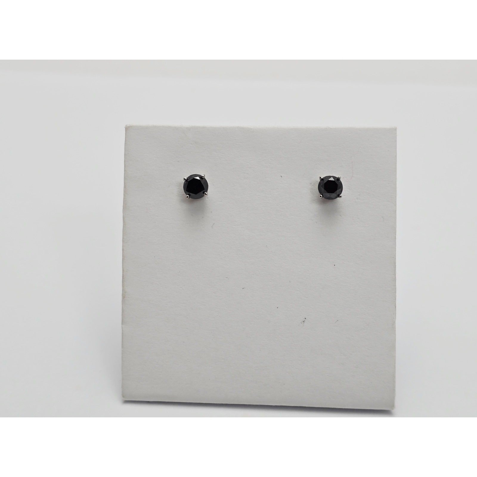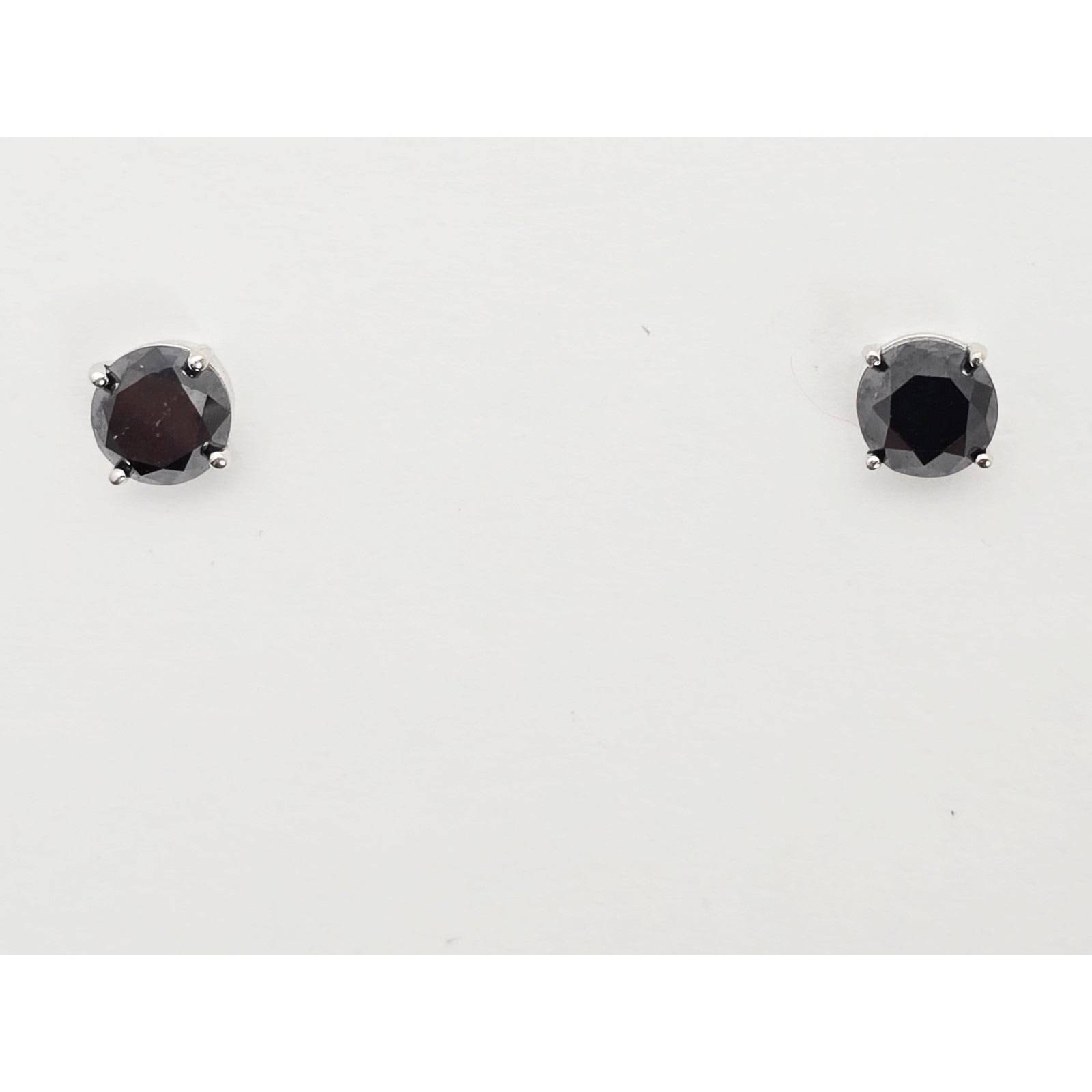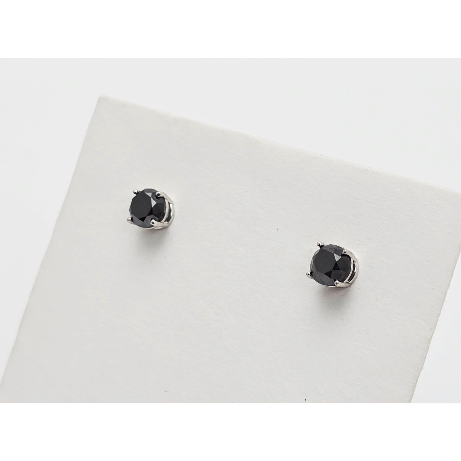 10K White Gold Round Cut Black Diamond Stud Earrings