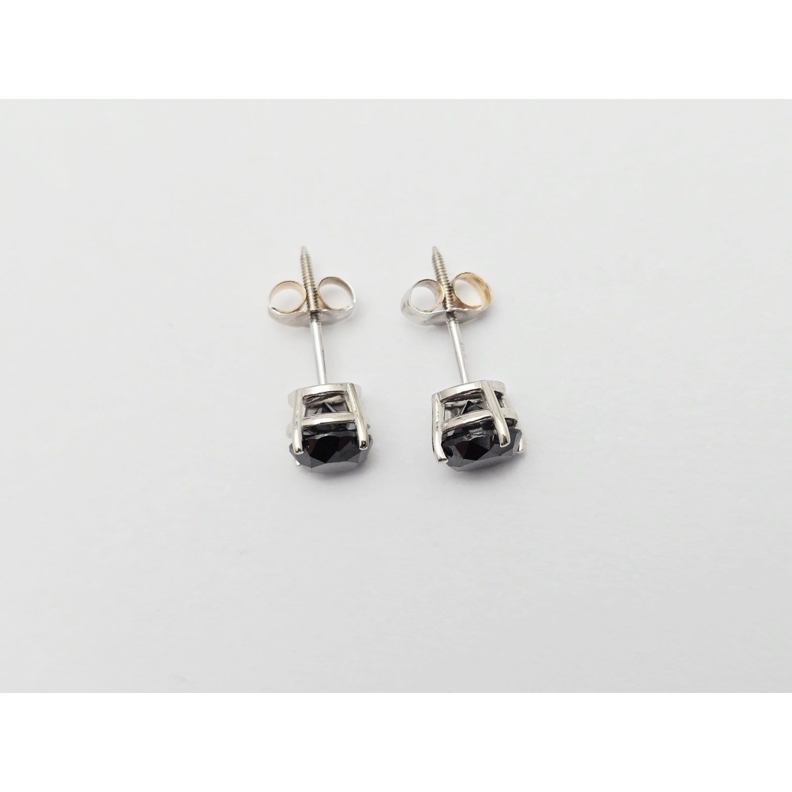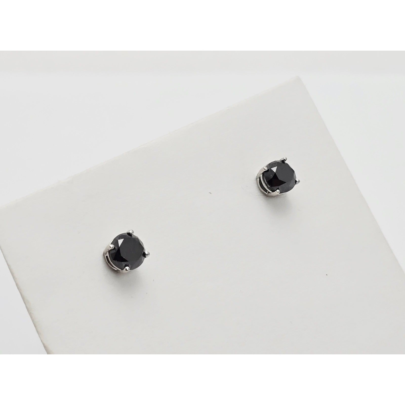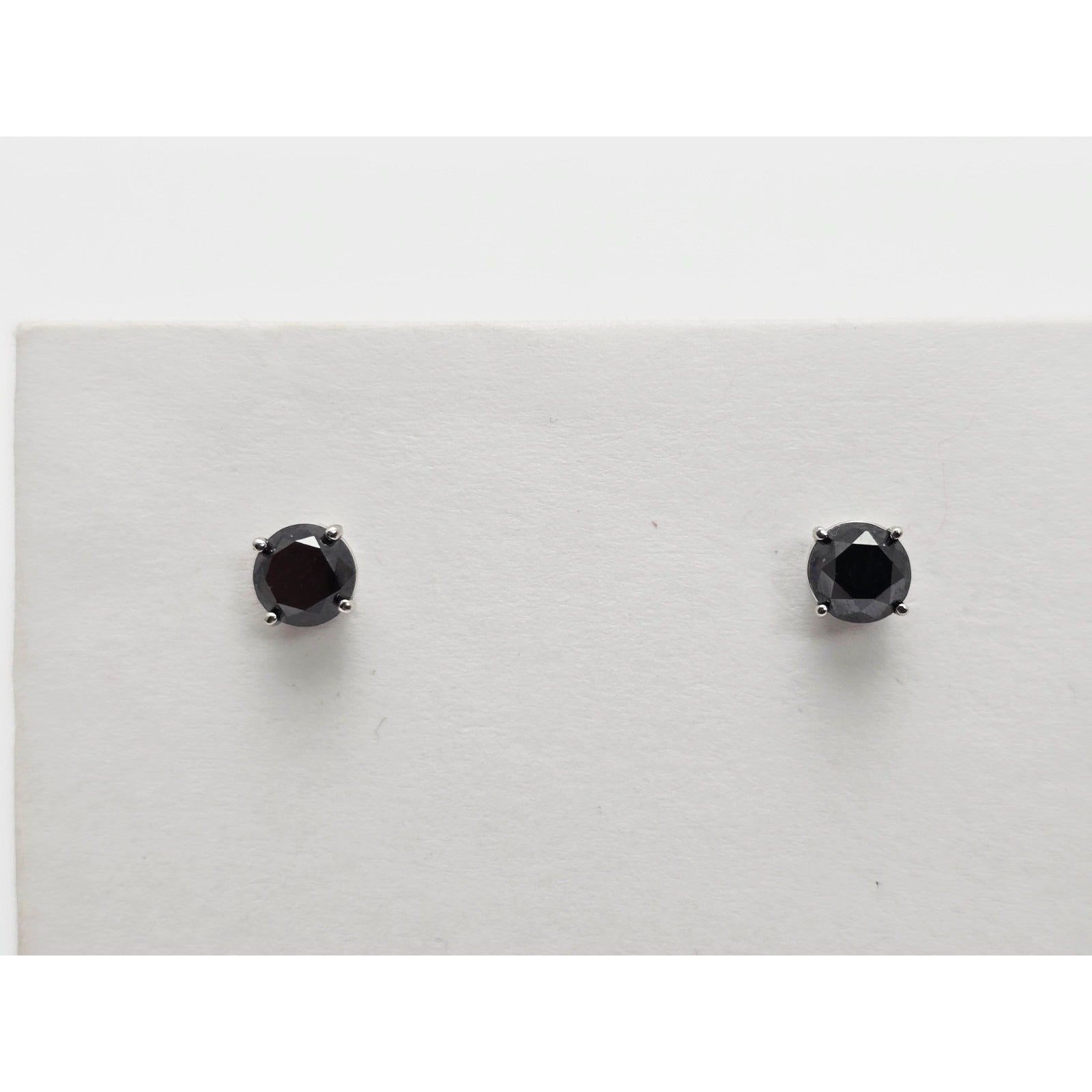 10K White Gold Round Cut Black Diamond Stud Earrings