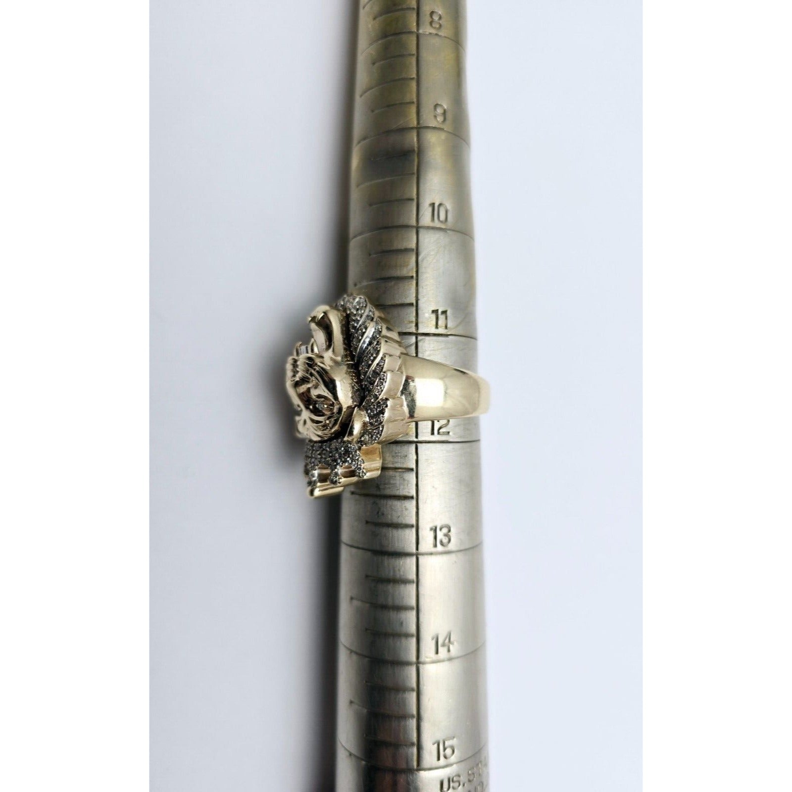 10K Yellow Gold Crown Lion Head Diamond Ring