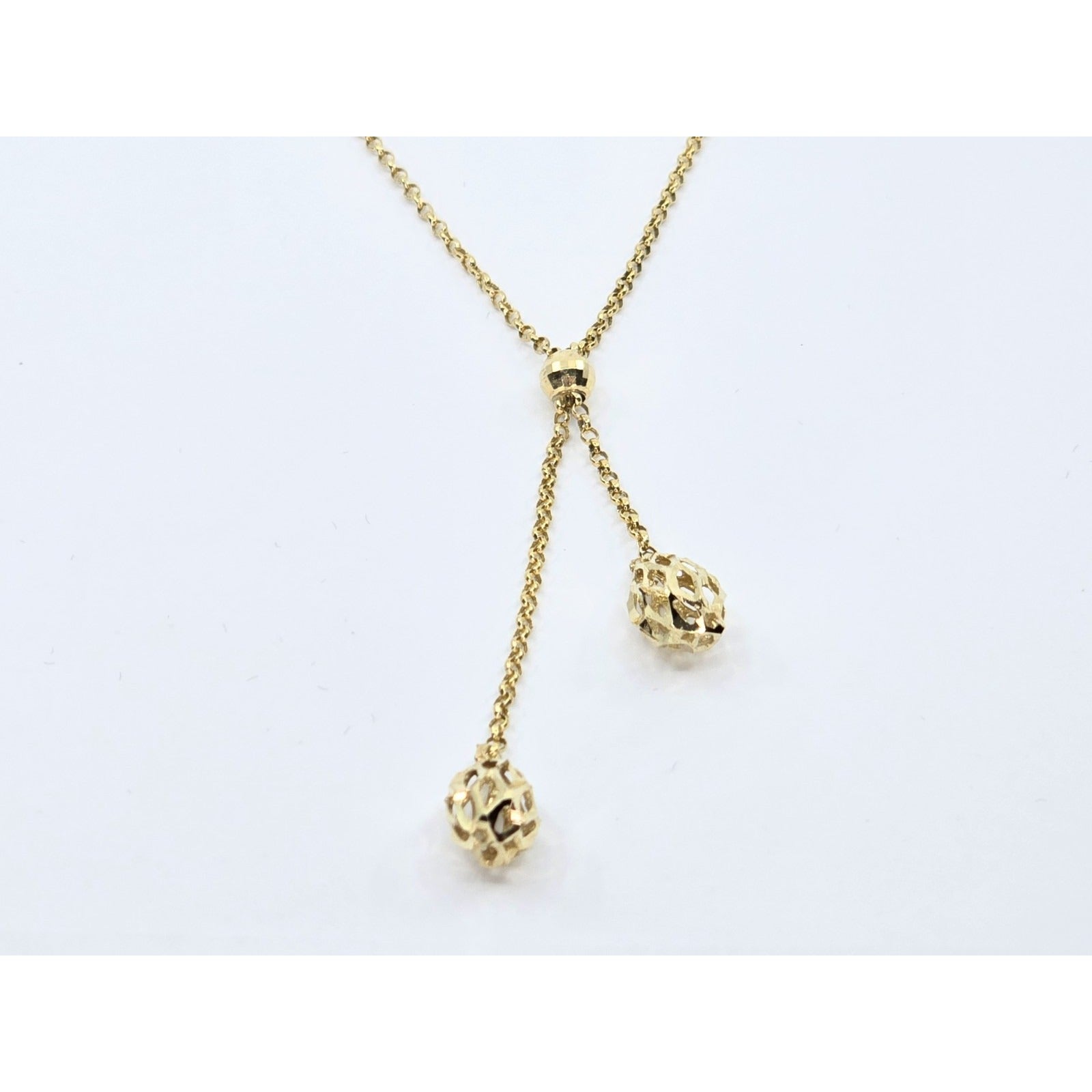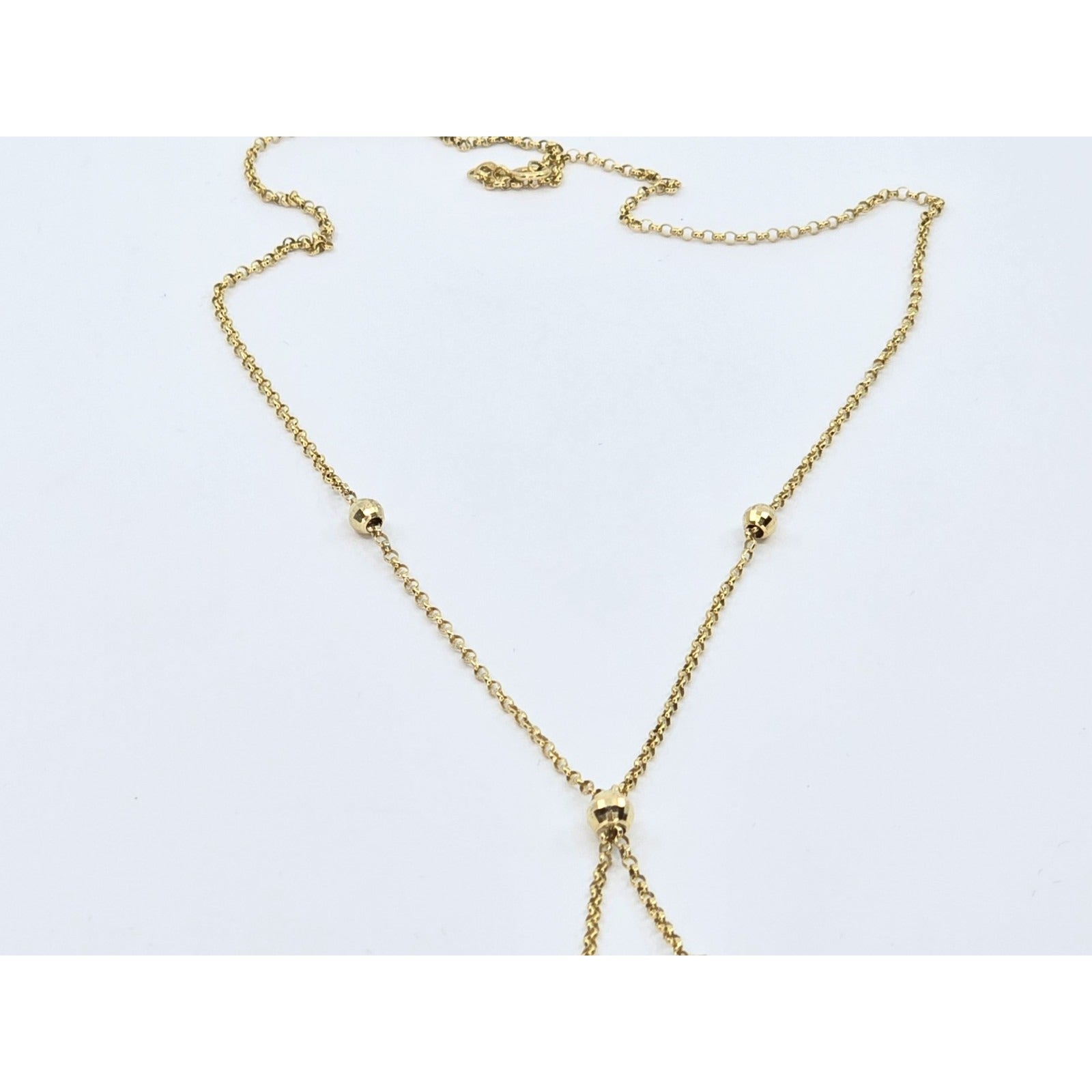 10K Yellow Gold Diamond Cut Bead Ball Rolo Link Chain Necklace