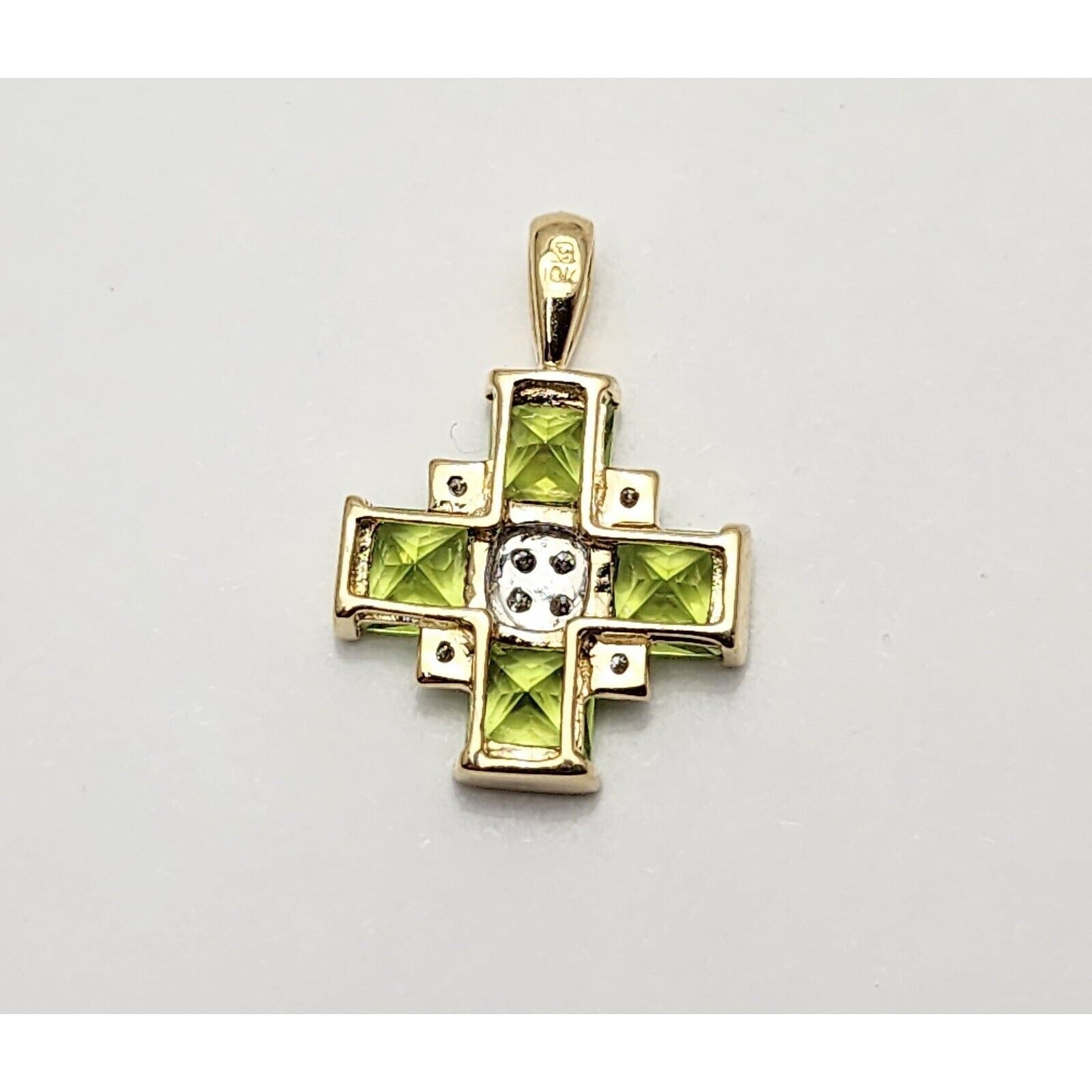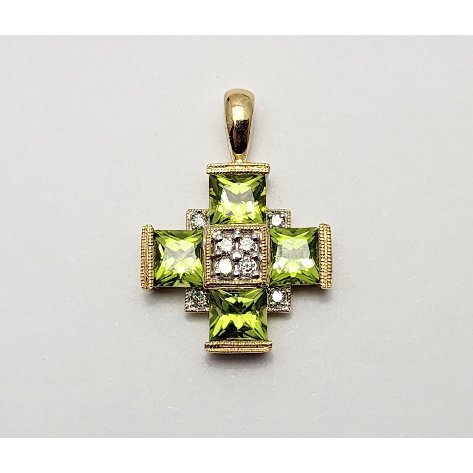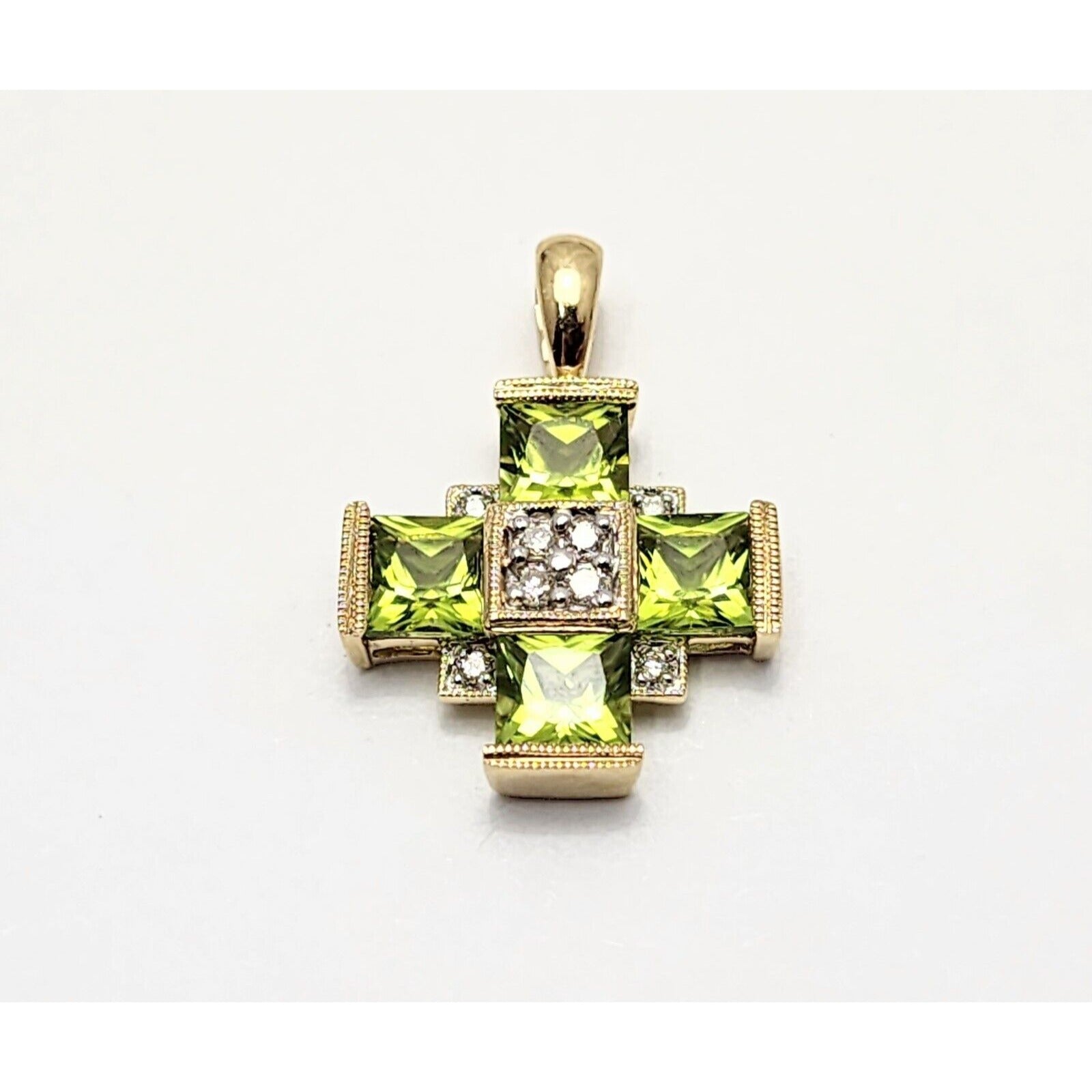 10K Yellow Gold Diamond & Peridot Greek Cross Charm Pendant
