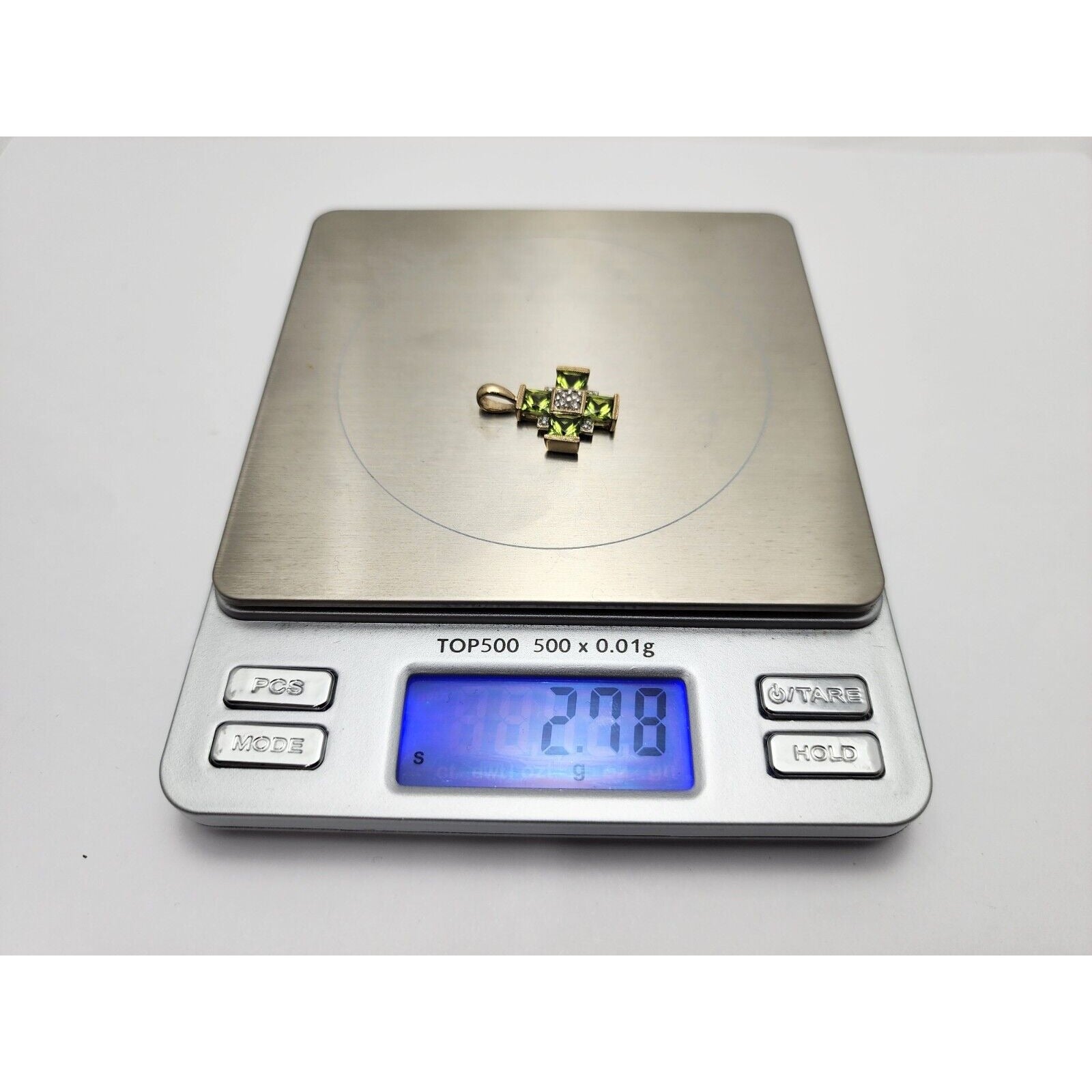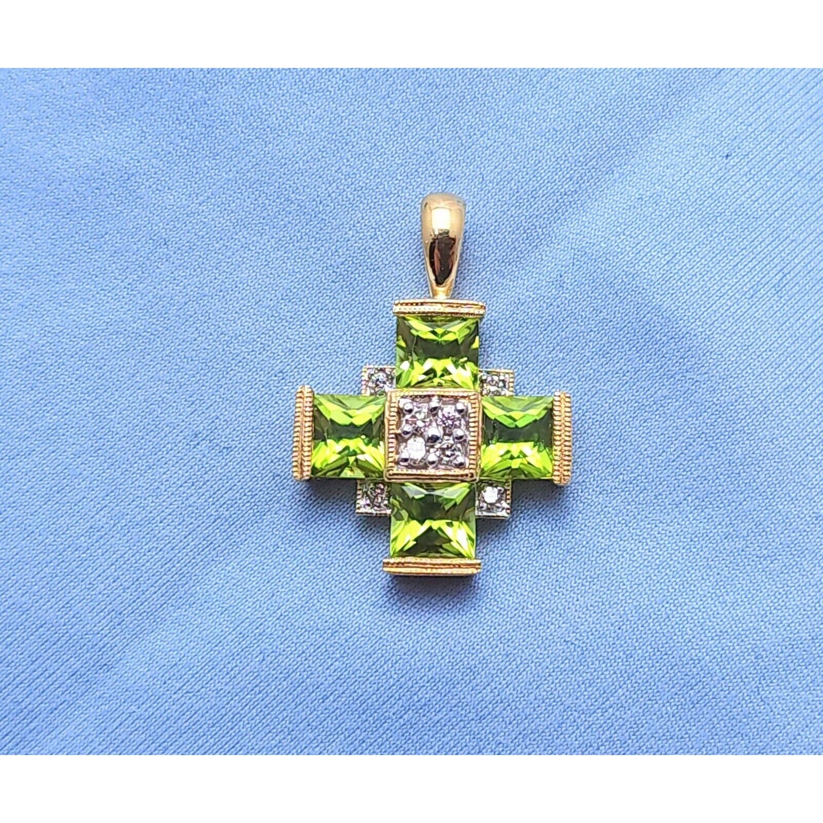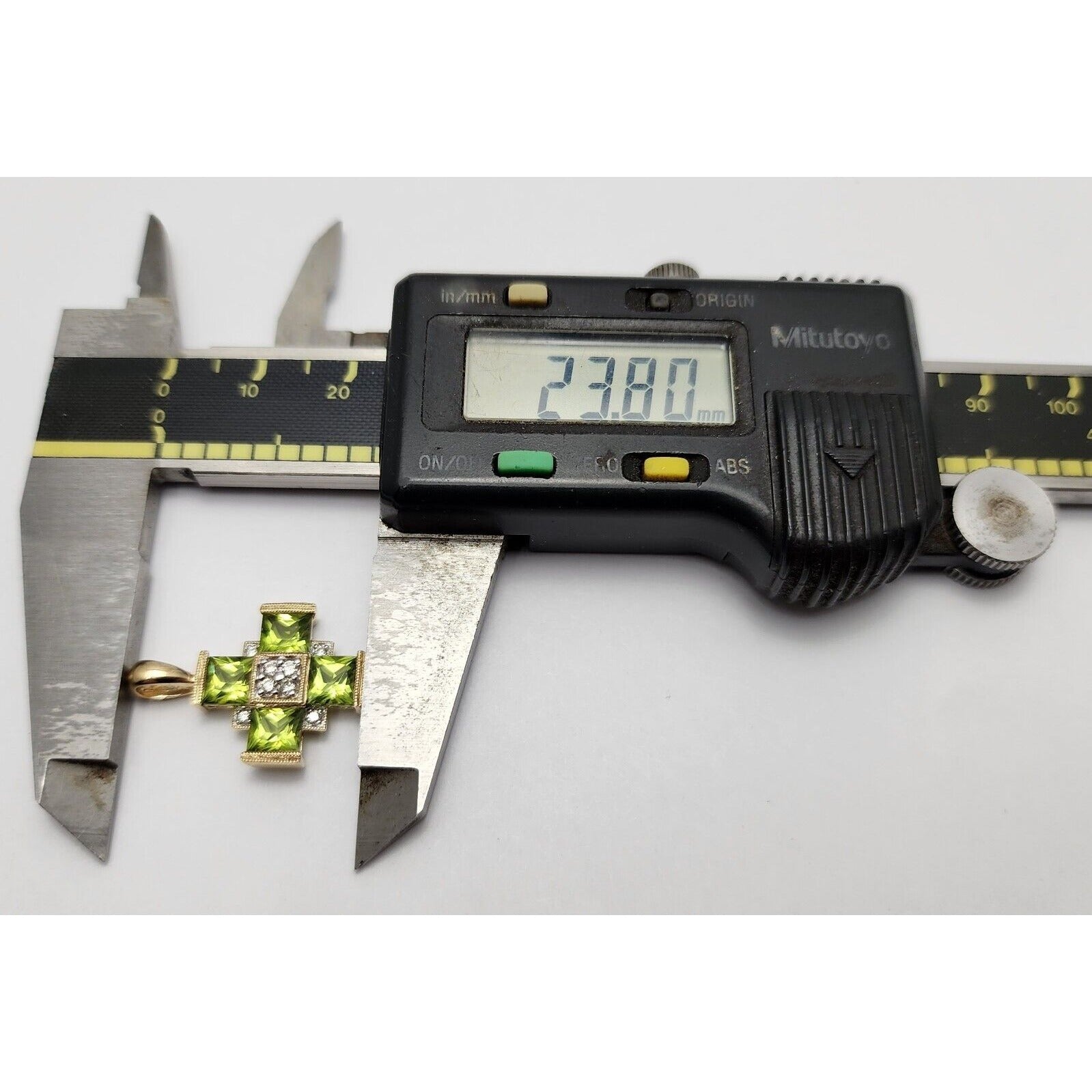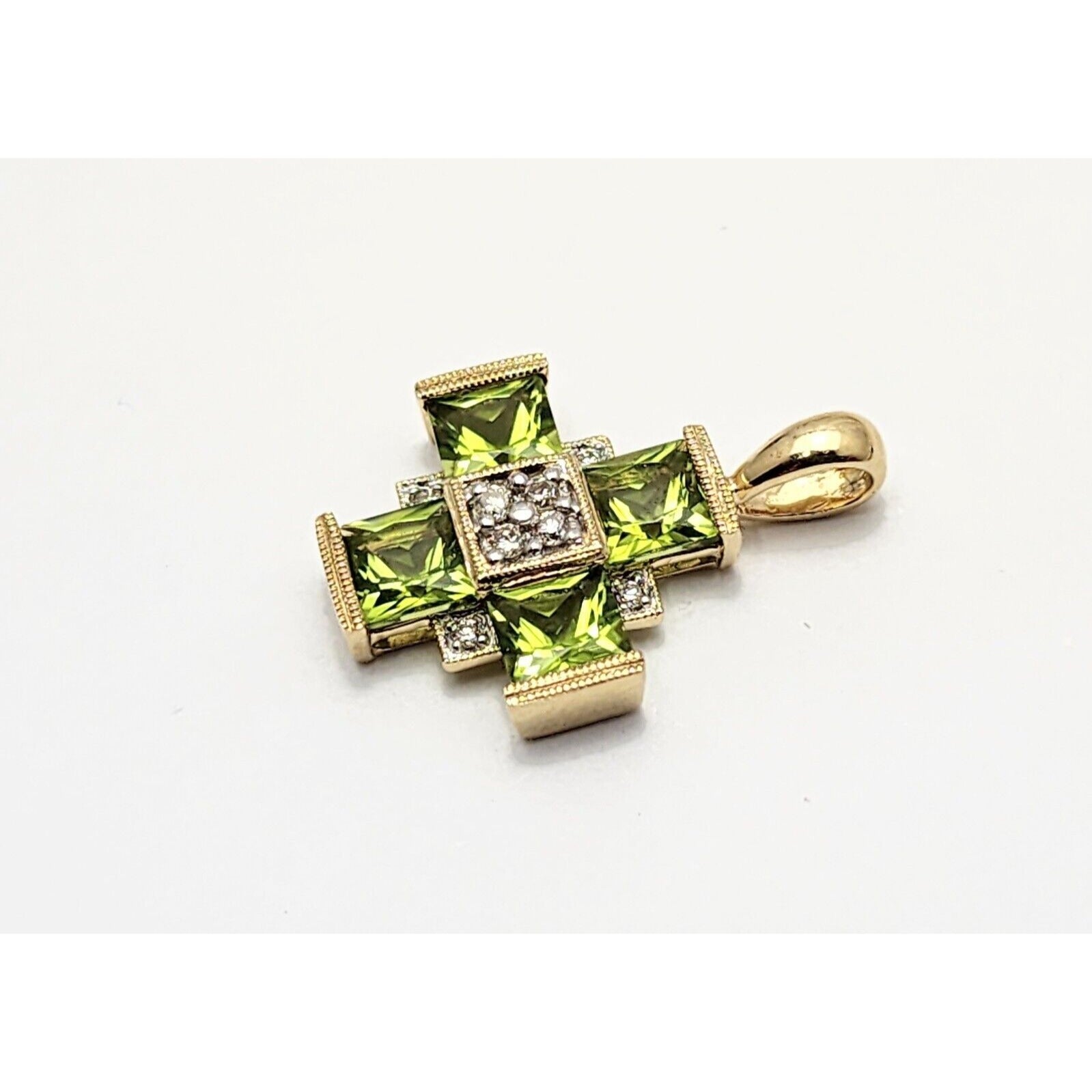 10K Yellow Gold Diamond & Peridot Greek Cross Charm Pendant