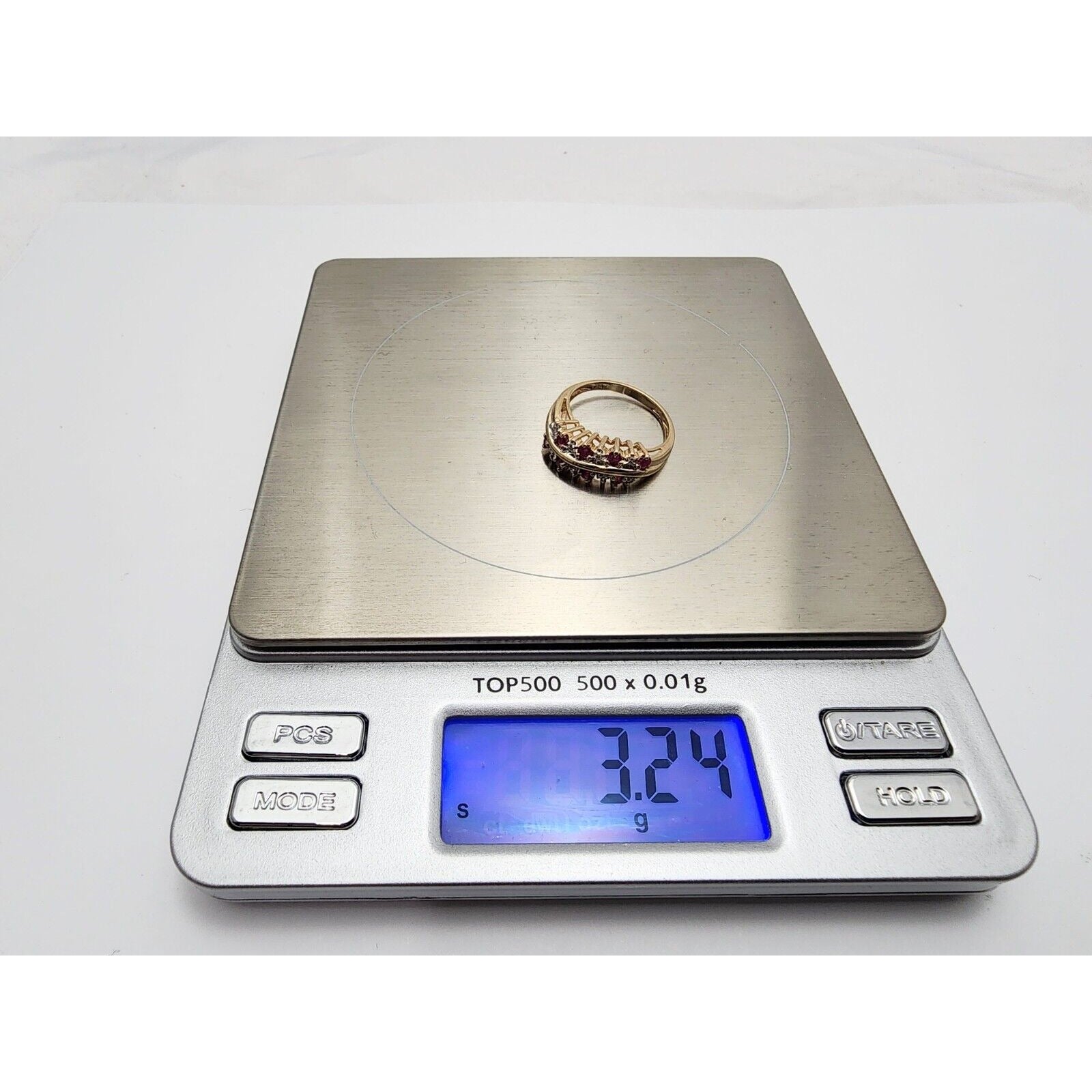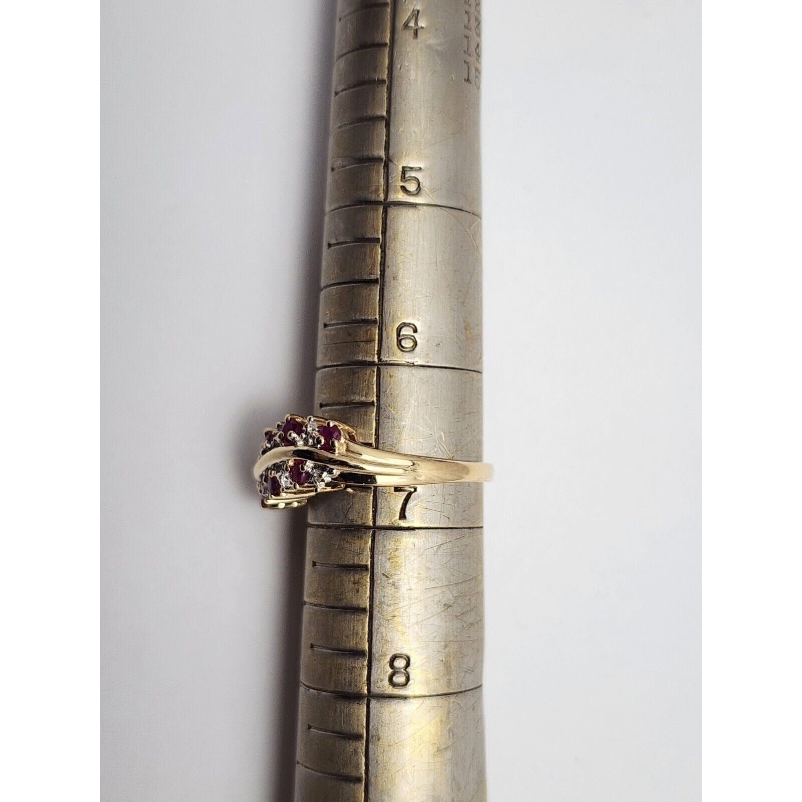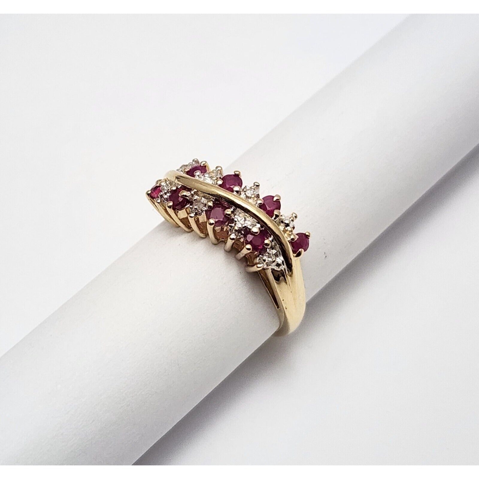 - Ring Includes 4 Round Cut Diamonds & 8 Round Cut Rubies