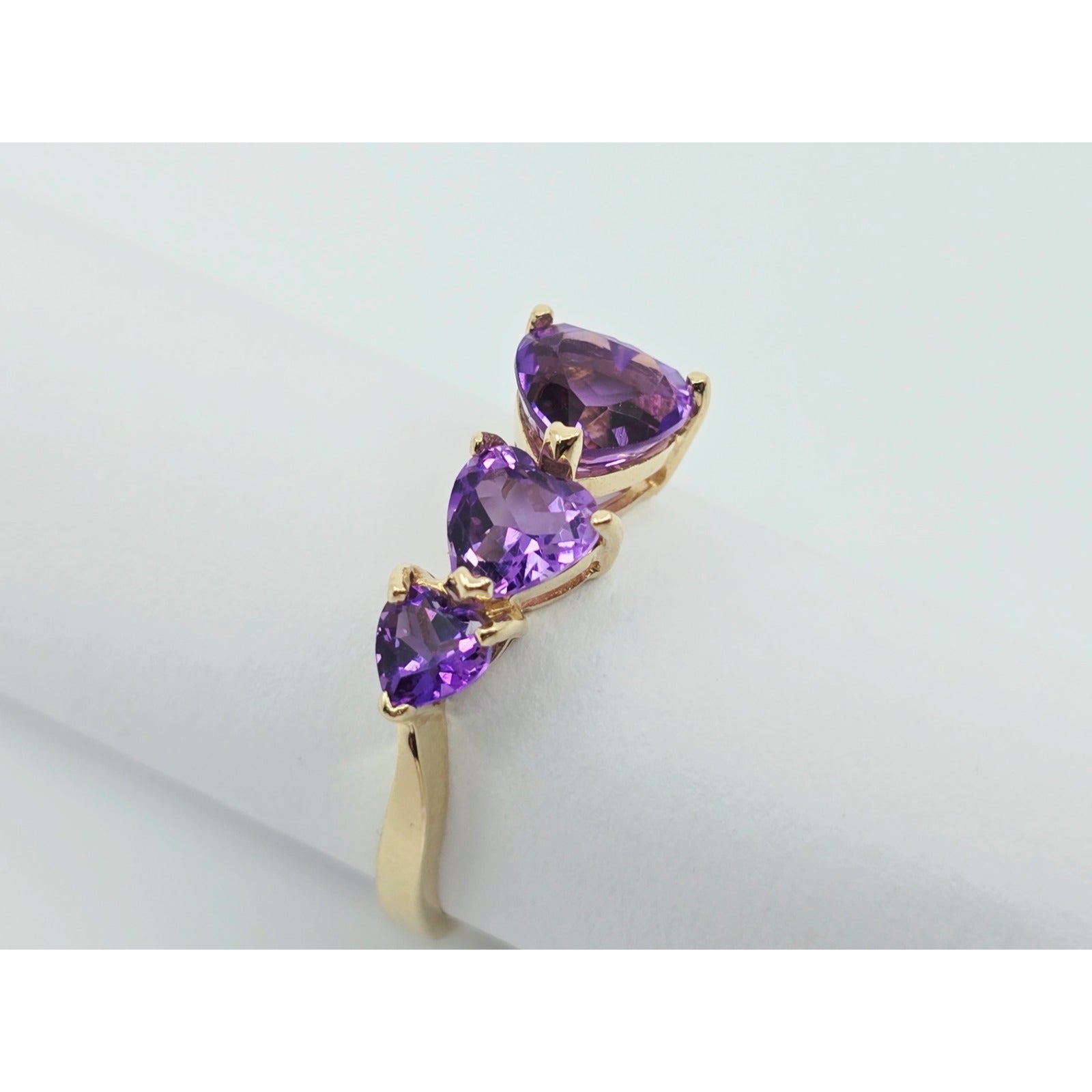 10K Yellow Gold Graduated Heart Shaped Amethyst Ring