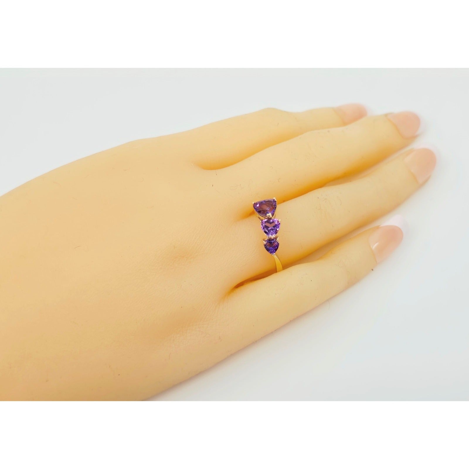 - Ring Includes Graduated 3 Heart Cut Amethyst Gemstones